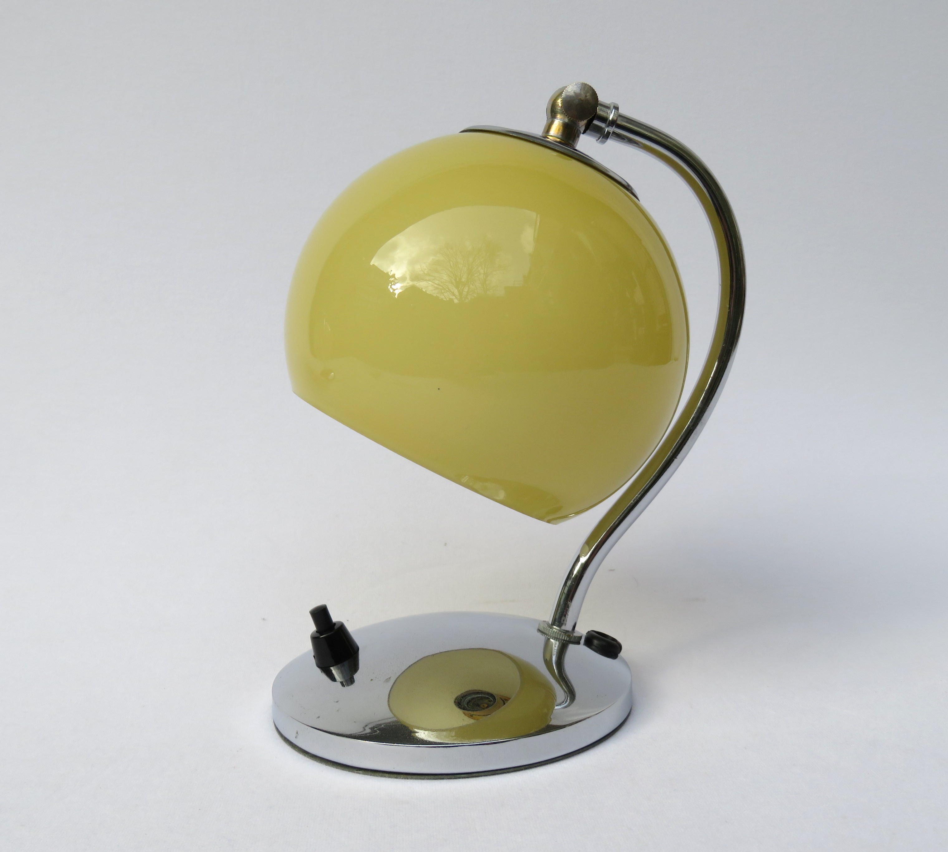N23 – Nachttischleuchte, Art Deco, verchromt, beiger Überfangglasschirm