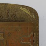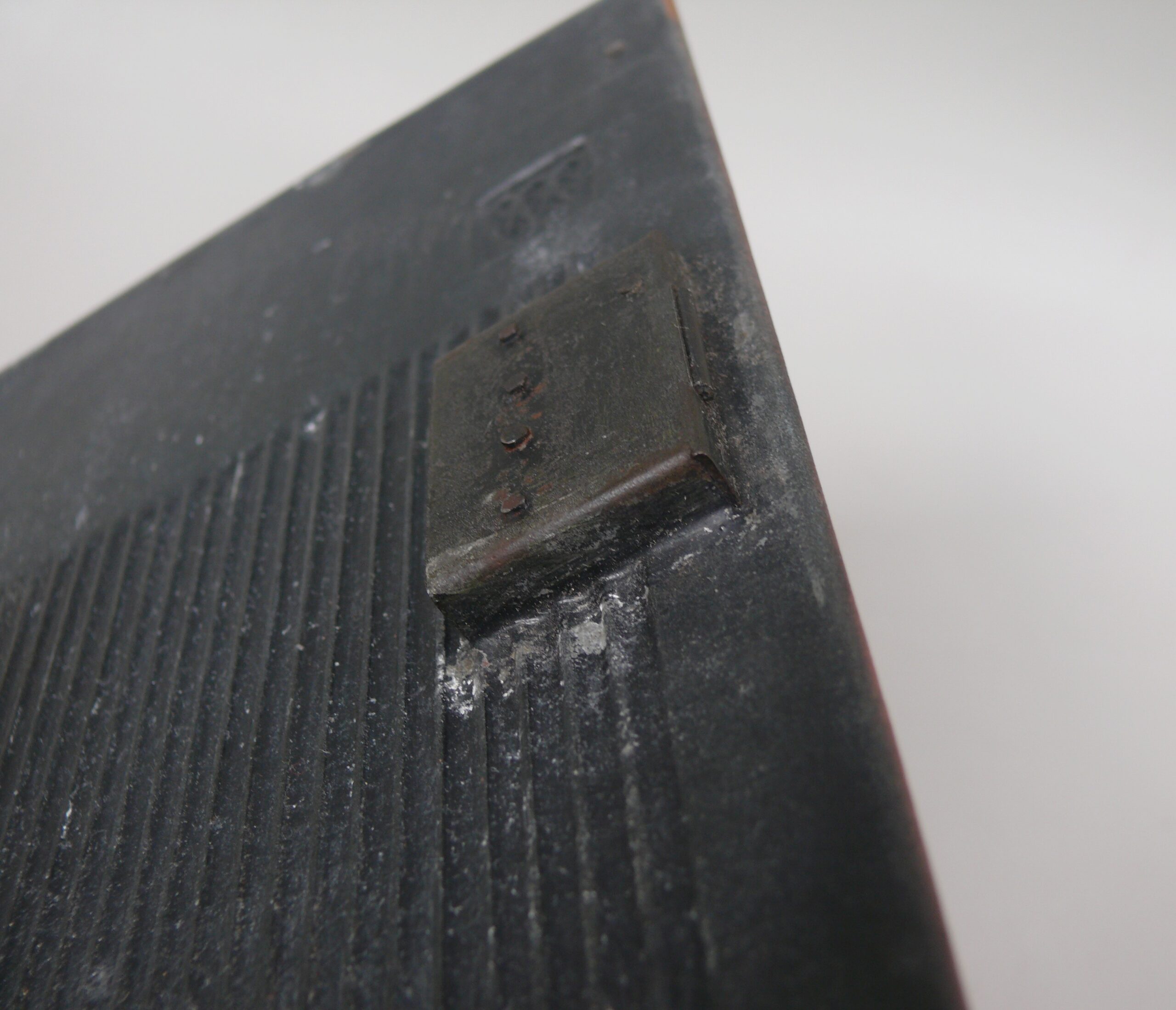 Eine kleine Ecke oben rechts an der aufgenieteten Verzierung fehlt, ist aber noch vorhanden.