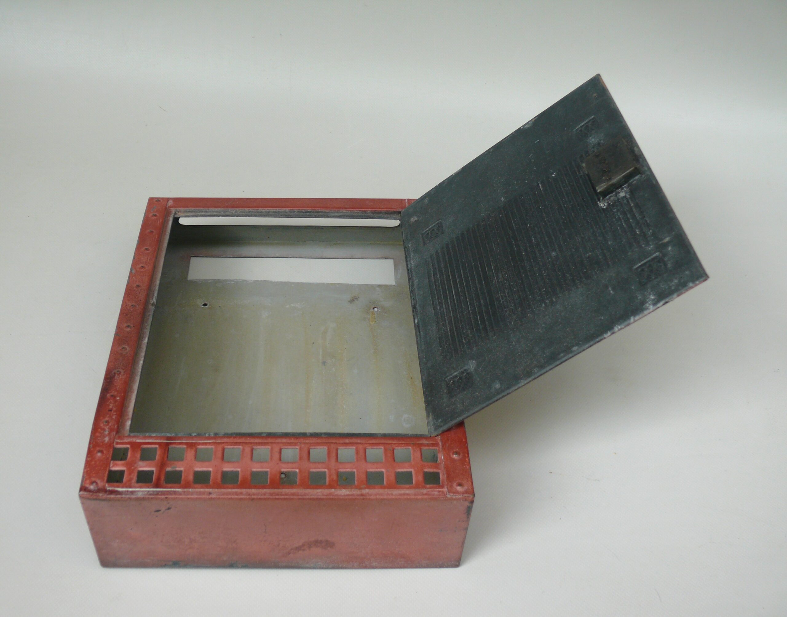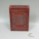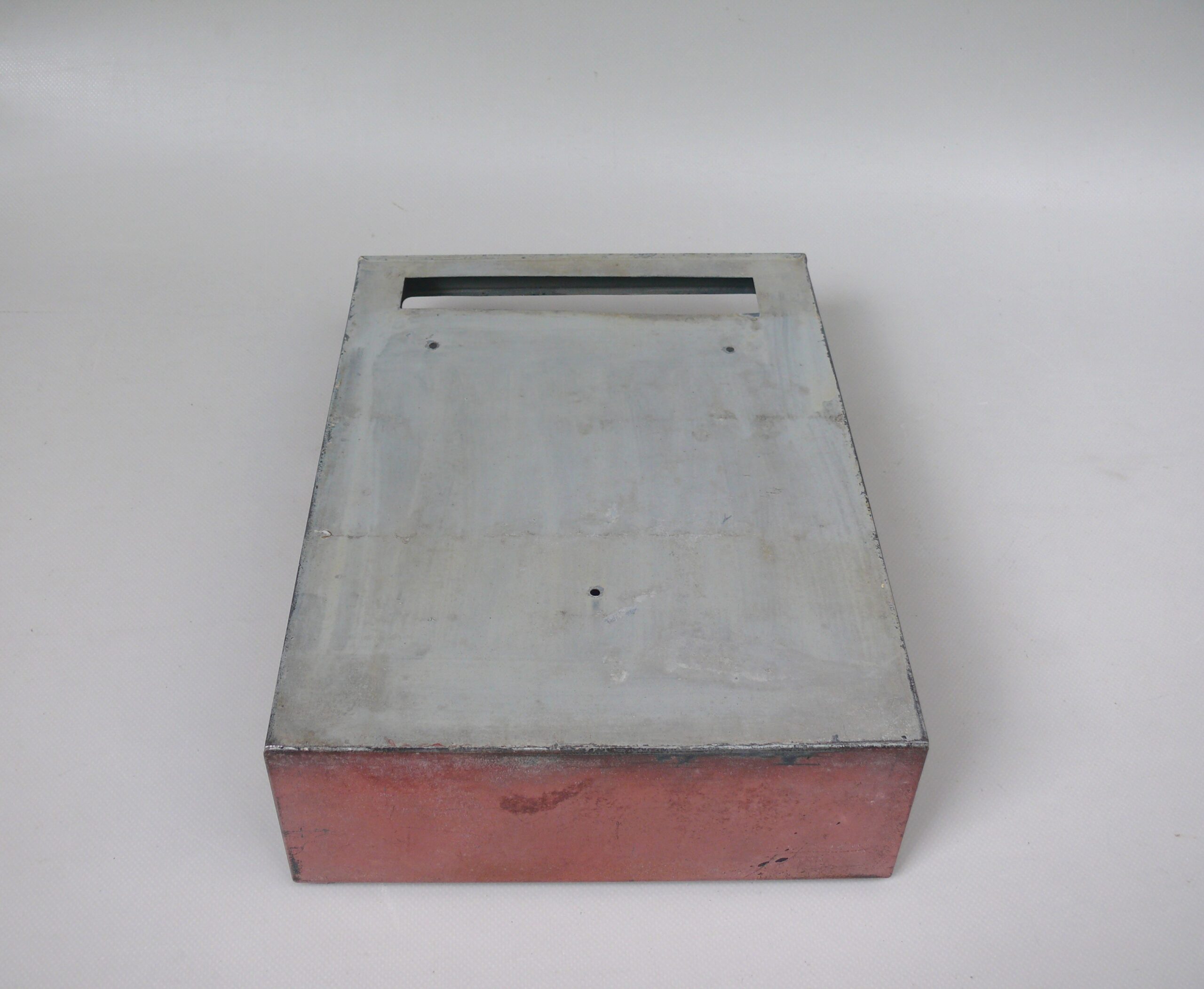 Maße: Breite 16 cm, Höhe 22 cm, Tiefe 5 cm, Briefschlitz 13 cm x 1,5 cm – Schlüssel vorhanden, muß noch angepaßt werden.