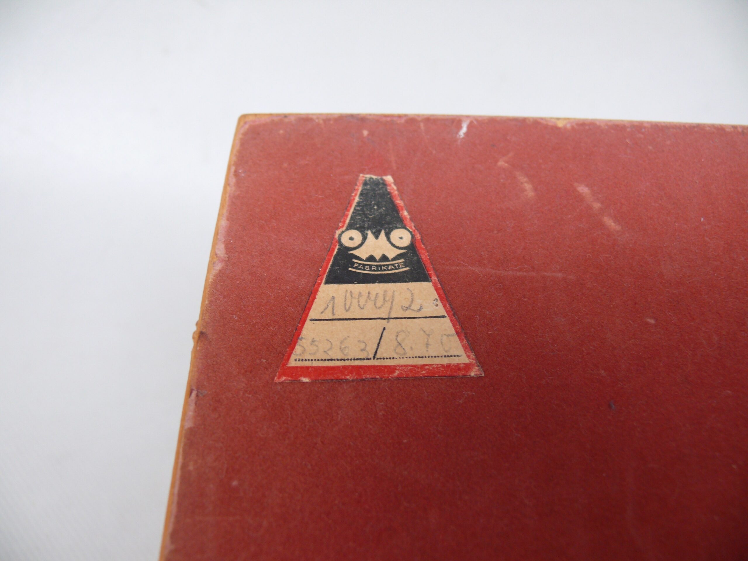 BS4 – ewiger Kalender Jakob Maul, rückseitig bezeichnet, karminrot, 30er Jahre