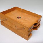 BS93 – Ablagekasten für DIN A4, 2fach, 60er Jahre, Buche, Messing