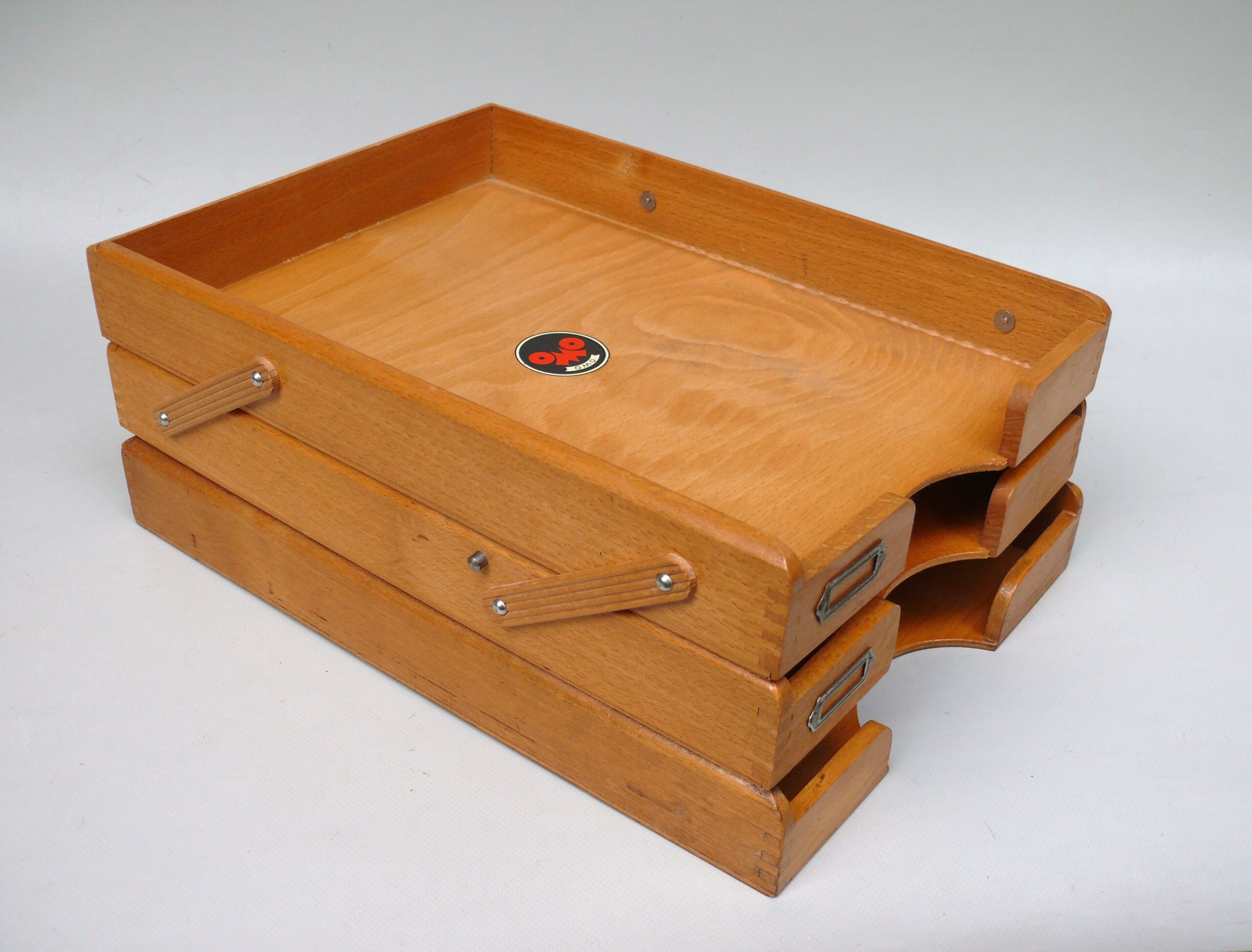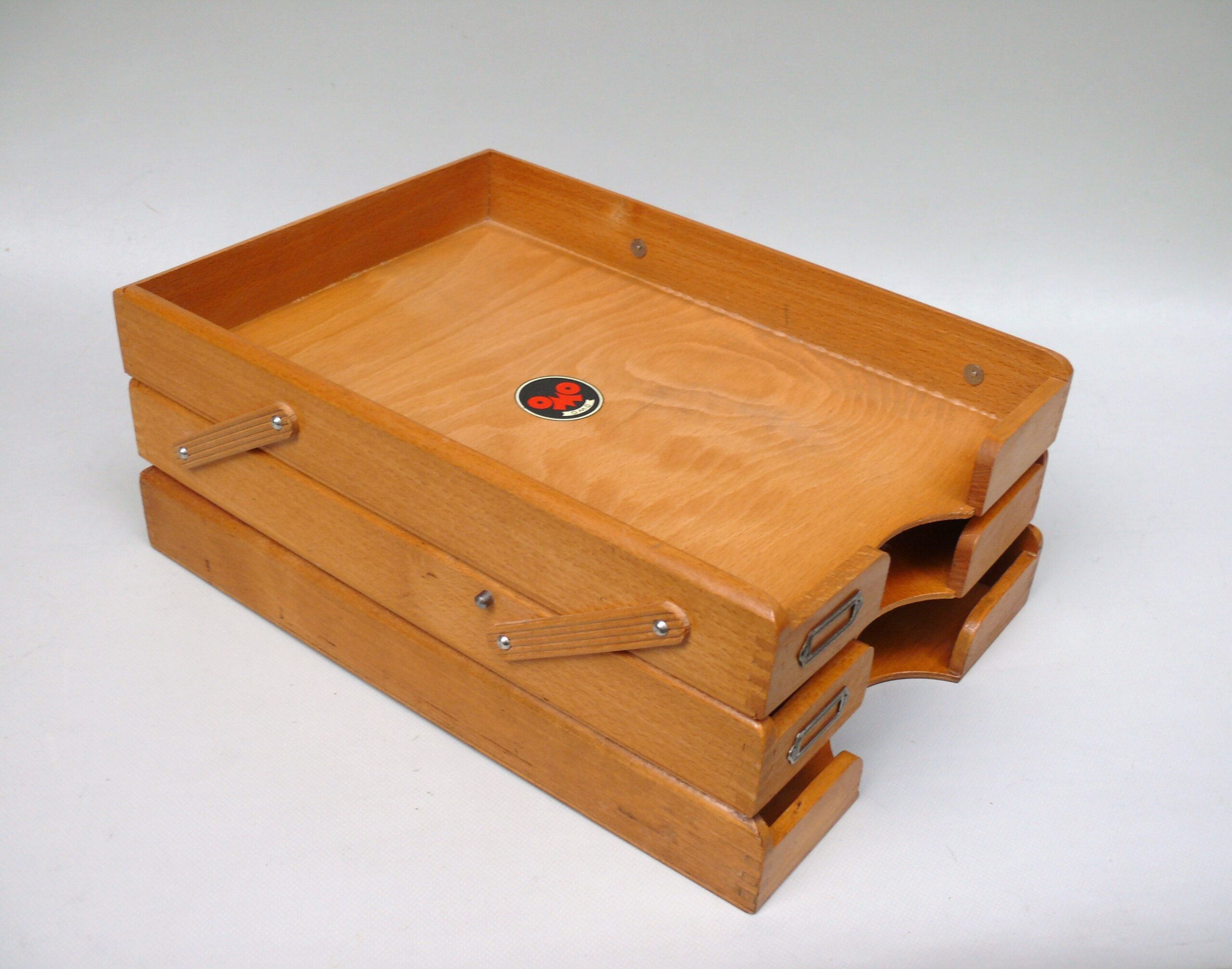 BS104 – Ablagekasten für DIN A4 Papier, 3fach, Bauhaus, 30er Jahre, Holz