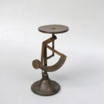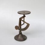 Der Stand ist formreduziert aus einer gebogenen rechteckigen Messingplatte gefertigt.