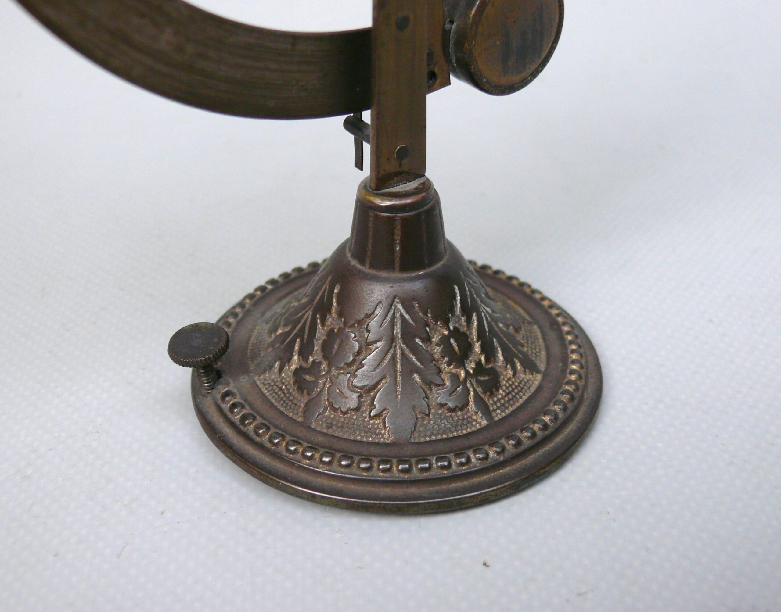 Original Celluloid-Platte mit der Skala, diese leicht berieben. Gebrauchsspuren am schwarzen Originallack und am Chrom. Justierschraube vorhanden.