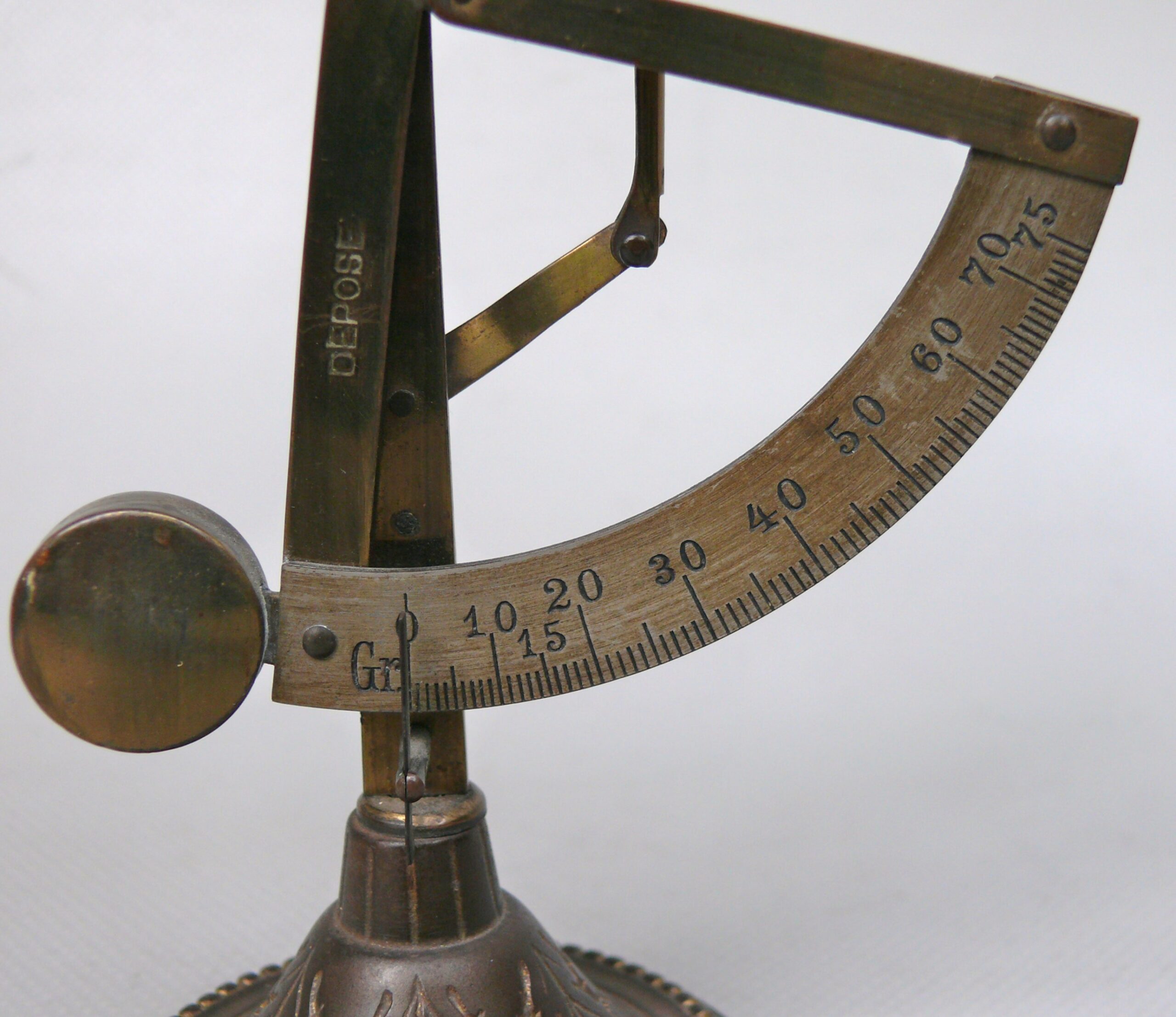 BS25 – Briefwaage Jugendstil, bezeichnet USUS – Ph. J. Maul – D.R.G.M.