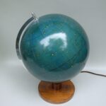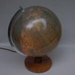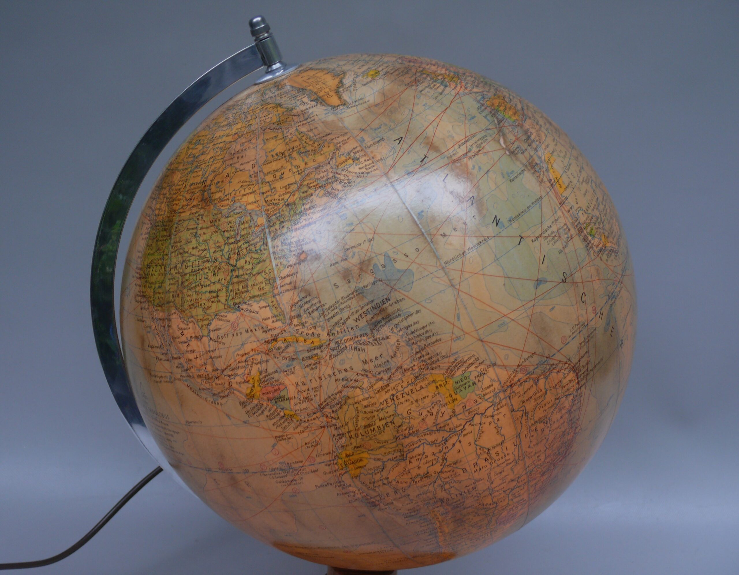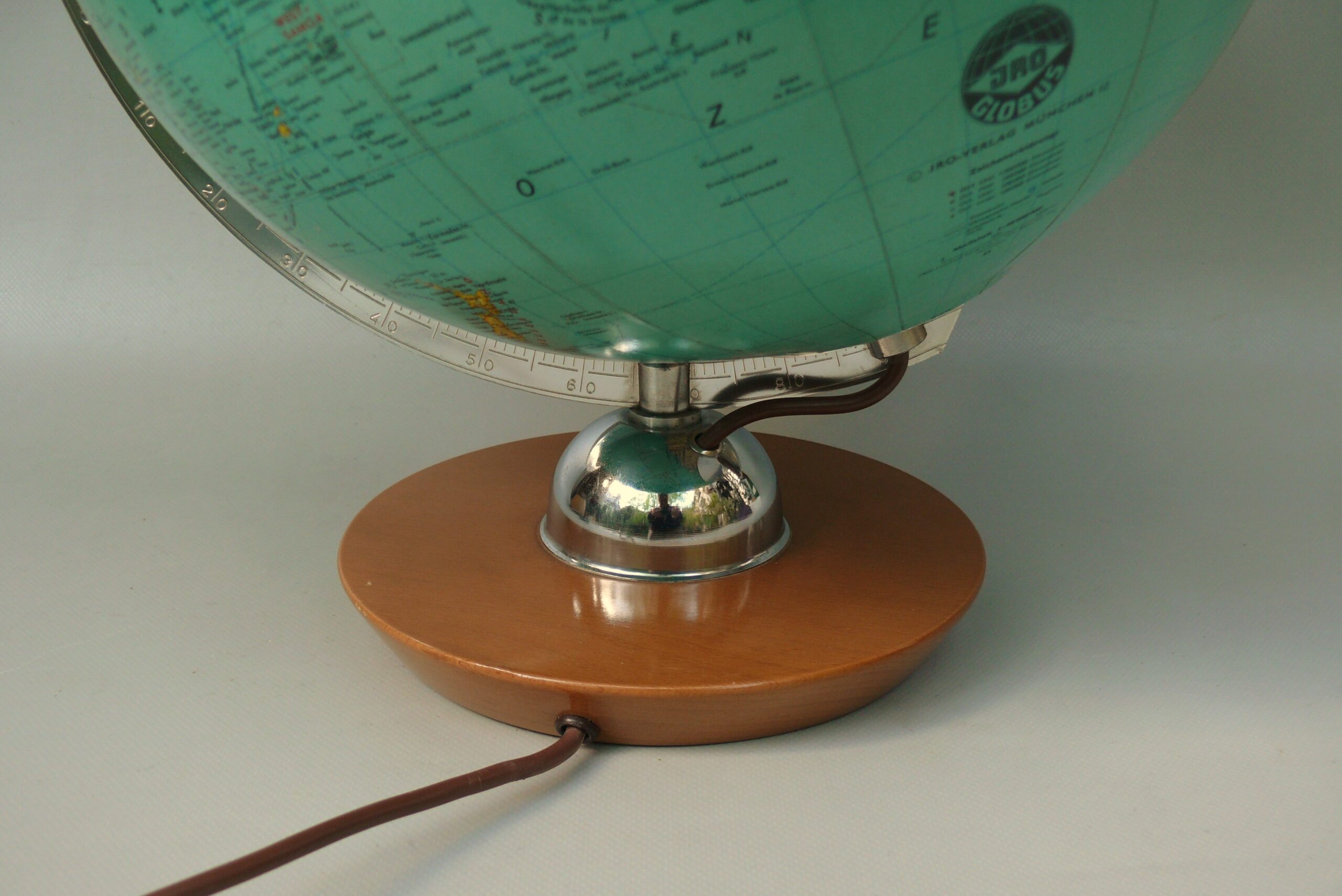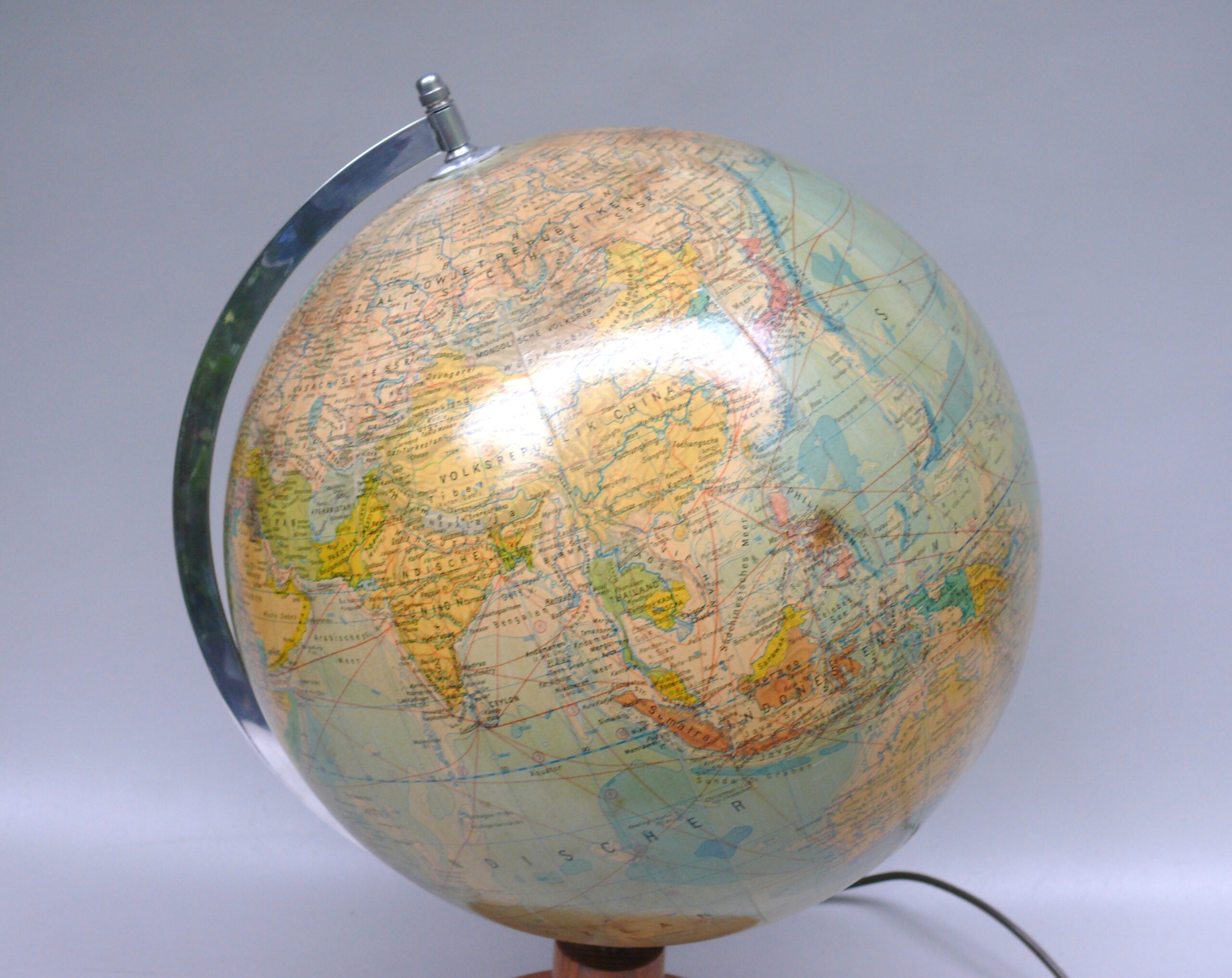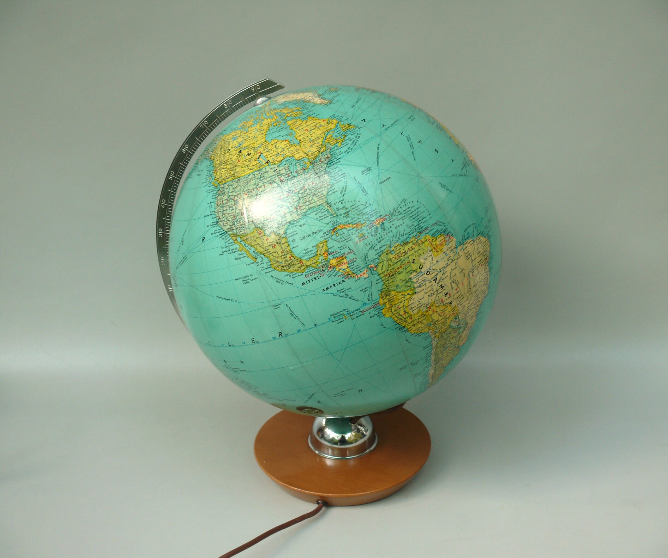 G49 – Globus Columbus Duo Erdglobus, 50er/60er Jahre, Sockel Holz, verchromt, Kugel Glas handkaschiert, beleuchtet – Der Große