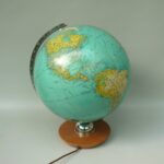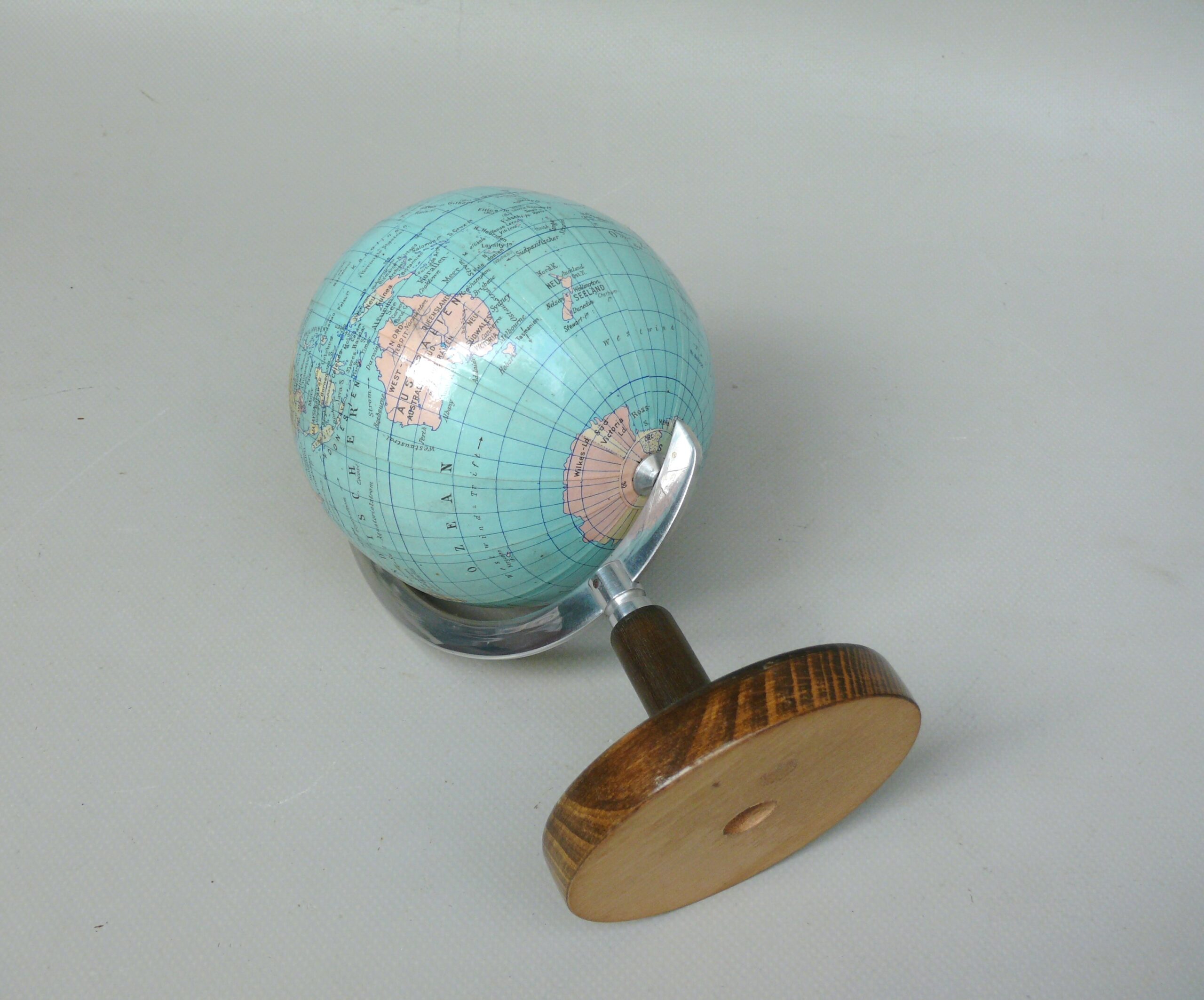 G4 – Columbus Schülerglobus, 50er Jahre, geographische Karte, Pappe handkaschiert, Aluminium
