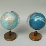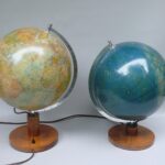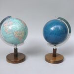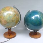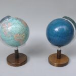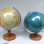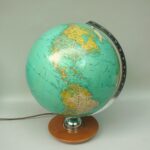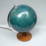 Bei diesem Columbus Duo Erdglobus aus den 50er/60er Jahren handelt es sich um eine seltene Ausführung mit kardanischer Aufhängung – die Erdkugel ist zum einen in der Aufhängung (über die Achse) und zum anderen über den Nord- und Südpol rundumlaufend drehbar.