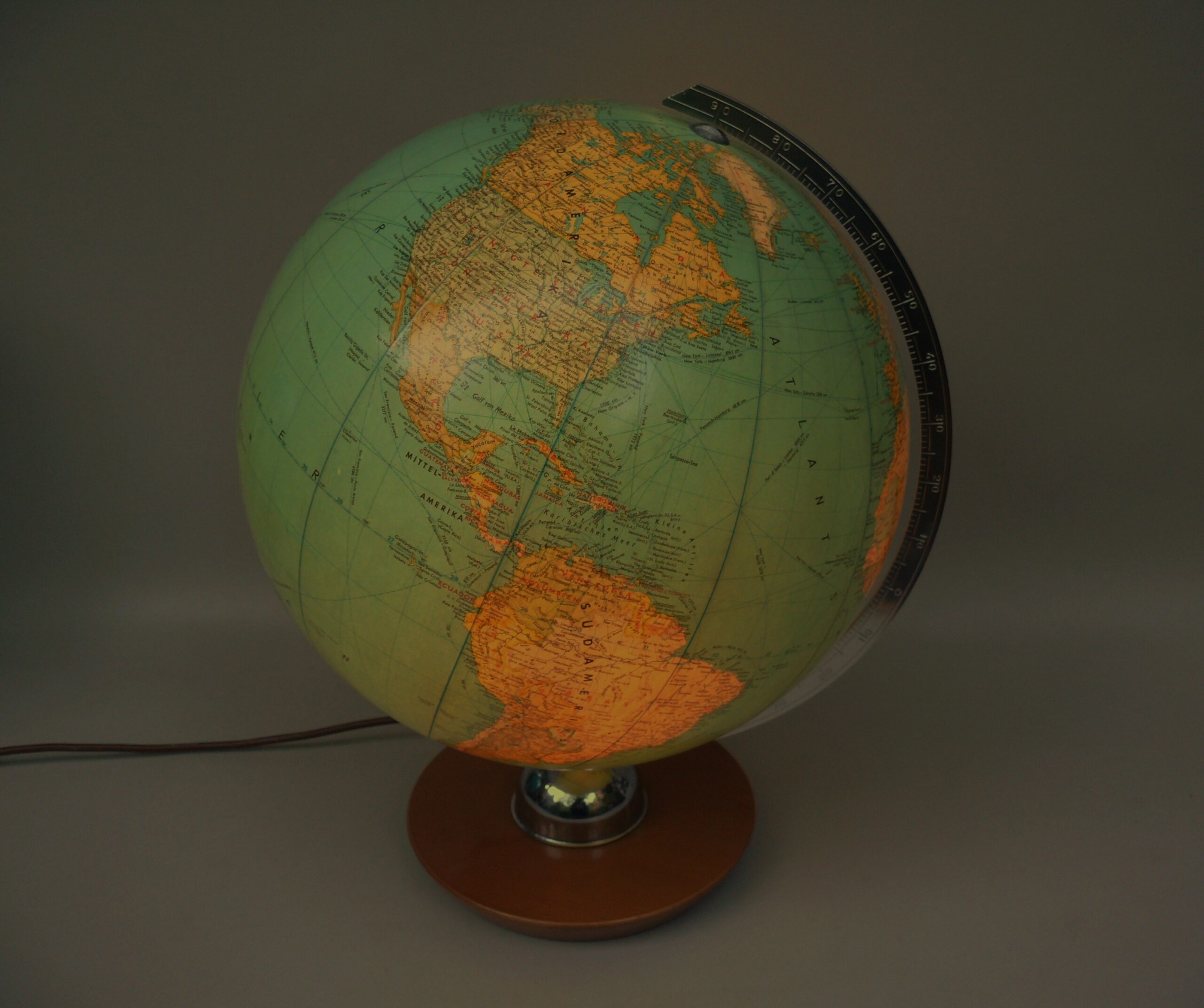 Bei diesem beleuchteten Columbus Duo-Erdglobus aus den 50er/60er Jahren handelt es sich um ein eher seltenes Stück.