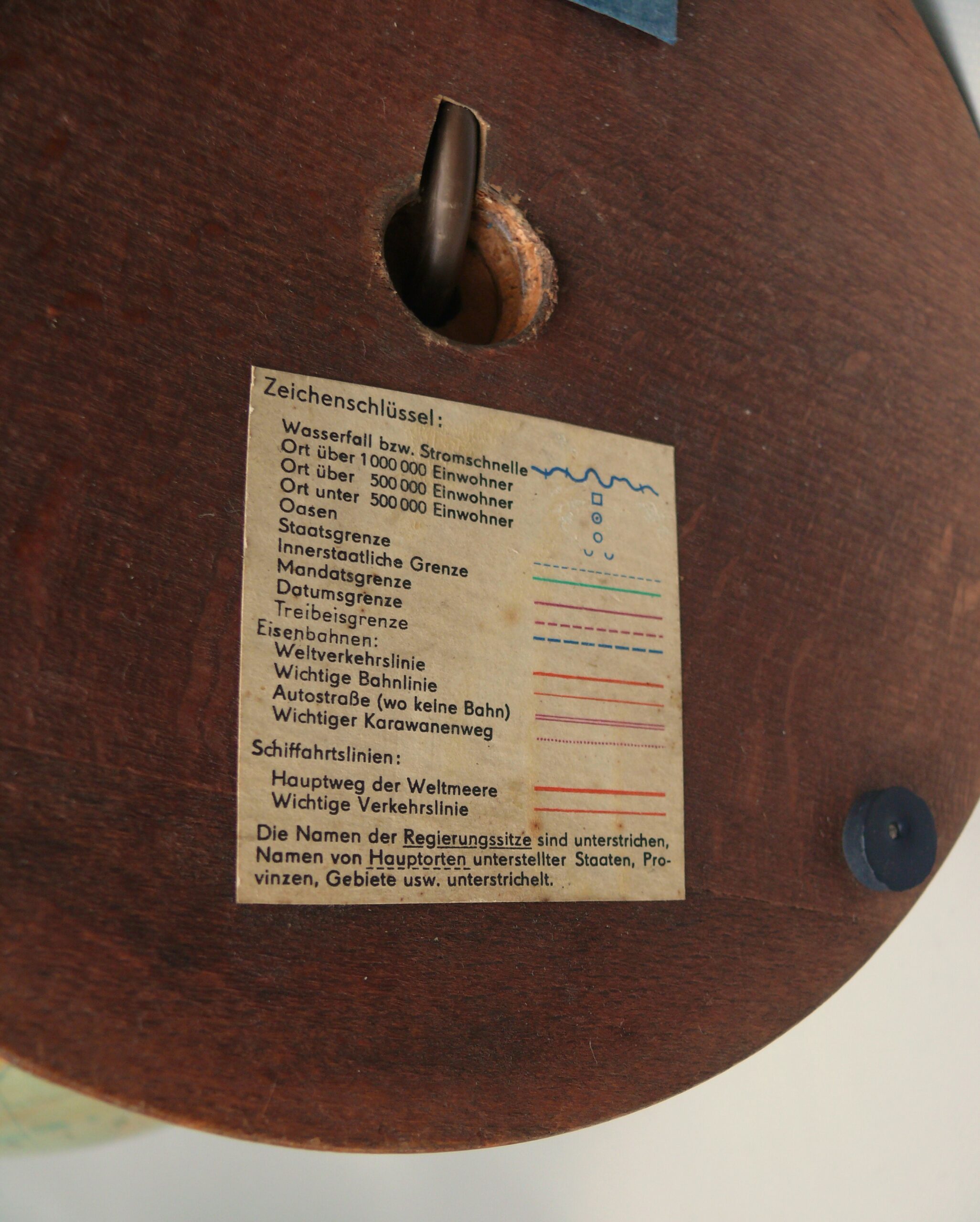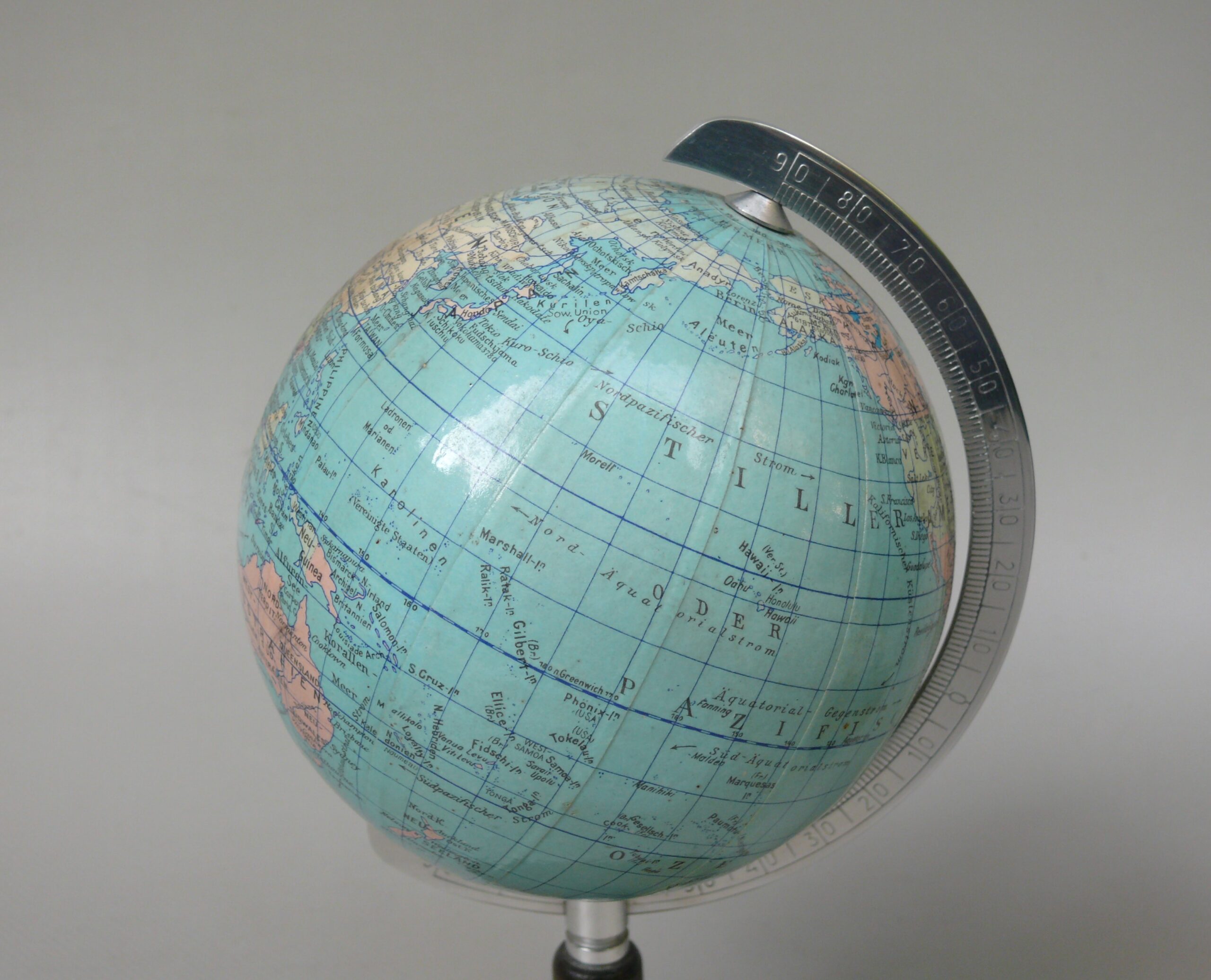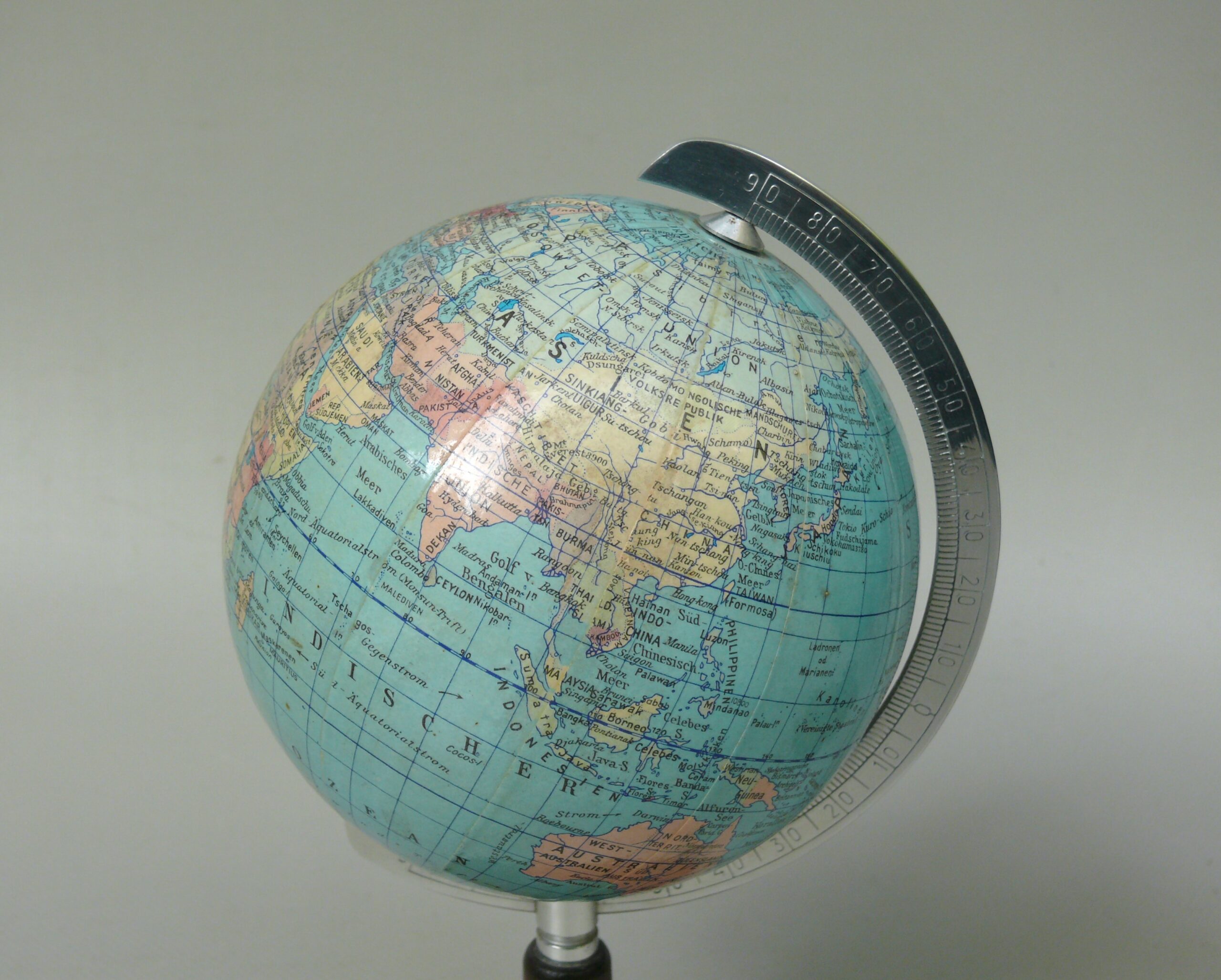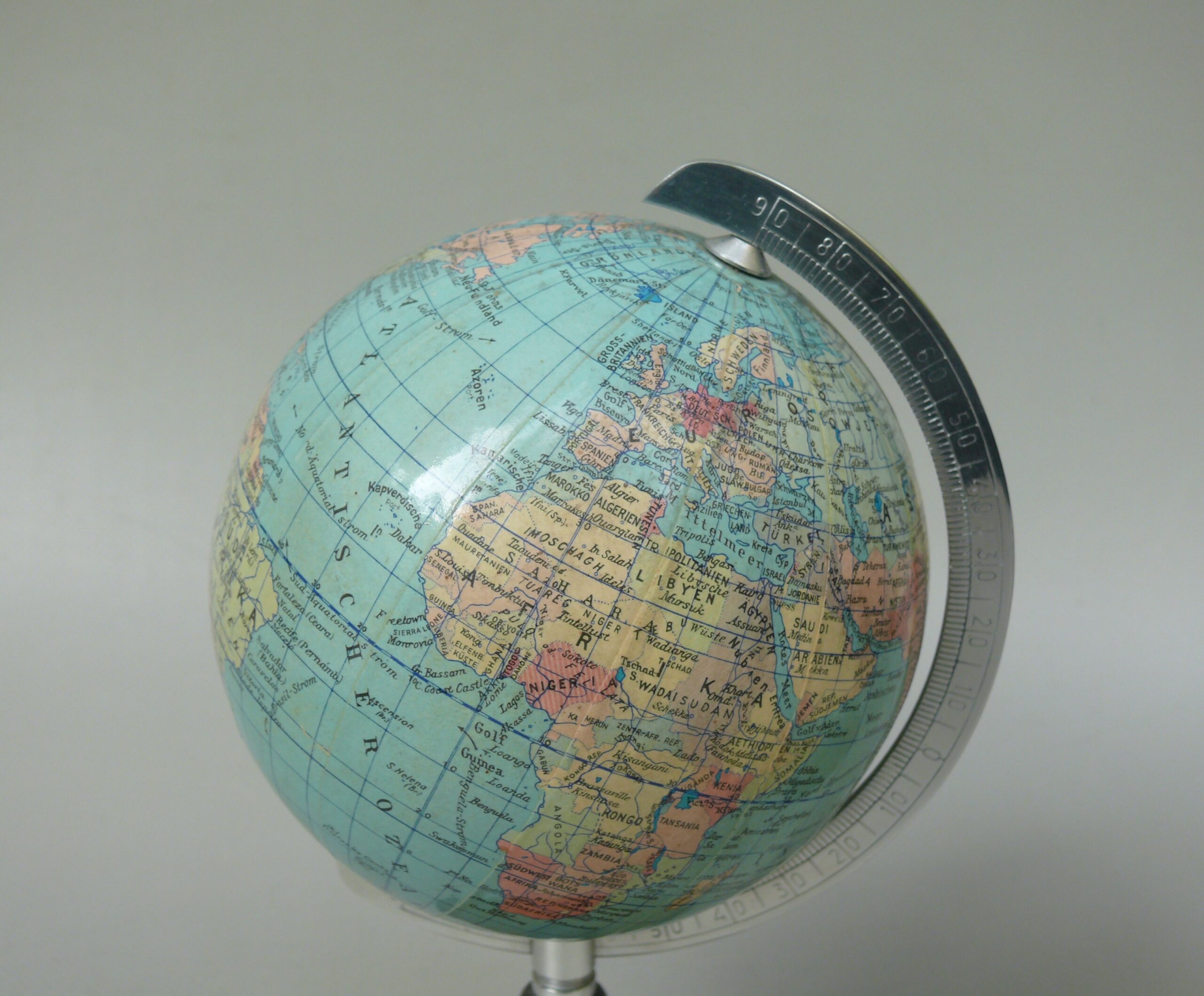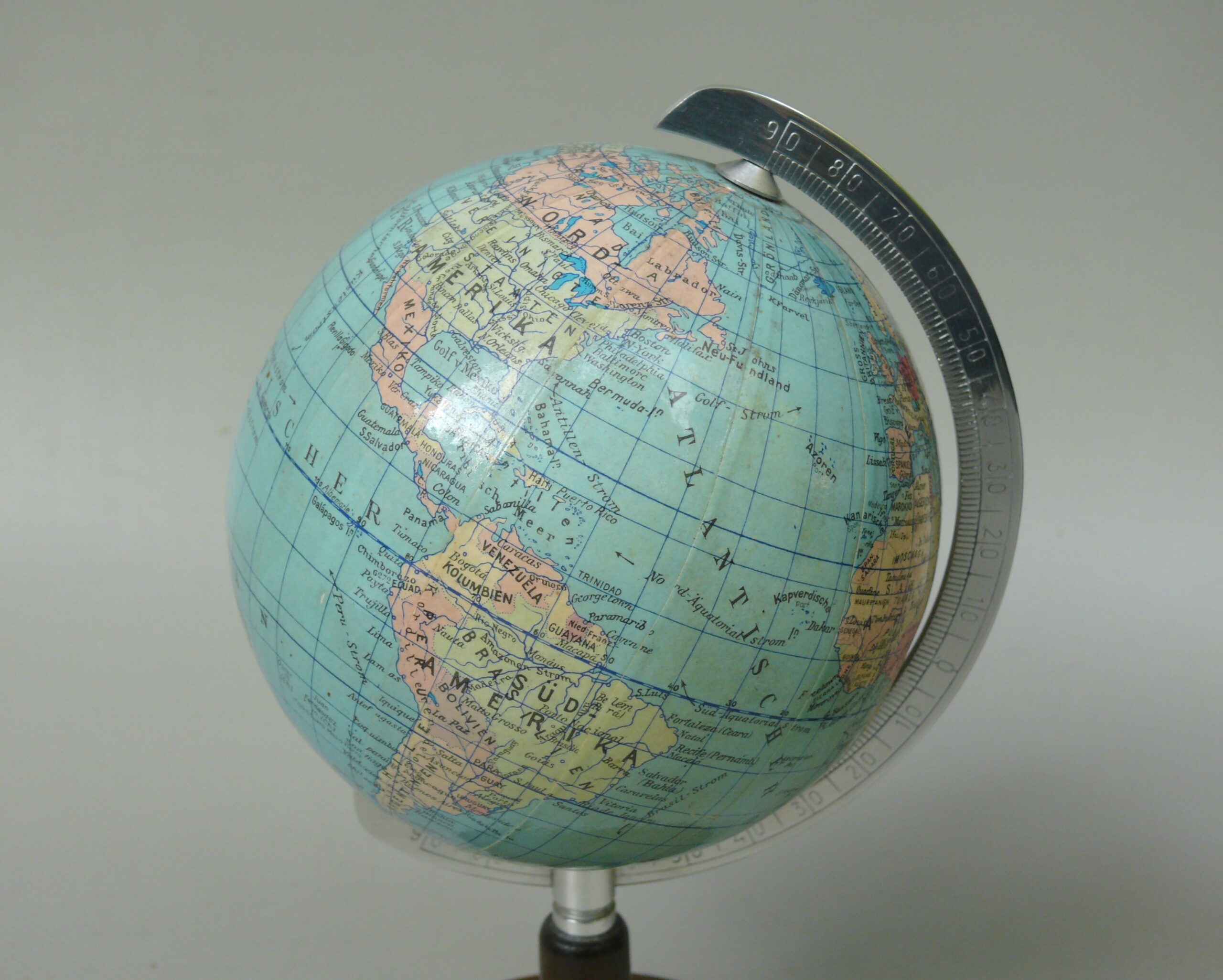 Der Globus hat die typische Farben der Vorkriegsgloben.