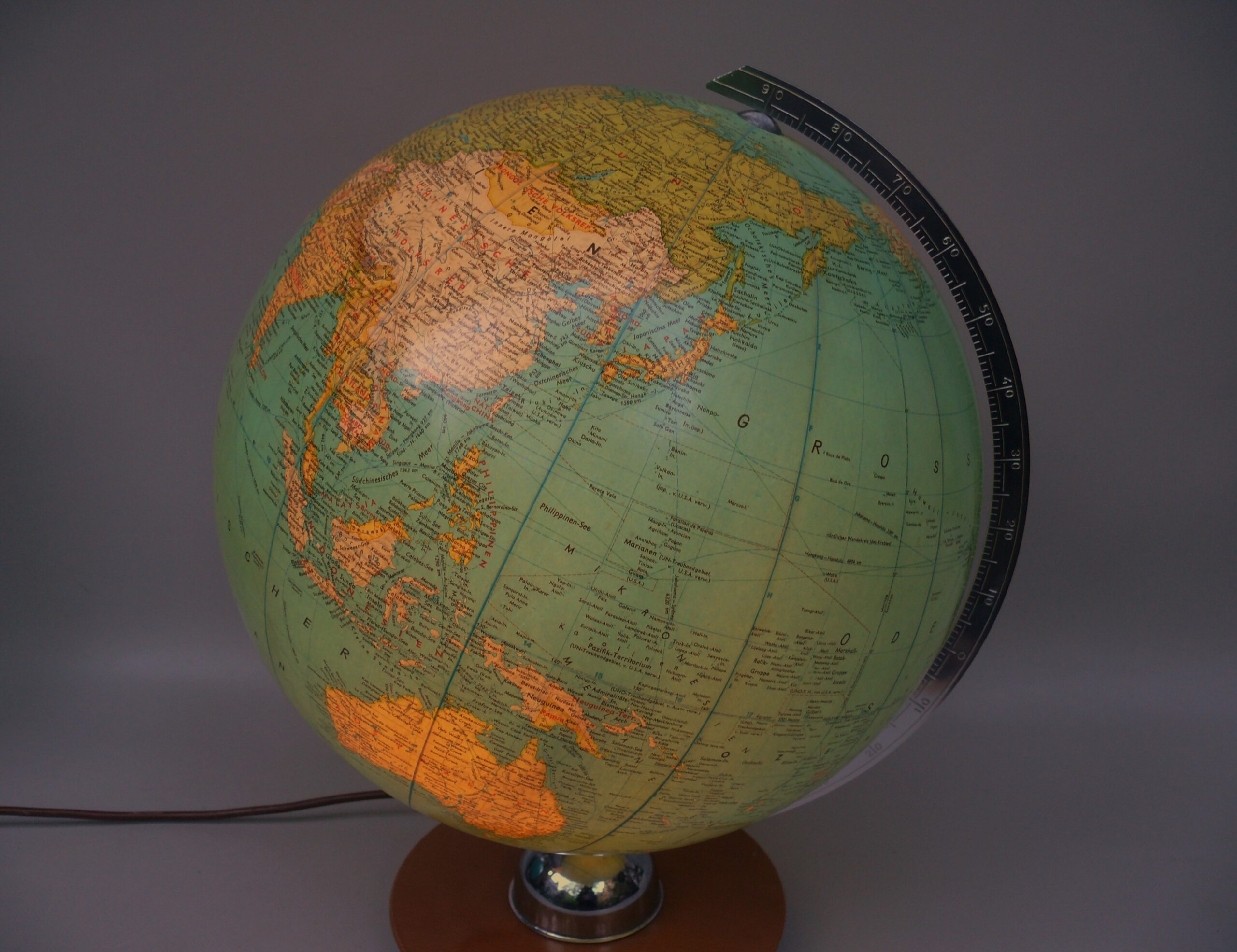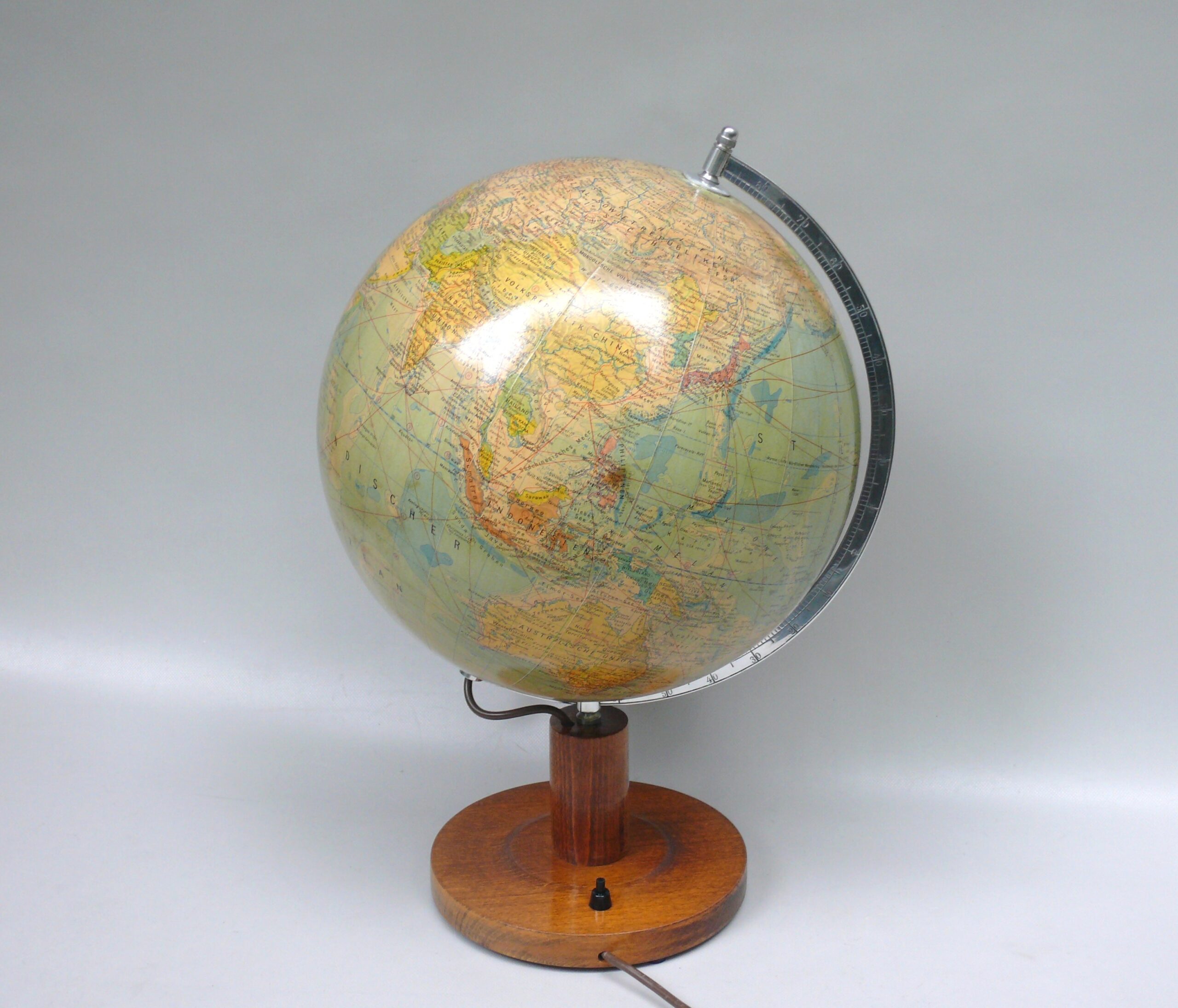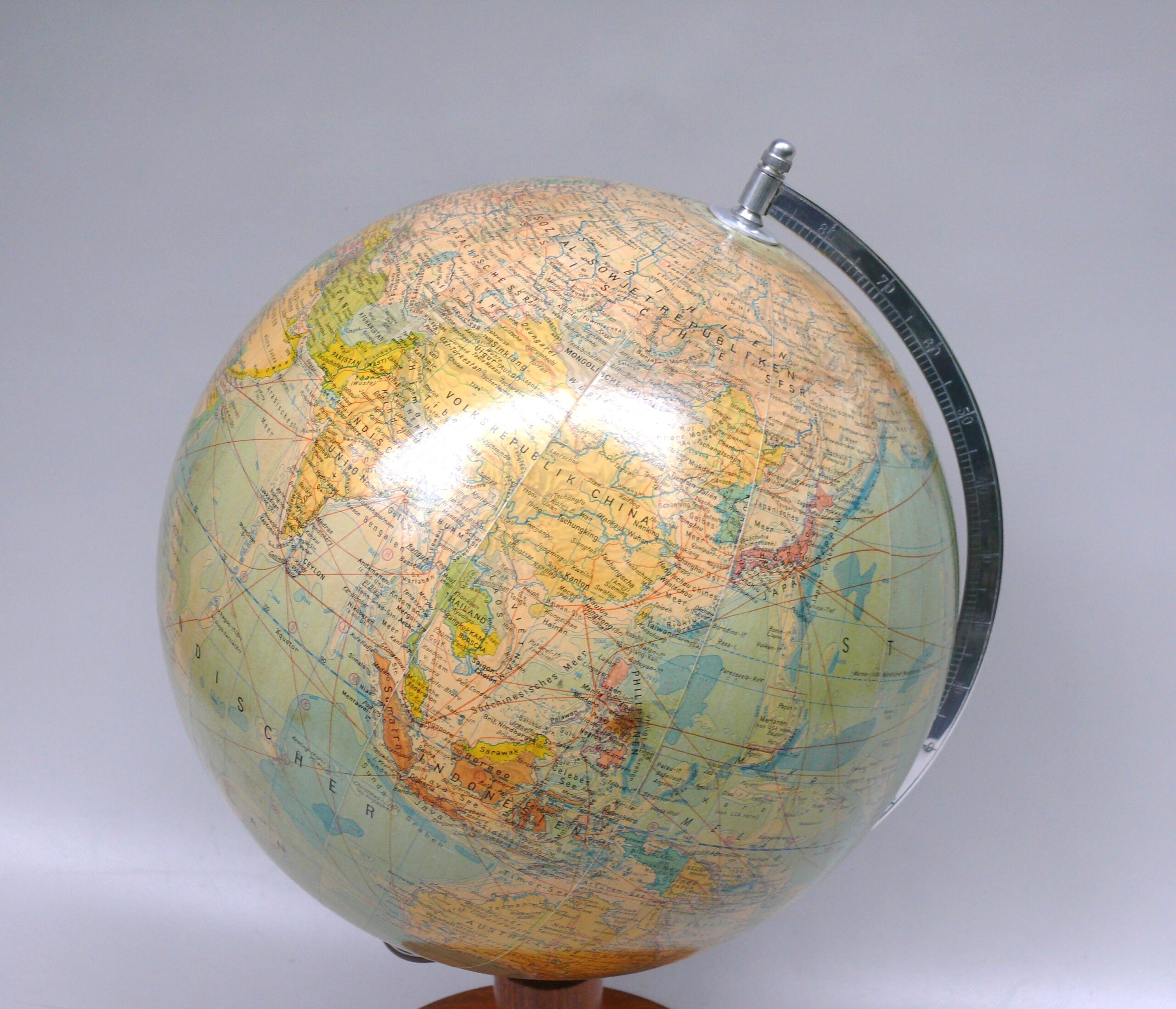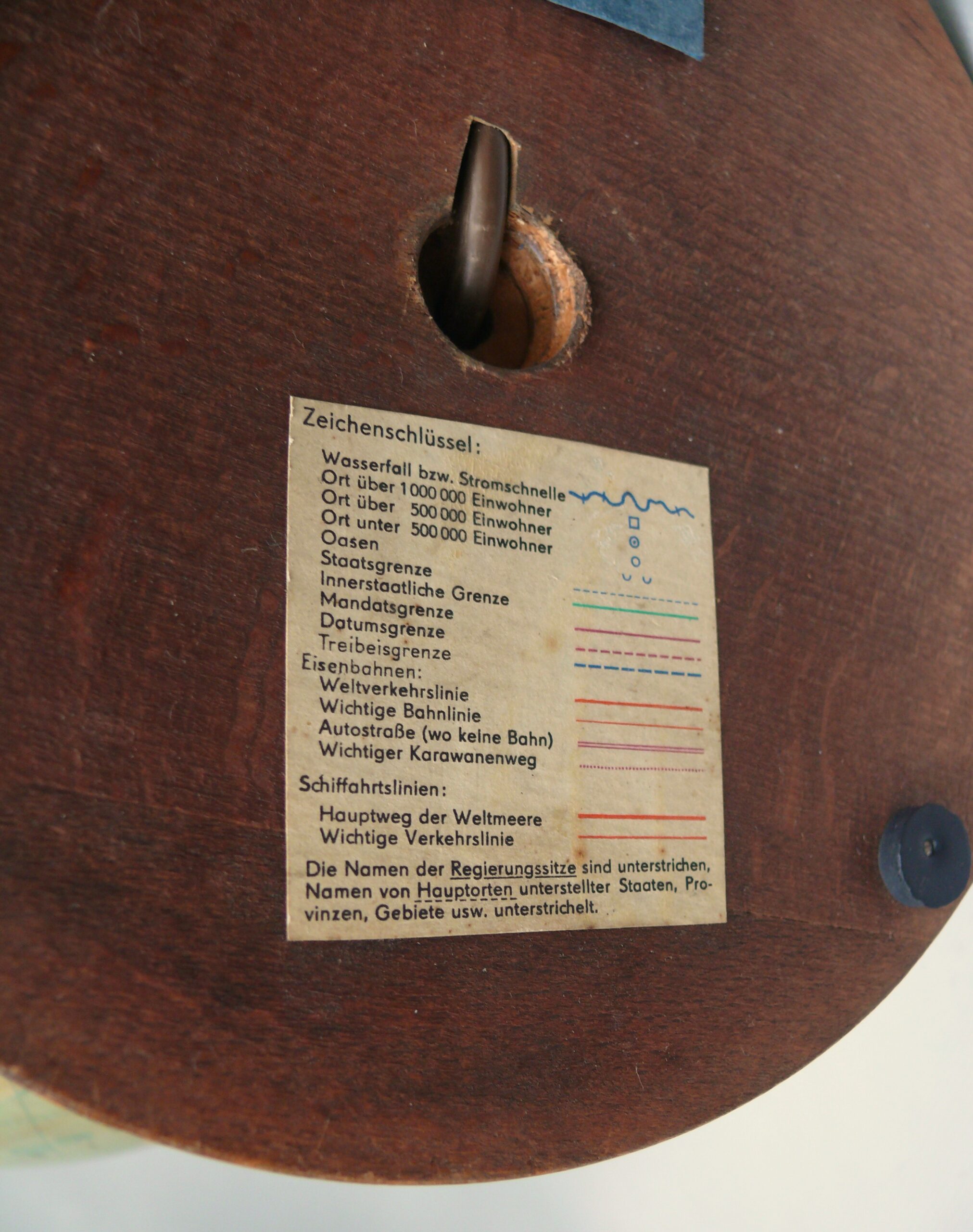 Der Globus hat die typische Farben der Vorkriegsgloben.
