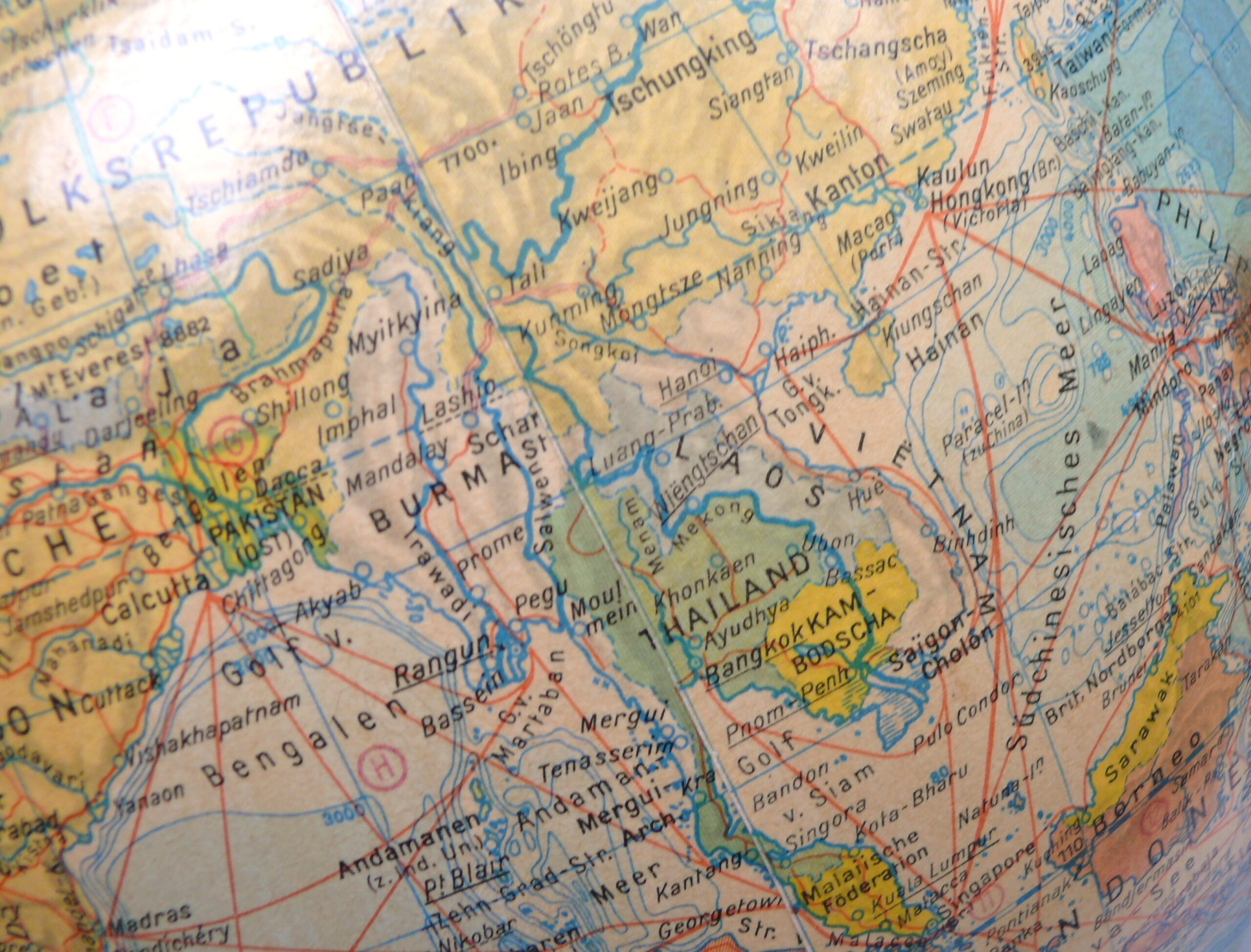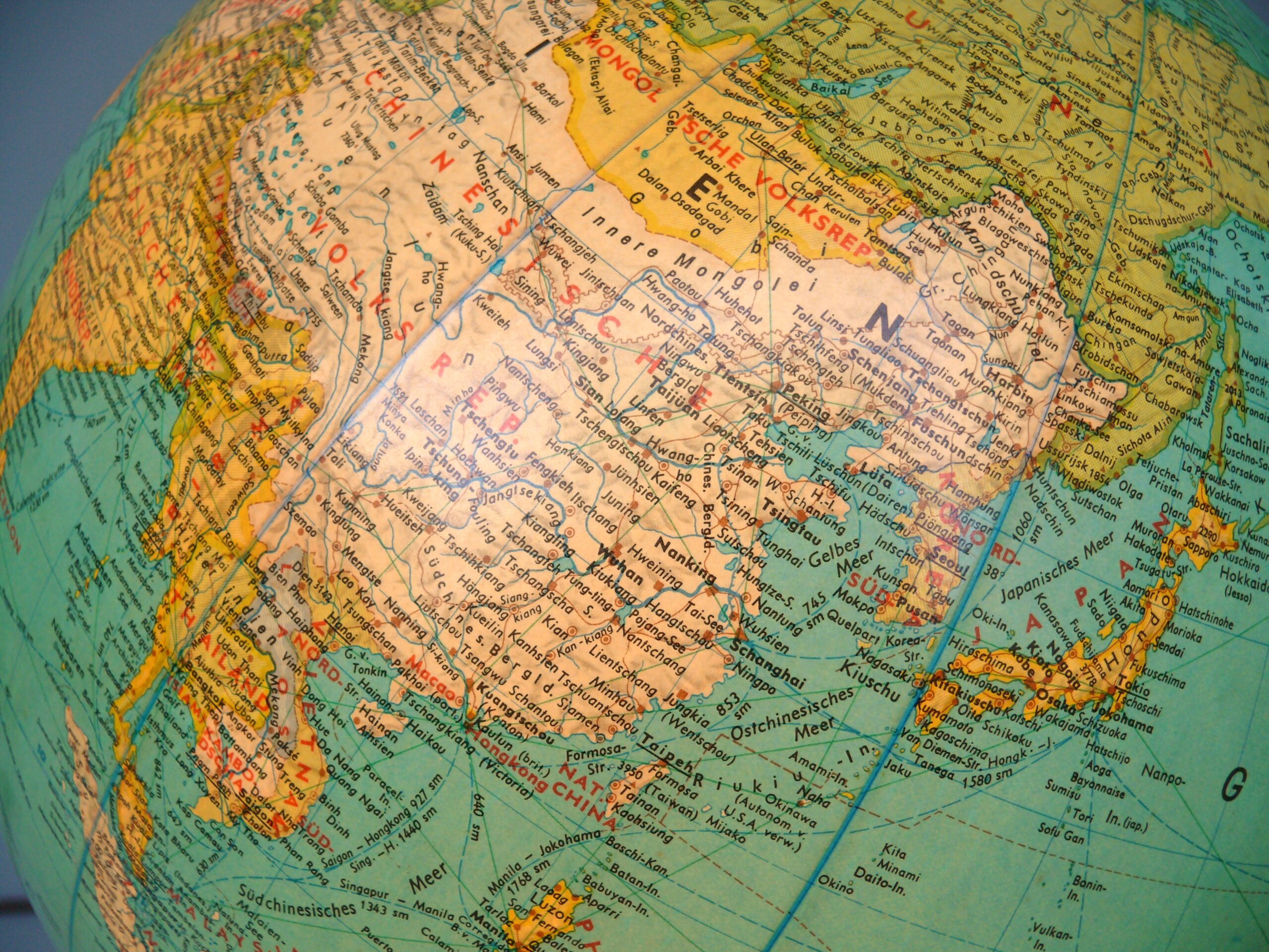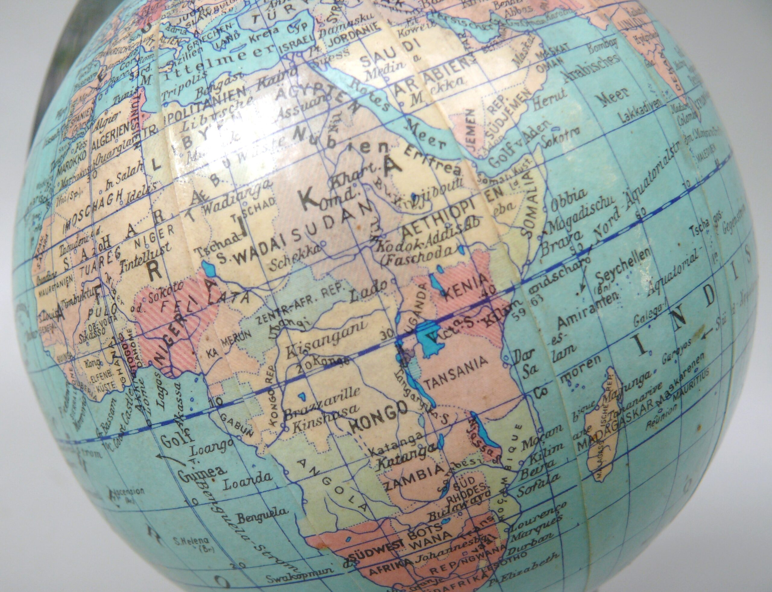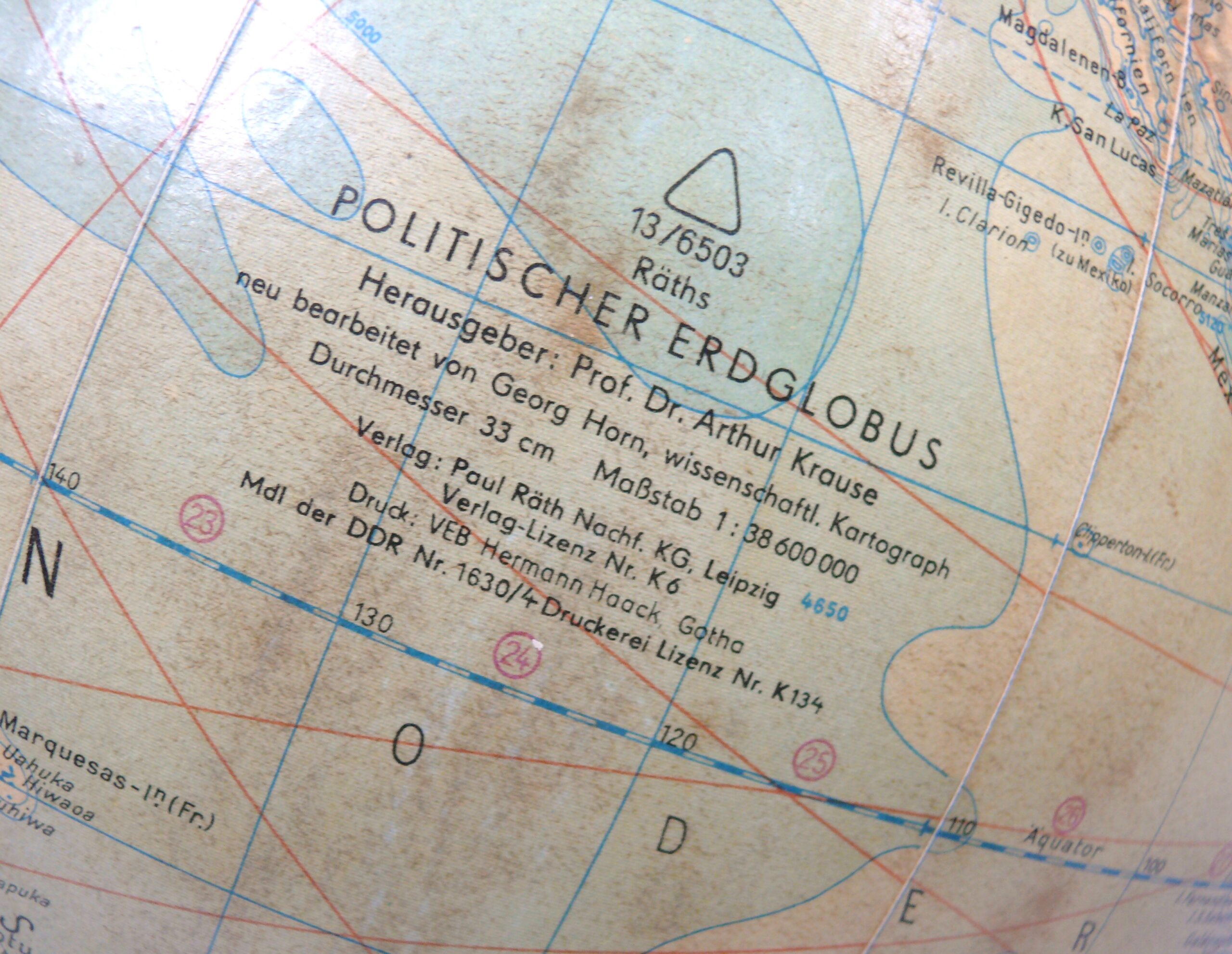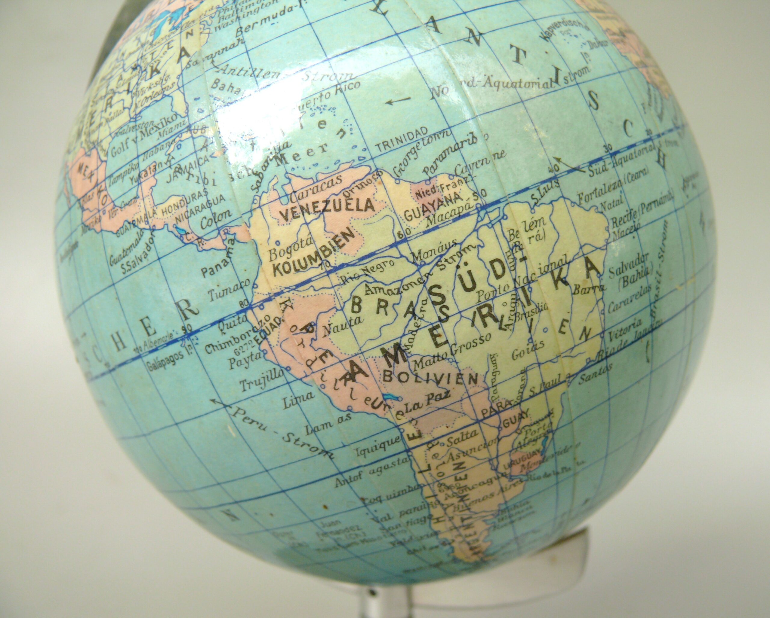 Der Globus hat die typische Farben der Vorkriegsgloben.