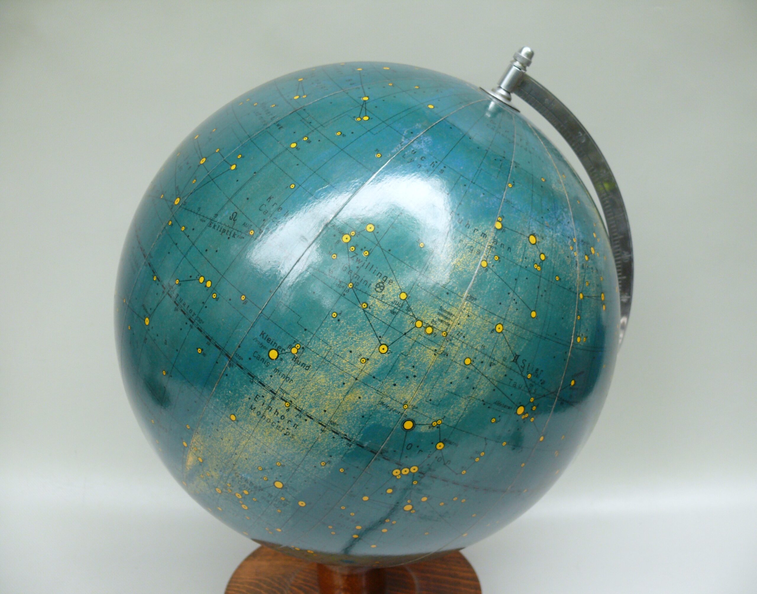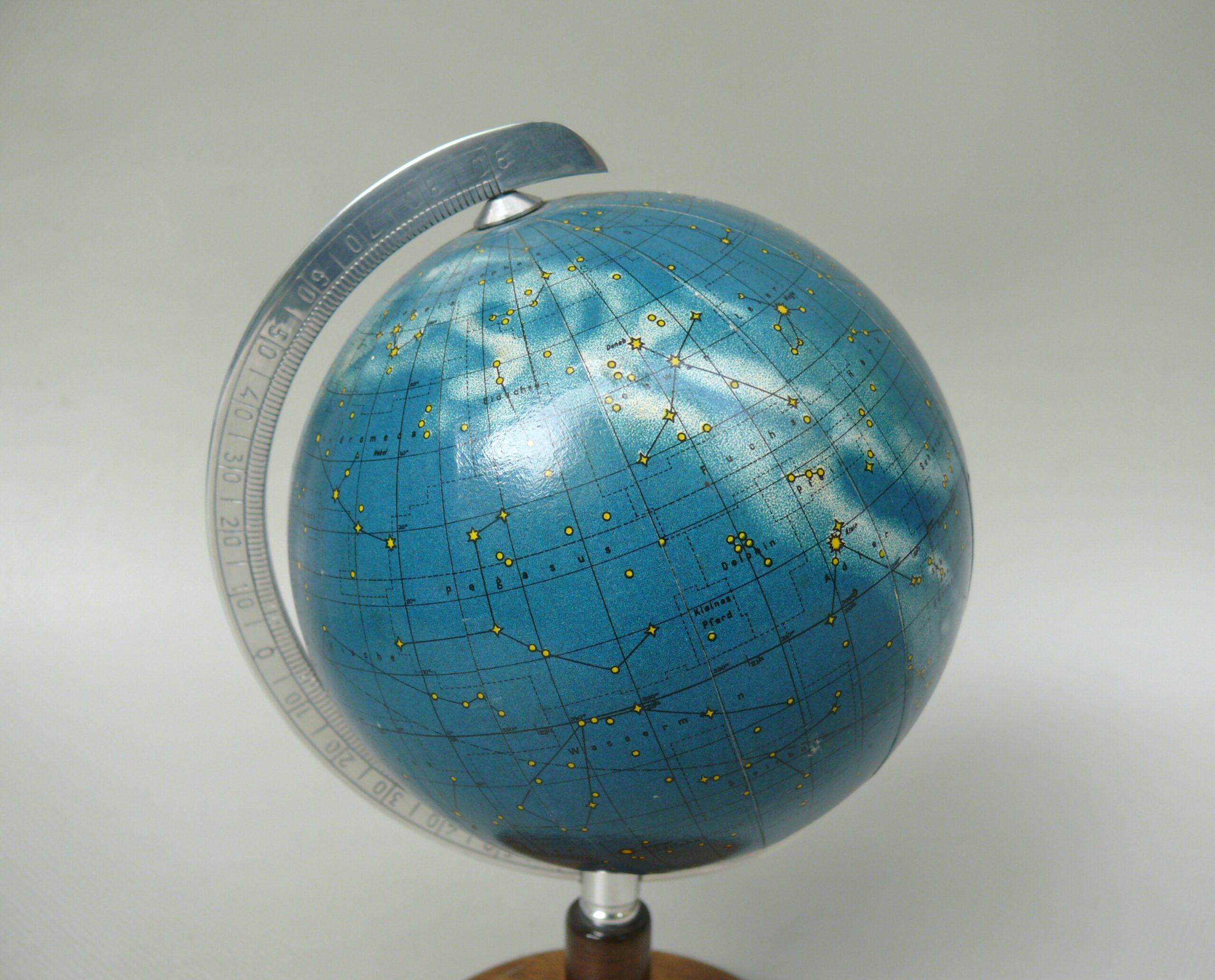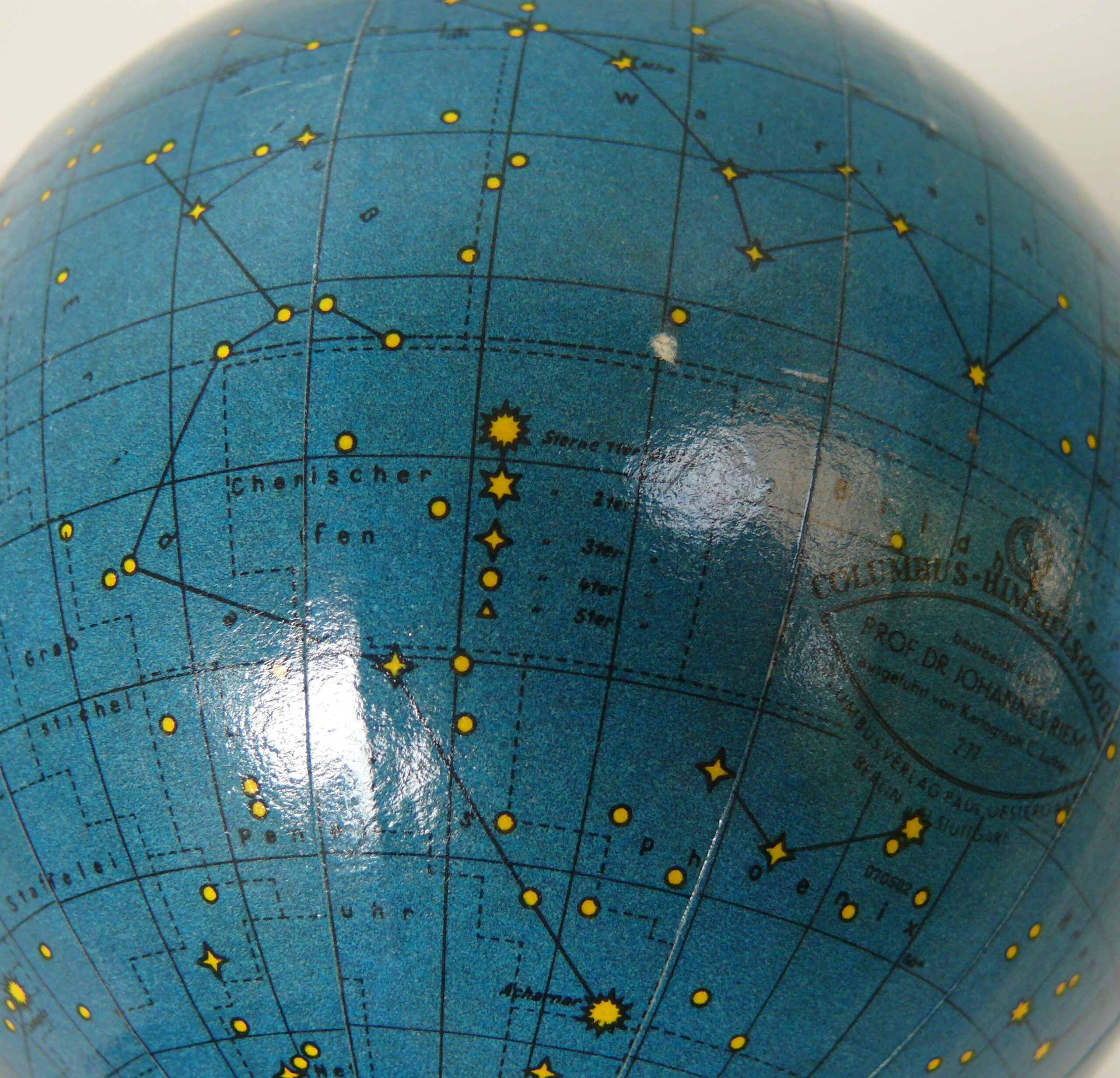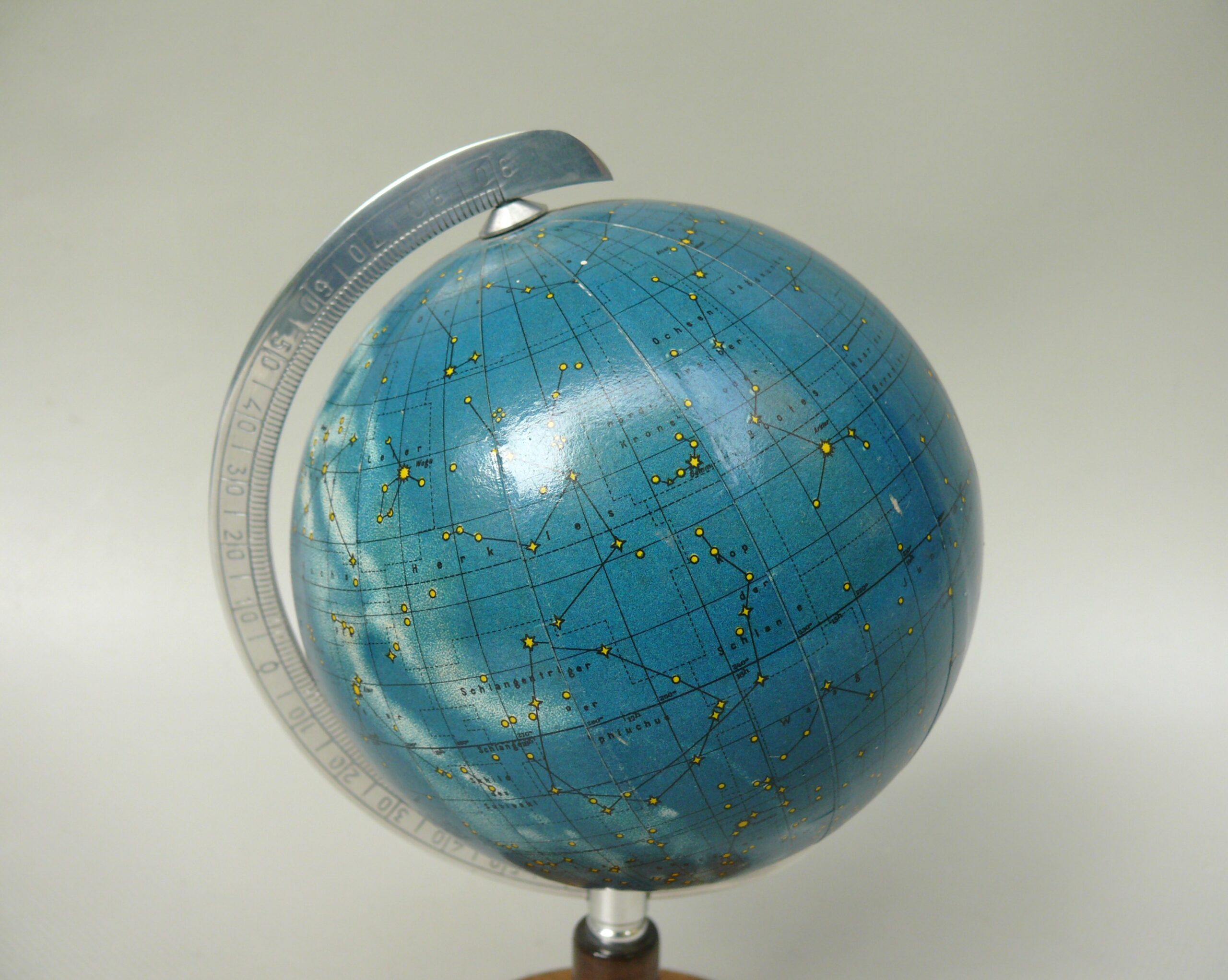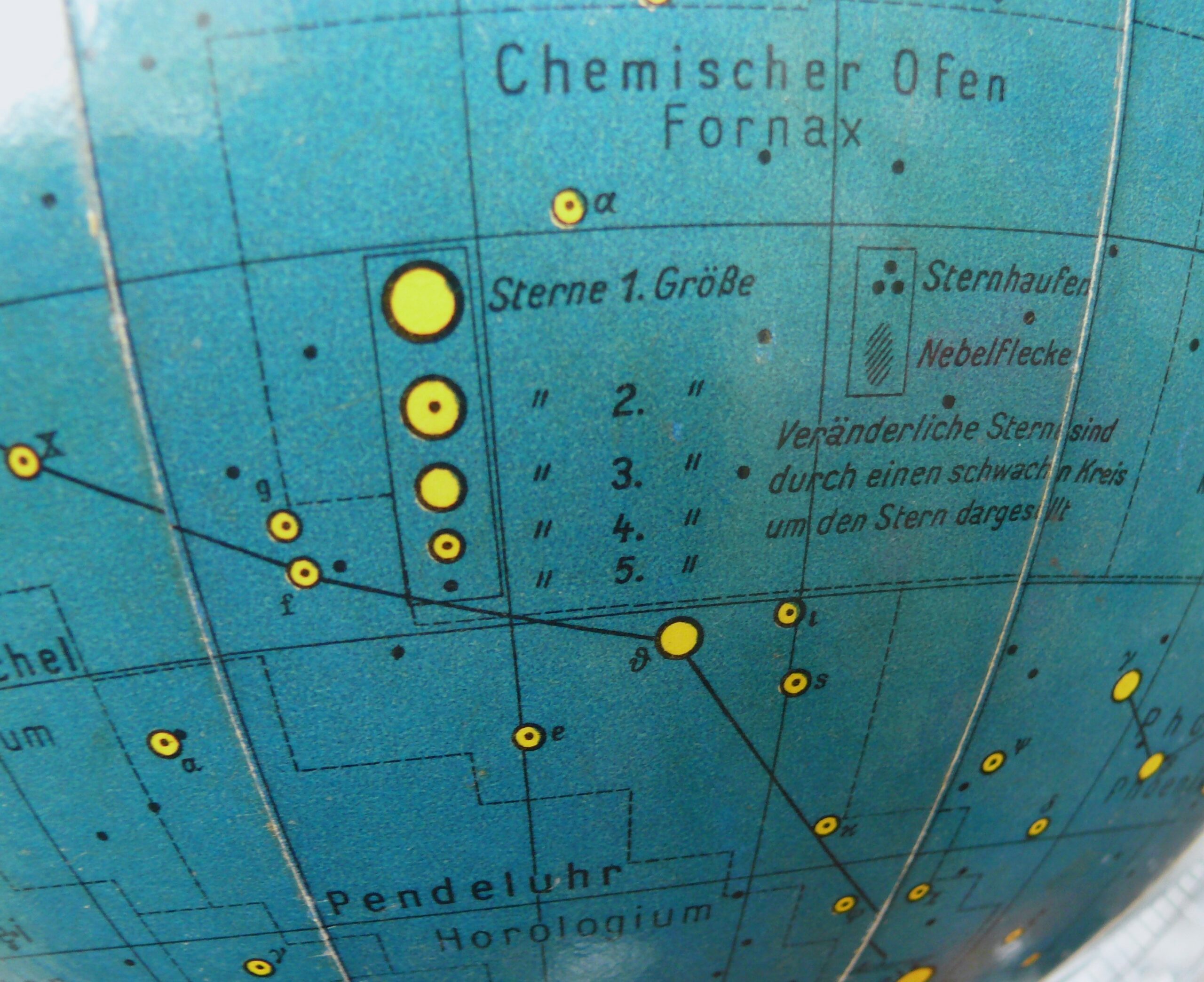 Dieser Himmelsglobus ist sehr gut kombinierbar mit den beiden anderen Columbus-Erdgloben, die wir hier anbieten. Diese beiden Exemplare sind ebenfalls aus den 20er/30er Jahren.
