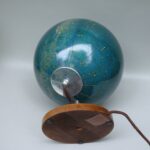 Der Sockel ist aus Holz mit einer verchromten Scheibe. Ein interessantes Detail ist, daß sich der Globus in der verchromten Scheibe spiegelt.