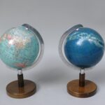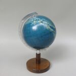 G48 – Globus, Columbus Duo Erdgobus, Sockel Holz, verchromt, Kugel Glas handkaschiert, Meridian Aluminium – Der Mittlere
