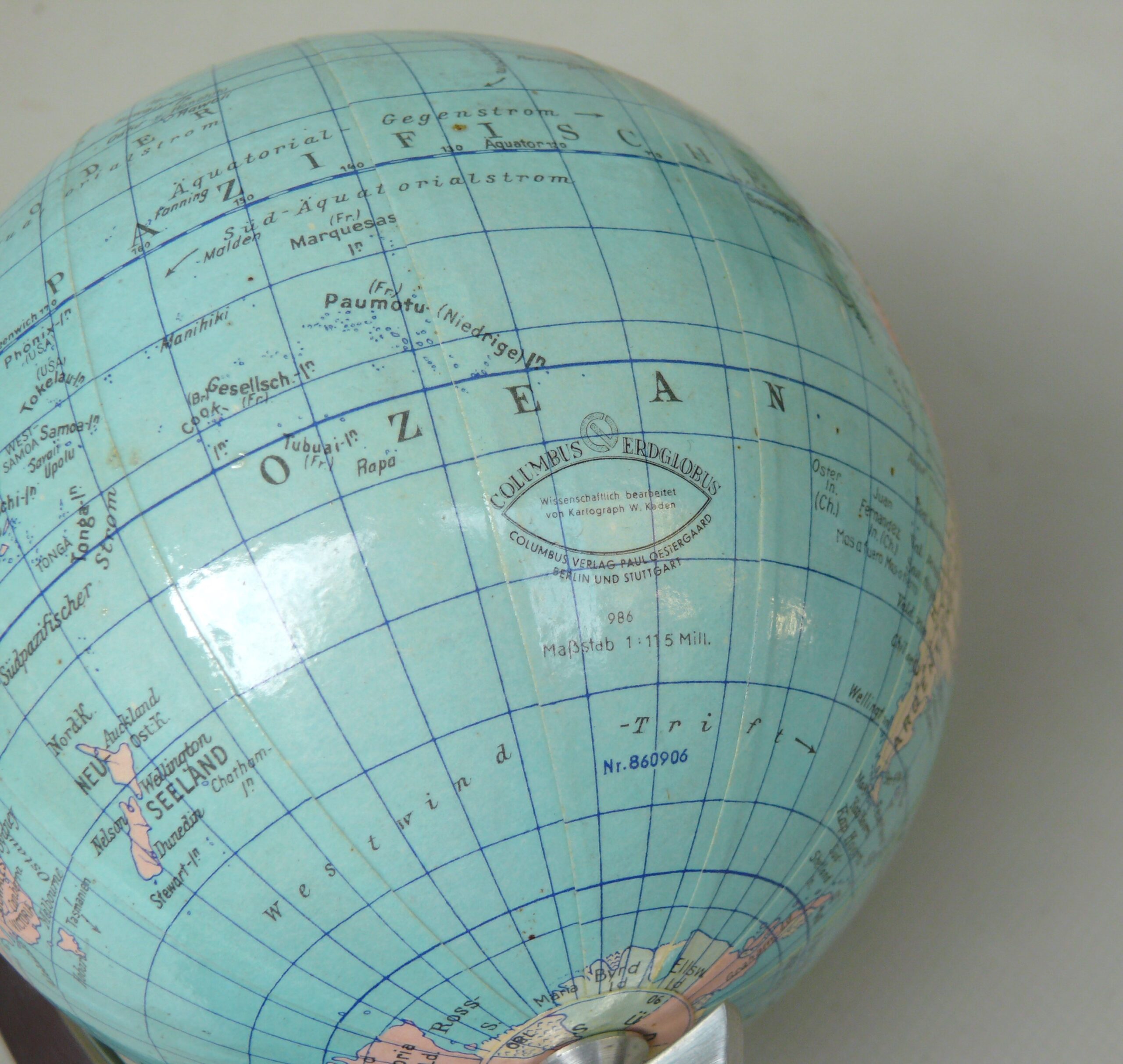 G13 – Columbus Erdglobus, 50er/60er Jahre, geographische Karte