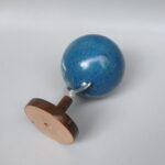 Der Sockel ist aus Holz gedrechselt, die Kugel aus Pappe mit Papier handkaschiert.