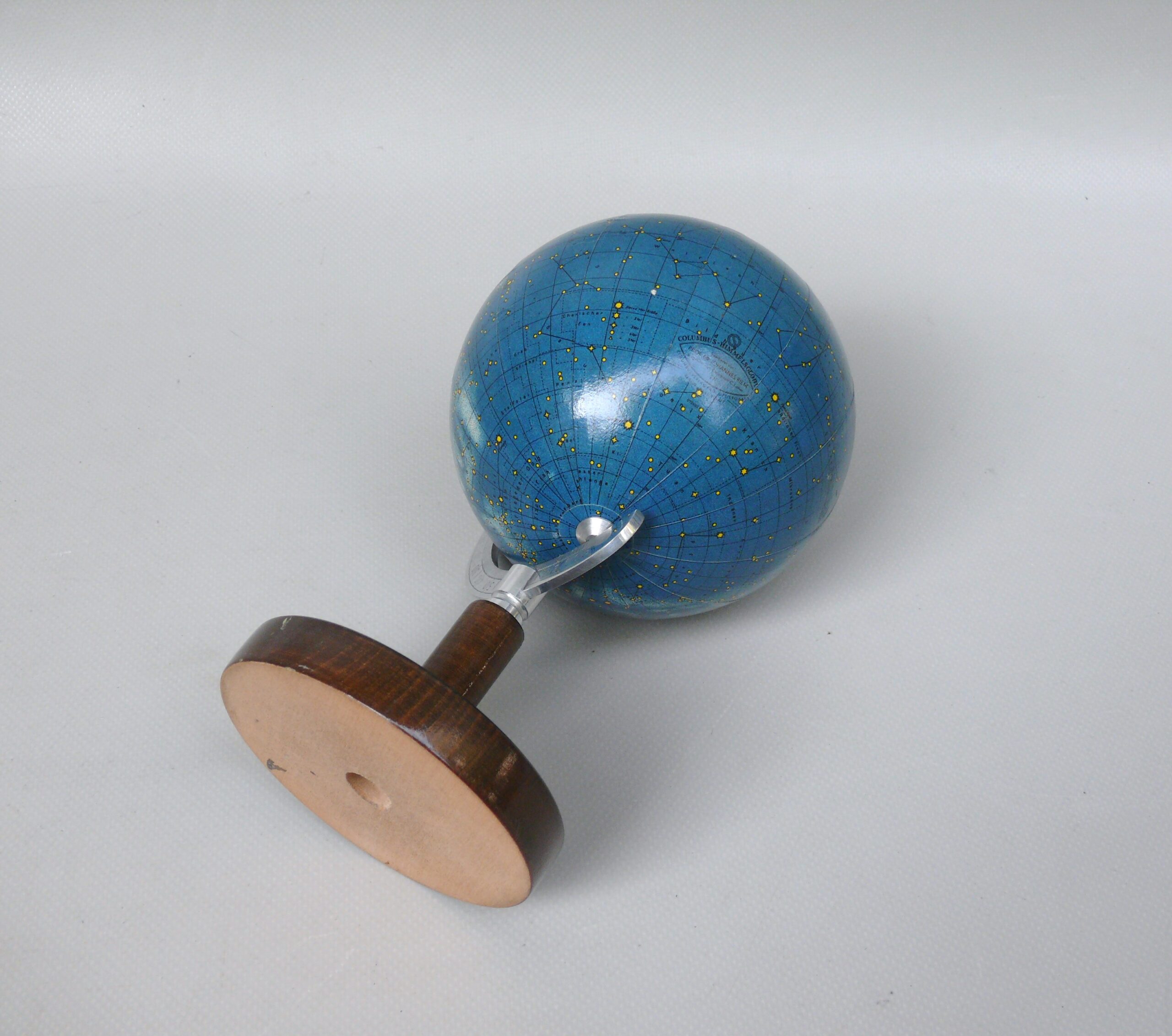 G45 – Columbus Himmelsglobus, 50er/60er Jahre, Sockel Holz, verchromt, Kugel Pappe handkaschiert