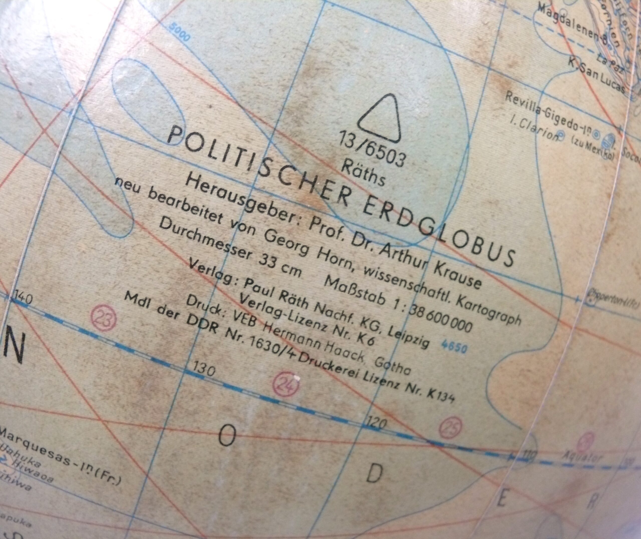 G11 – Schülerglobus Columbus, 50er/60er Jahre, geographische Karte