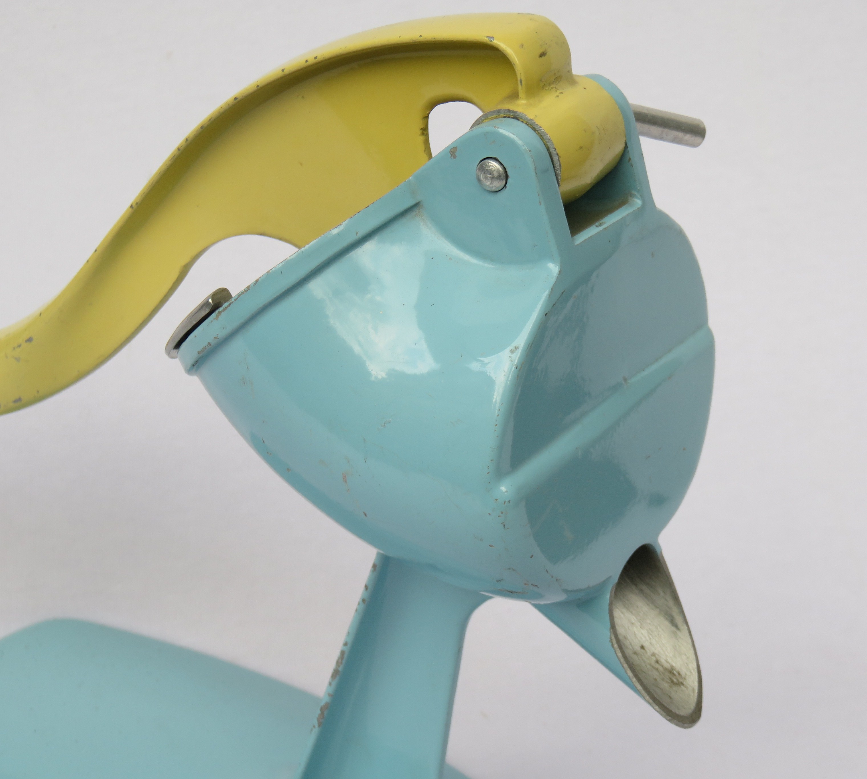 Eine formvollendete Saftpresse, hergestellt in den 50er Jahren in Deutschland – ein Designobjekt und zugleich Eyecatcher in jeder Küche. Sie ist bezeichnet mit Lichtperle.