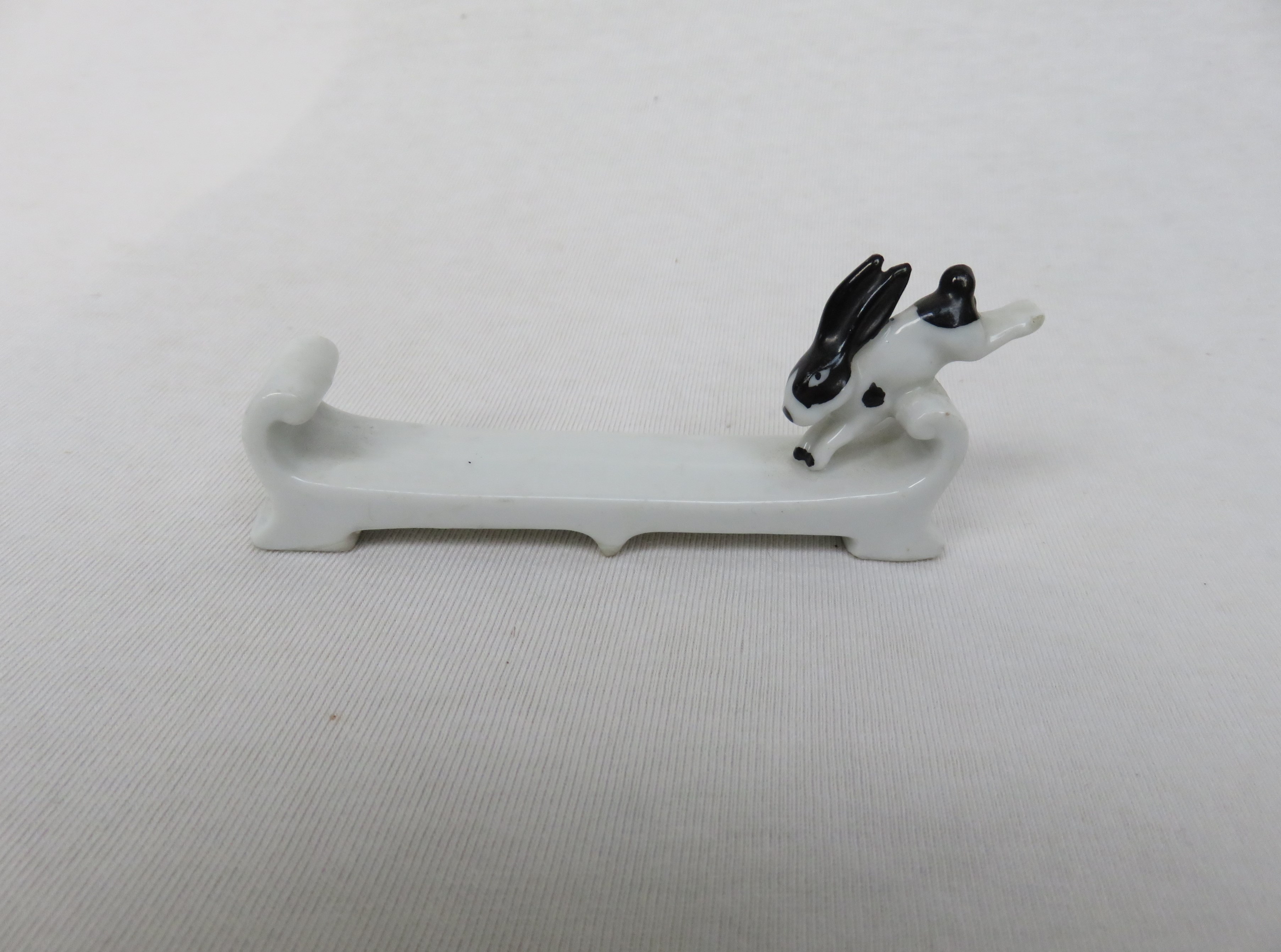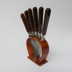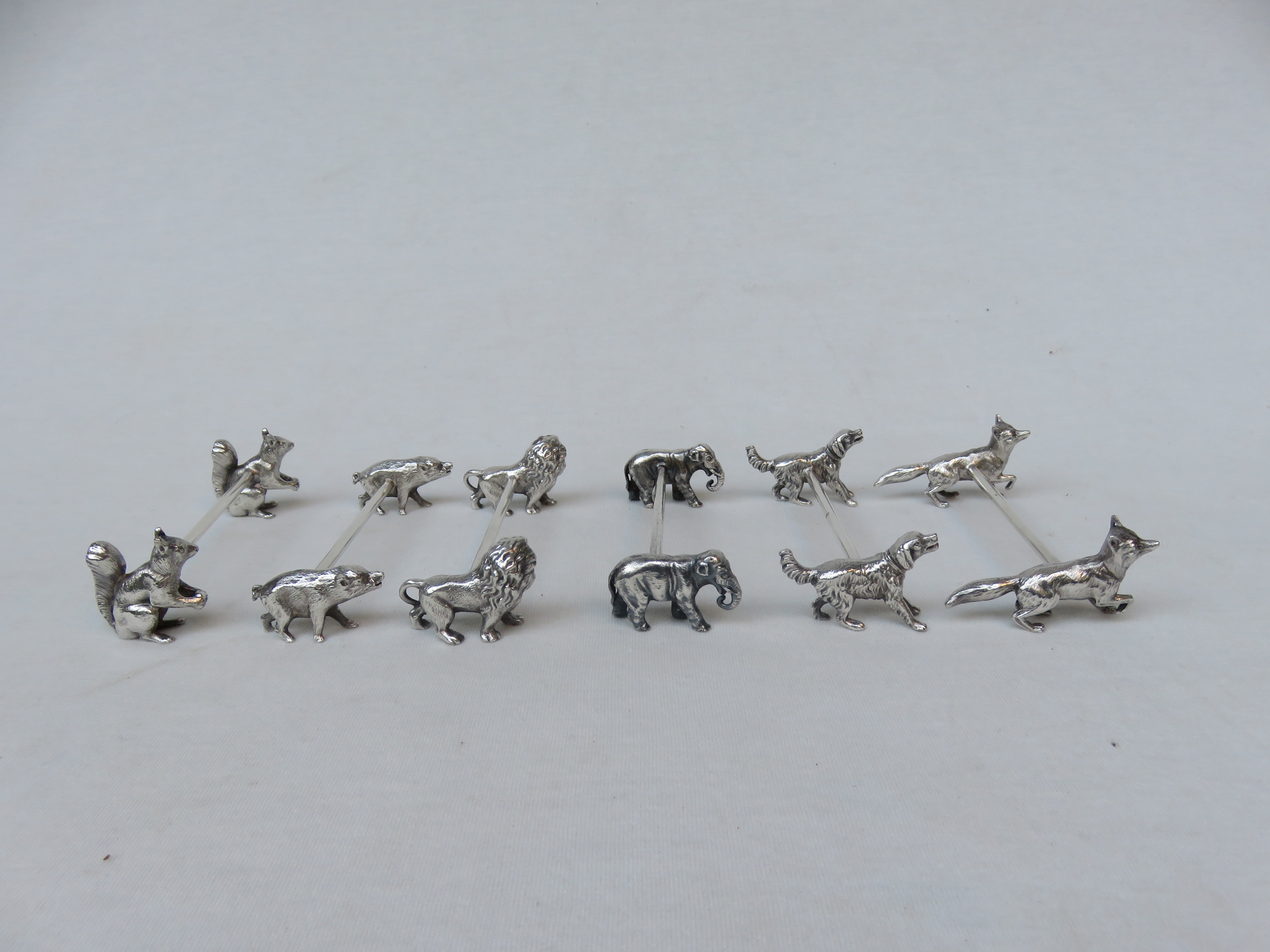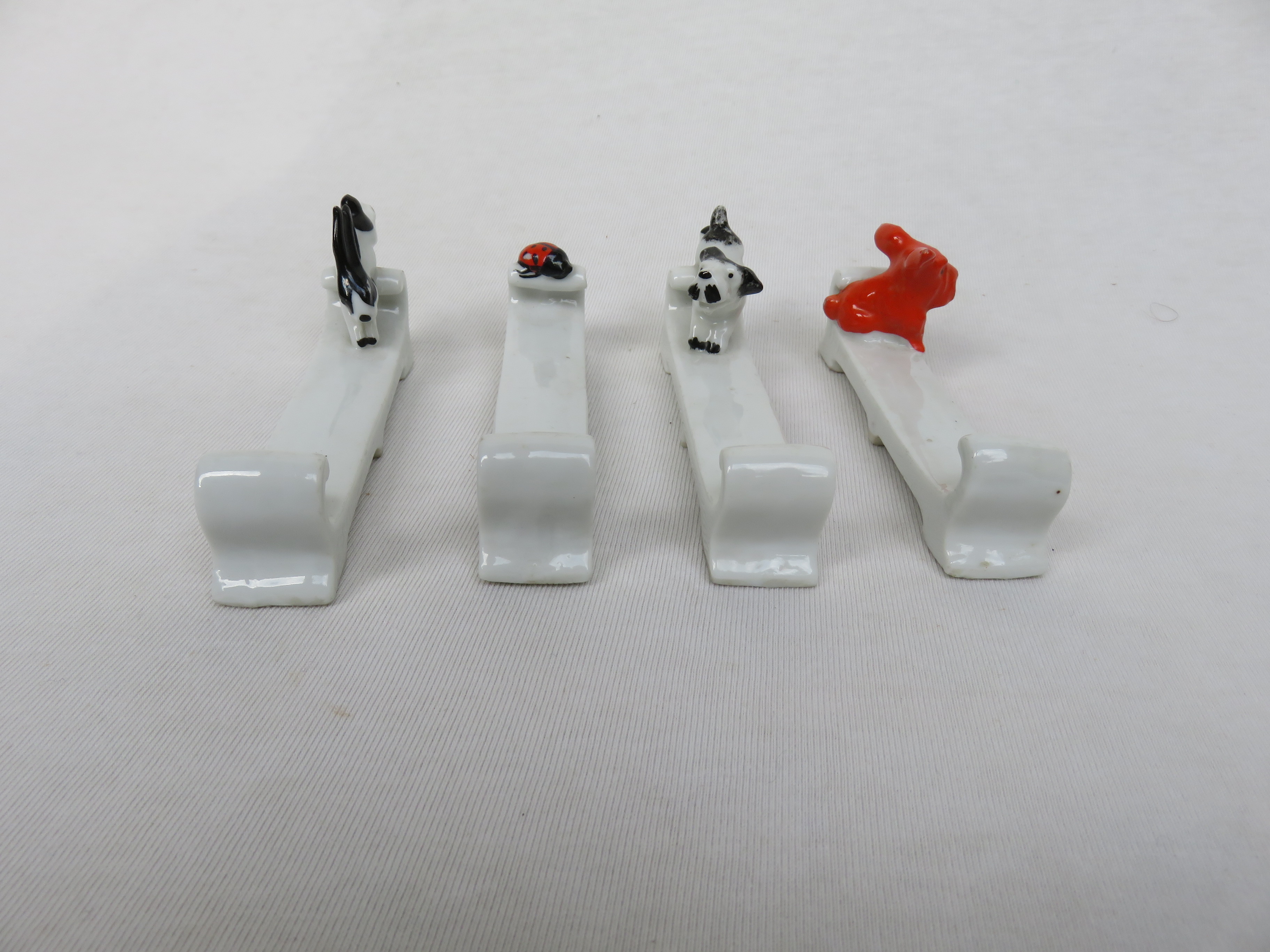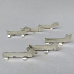 K7 – 6 Messerbänkchen, bez. Wiskemann 24, Art Deco, Tierfiguren, versilbert