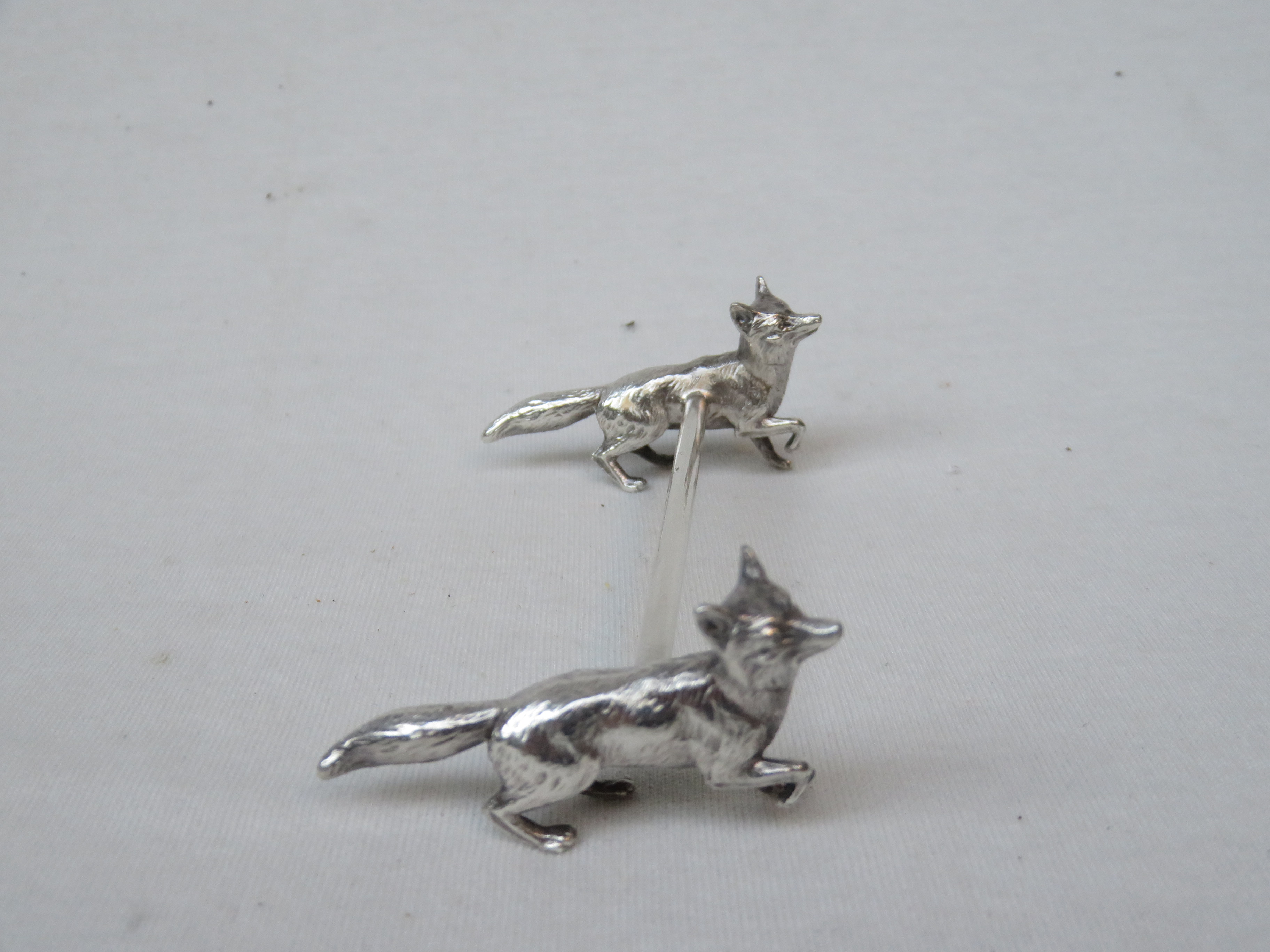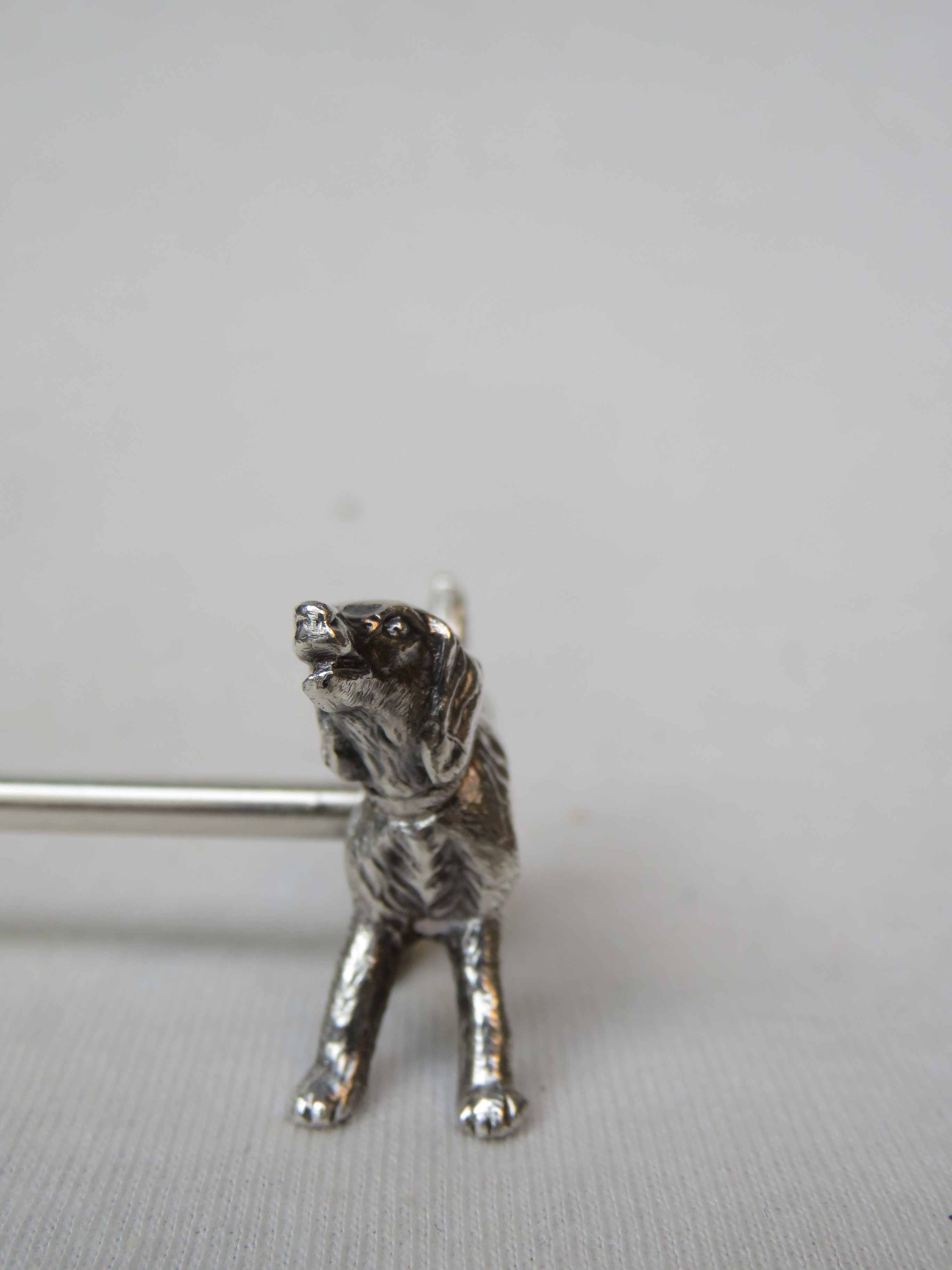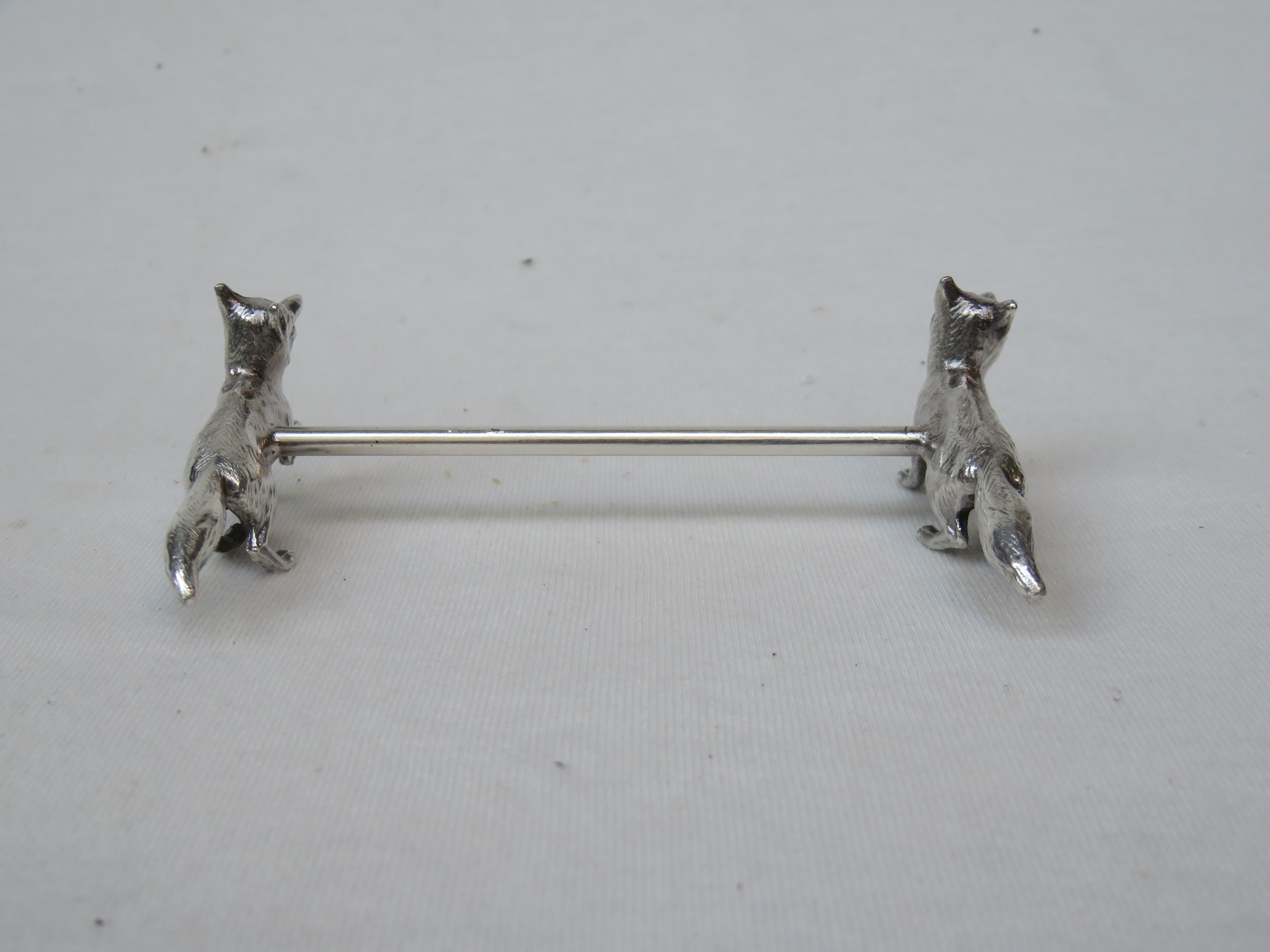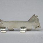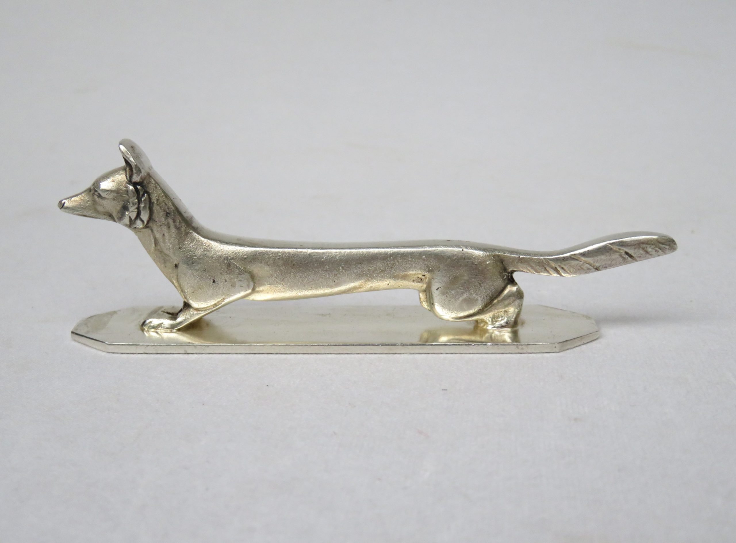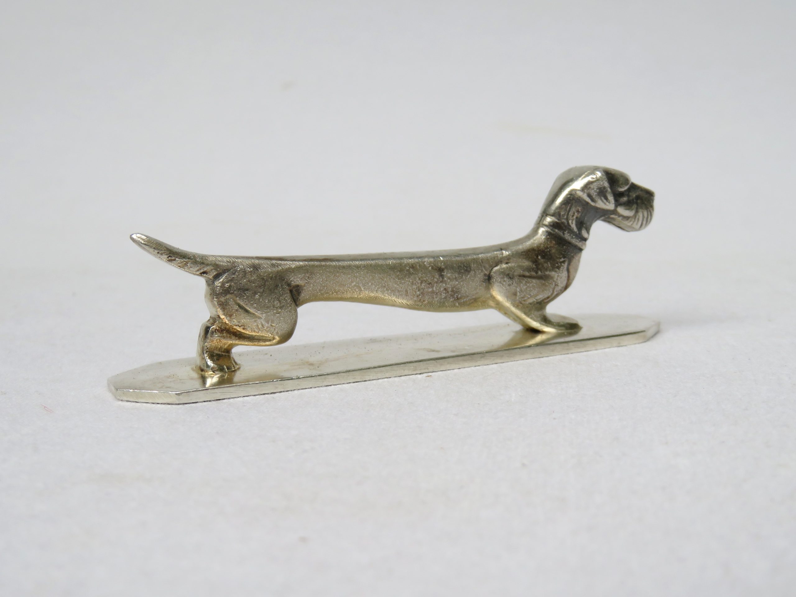 K20 – 6 Messerbänkchen, Art Deco, Frankreich, versilbert – Hunde, unbezeichnet
