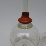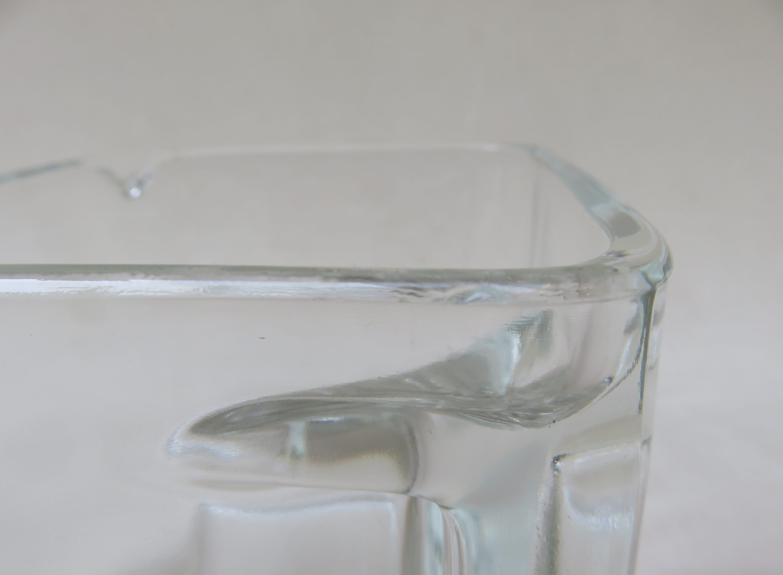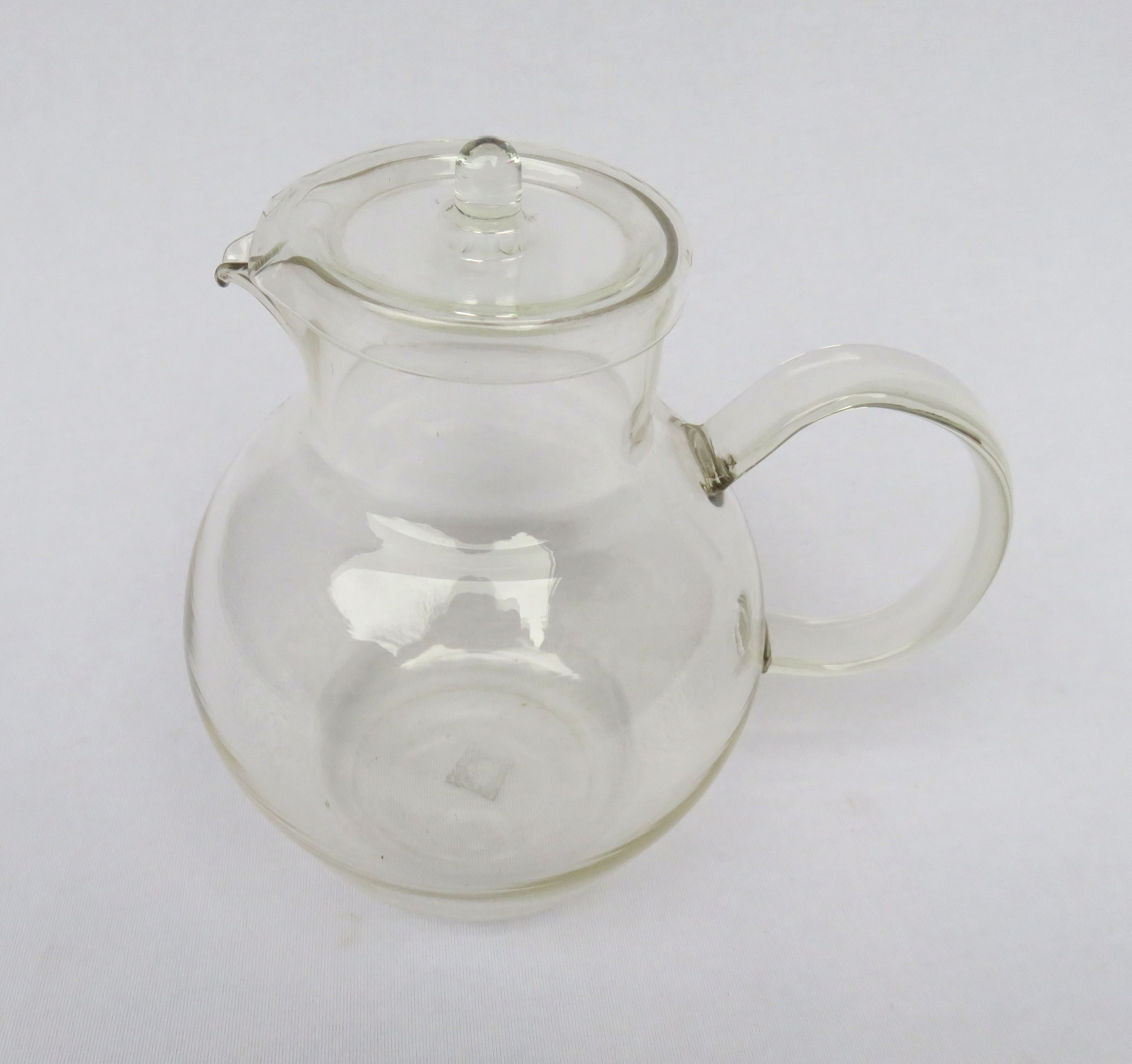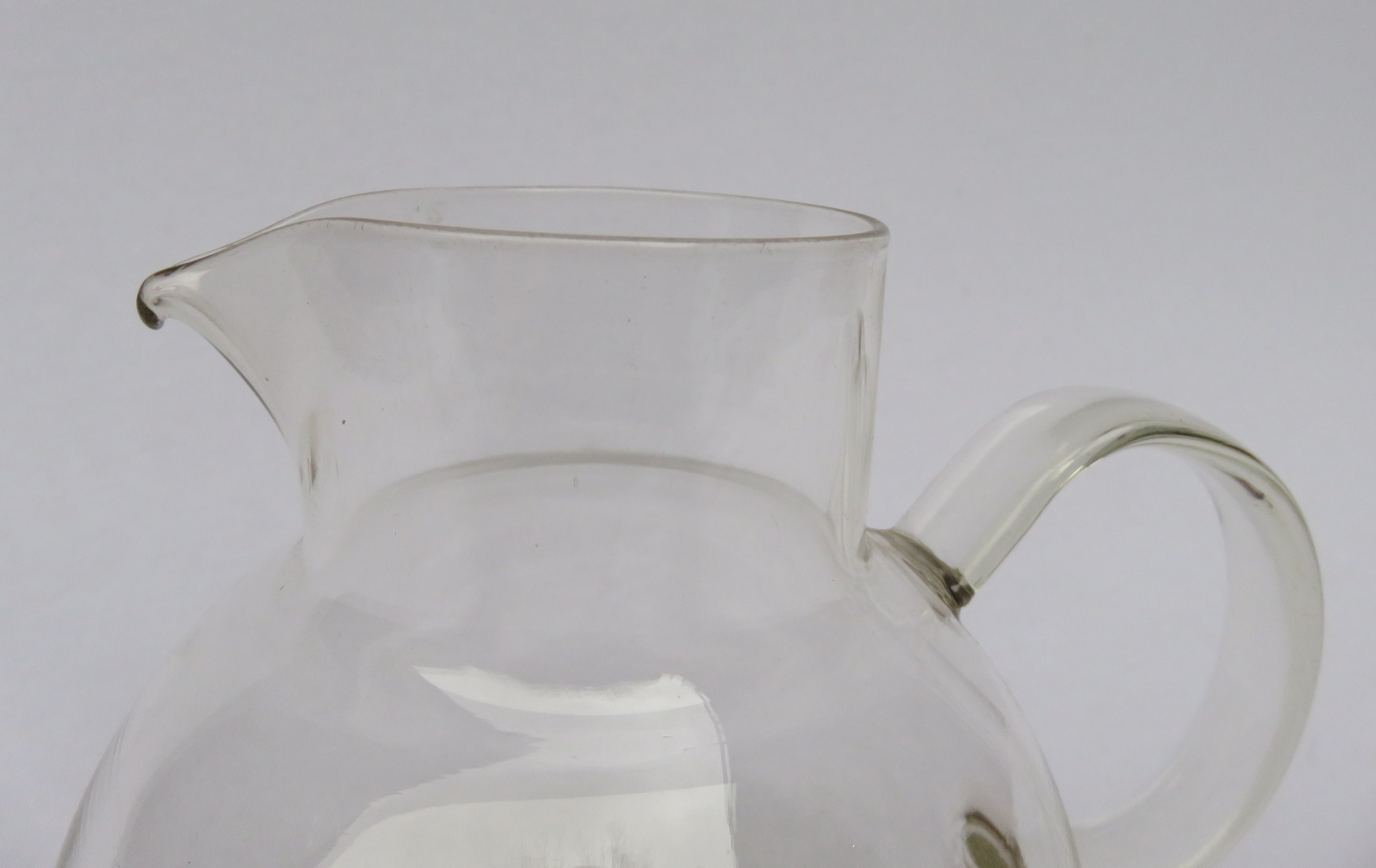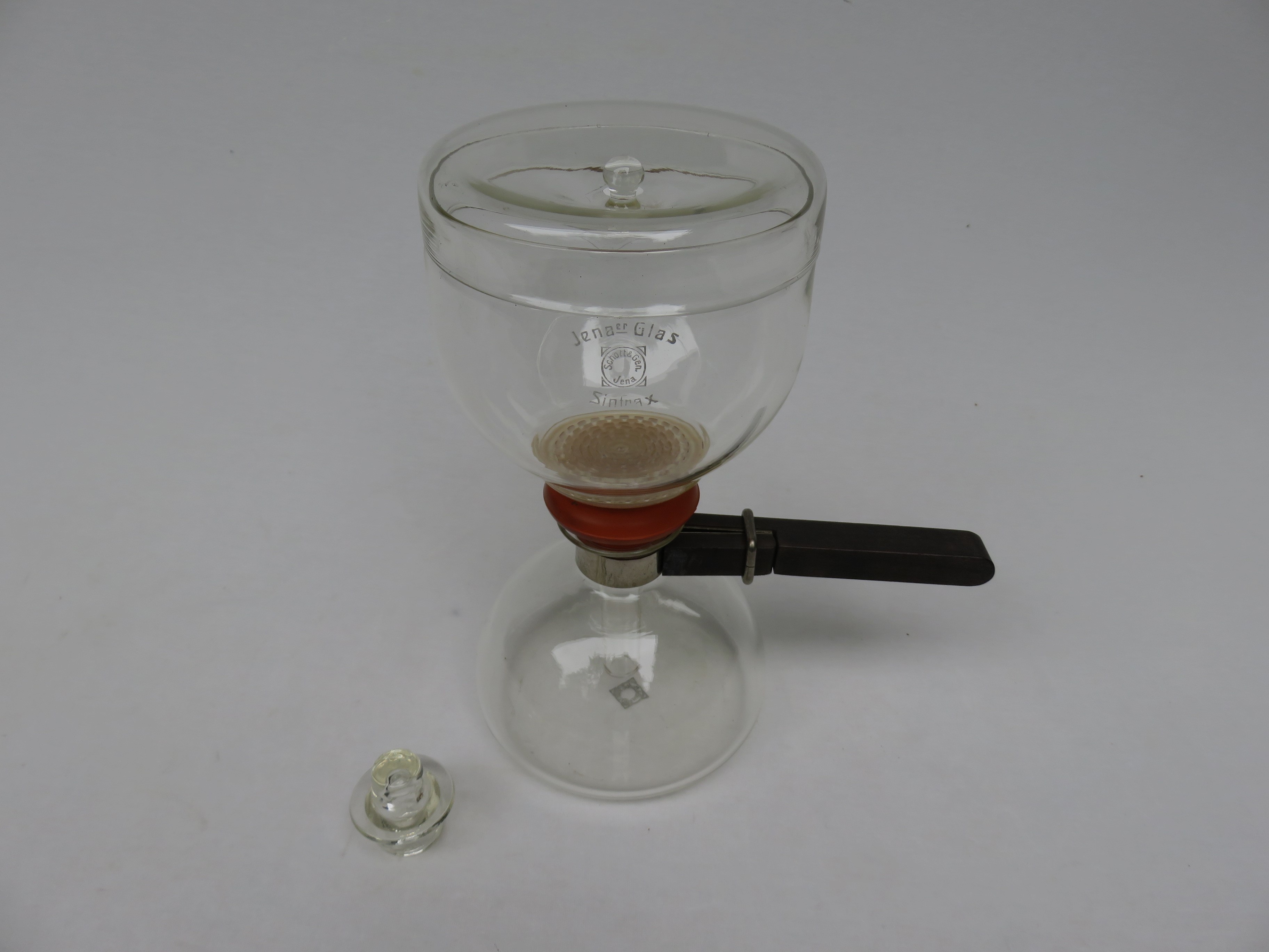 Der Auffangbehälter ist ebenfalls Preßglas – Maßangaben 1/2, 1 und 1 1/2.