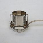 Es sind rundumlaufend um das Sieb (4 x) sowie am Griff asiatische Motive eingearbeitet.