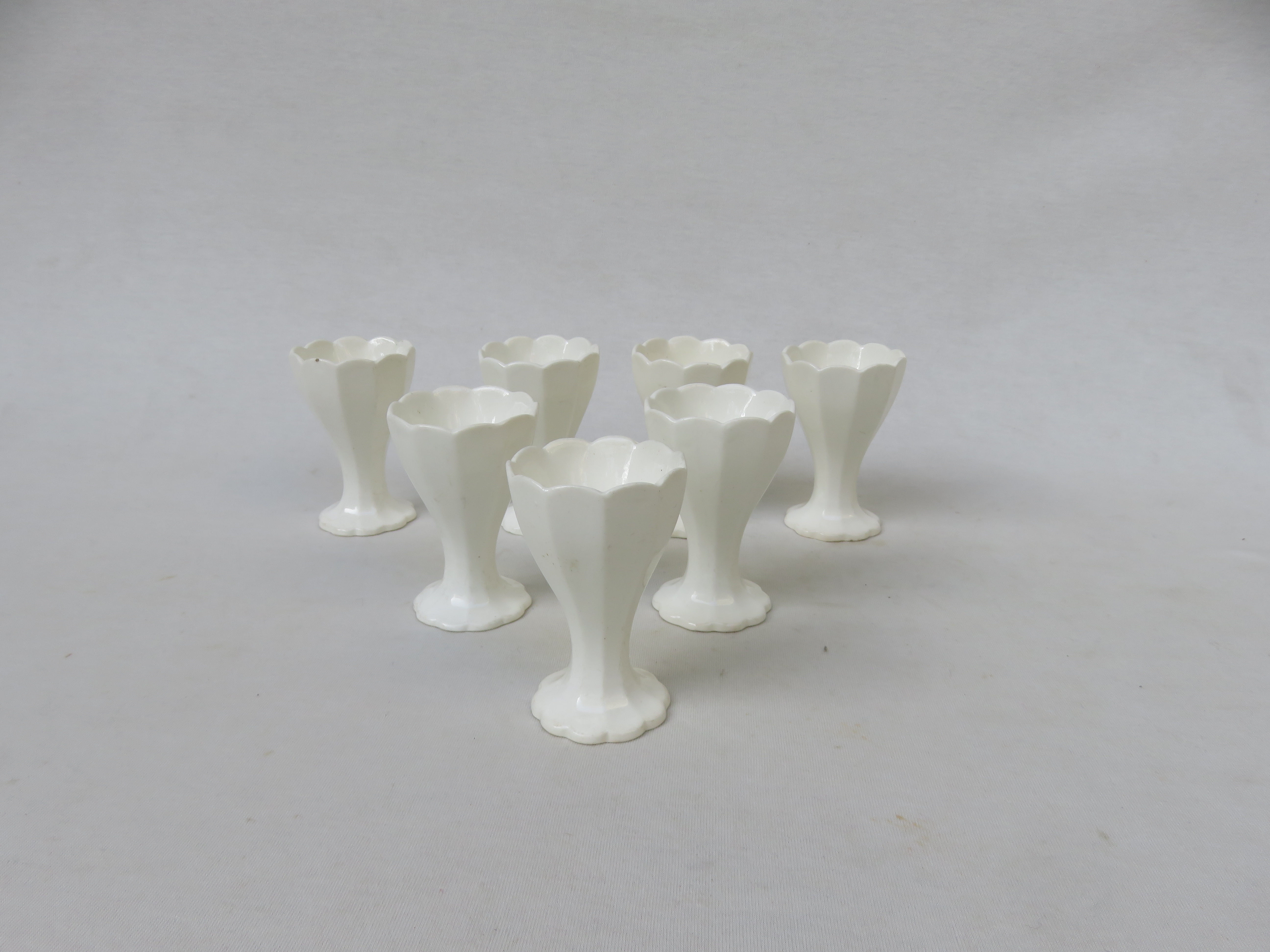 Ein Set von 7 Eierbechern aus der Serie „Eckenschliff“, ein Entwurf aus Januar 1914 (angemeldet zum Musterschutz) von Adolf Behrmann für Max Roesler.