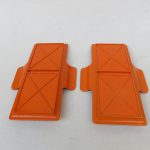 K21 – 2 Stück Menagen, Art Deco, Glas, oranges und schwarzes Bakelit, Glas bez.: PONCET