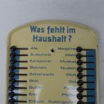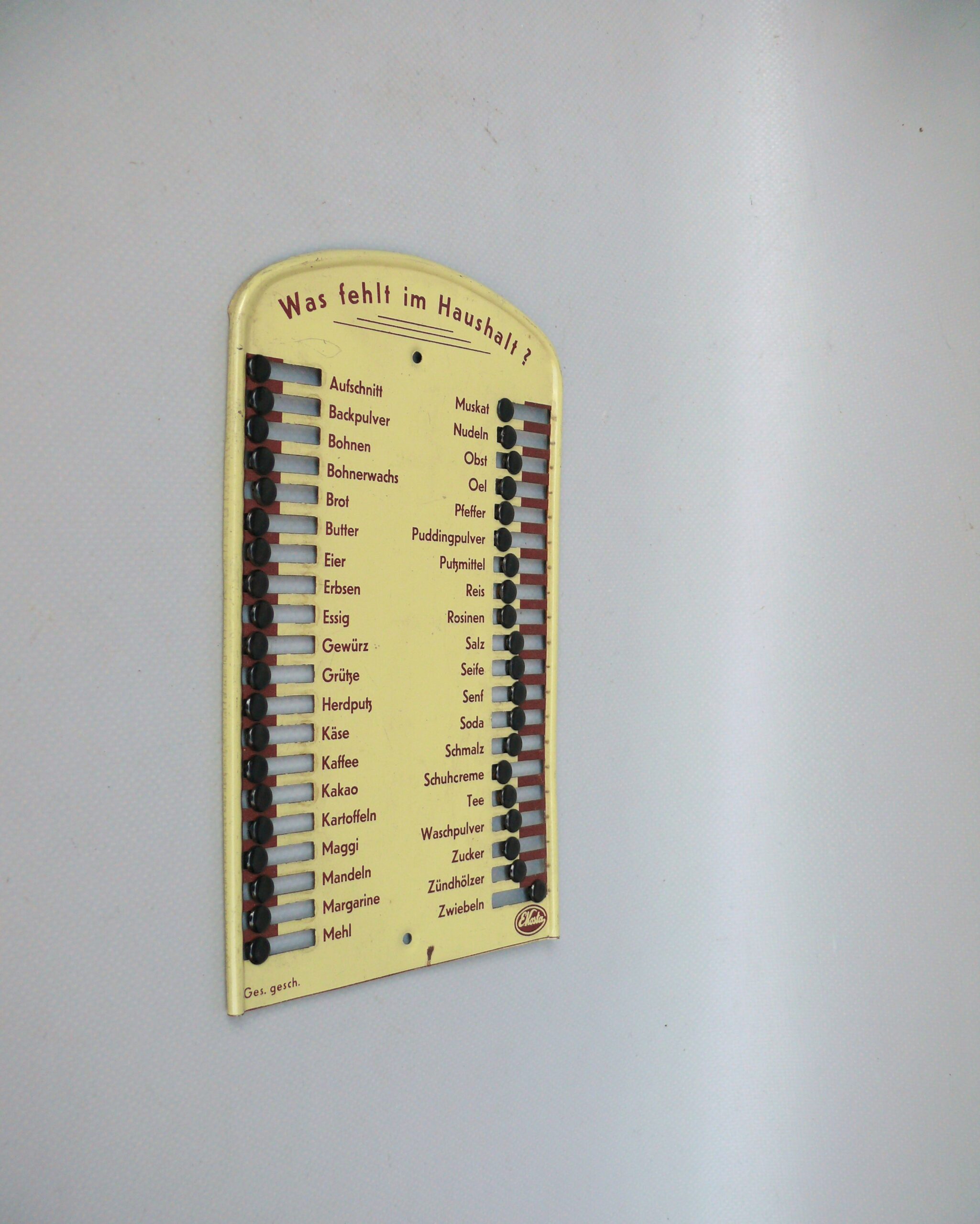 Eine sehr schöne Dekoration für die Küche im Landhausstil oder integriert in eine moderne Wohnküche – eine Merktafel, Haushaltsmerker aus den 30er Jahren, der Zeit des Art Deco und Bauhaus.