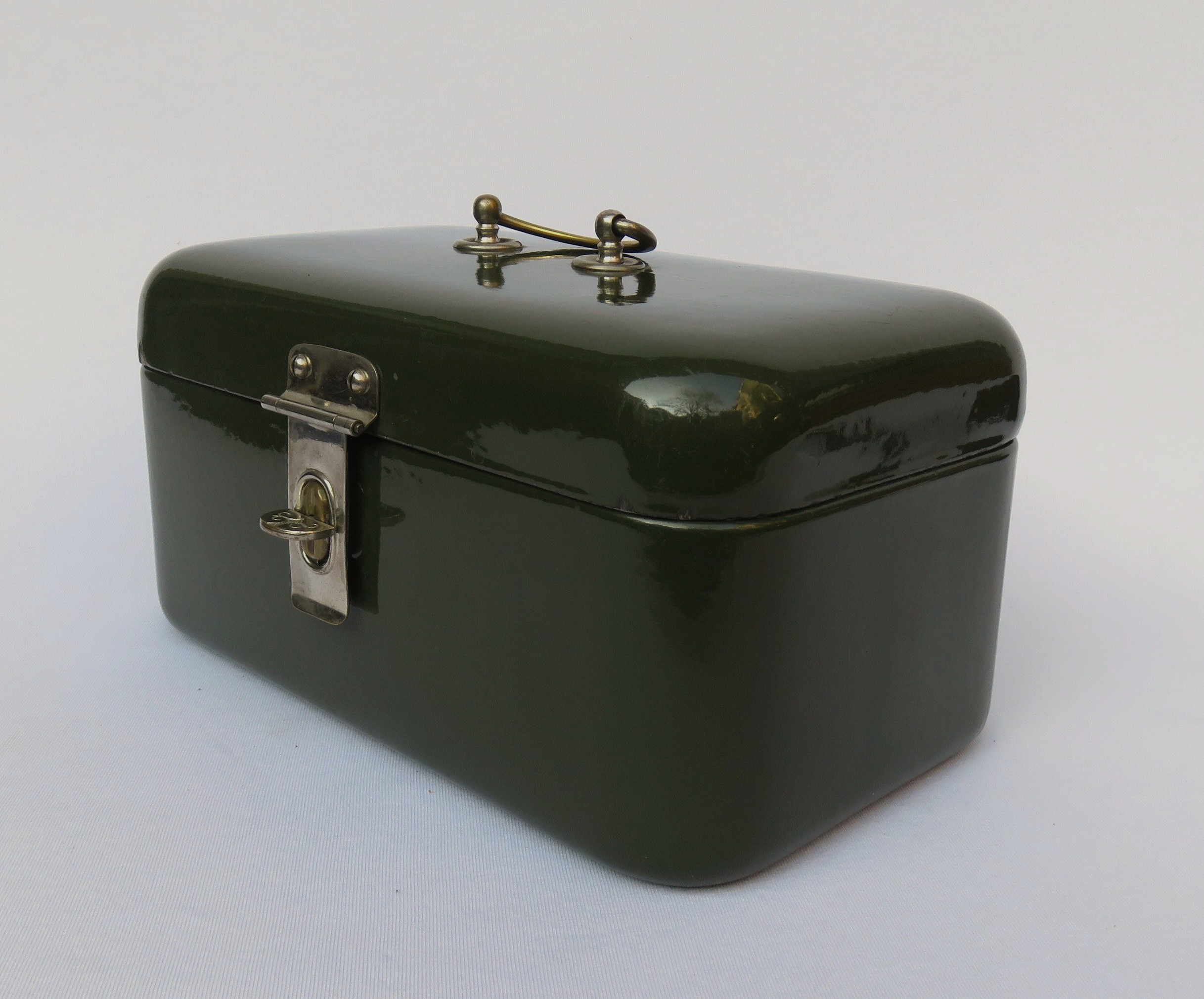 K63 – kleine Brotdose, Gebäckdose, emailliert dunkelgrün