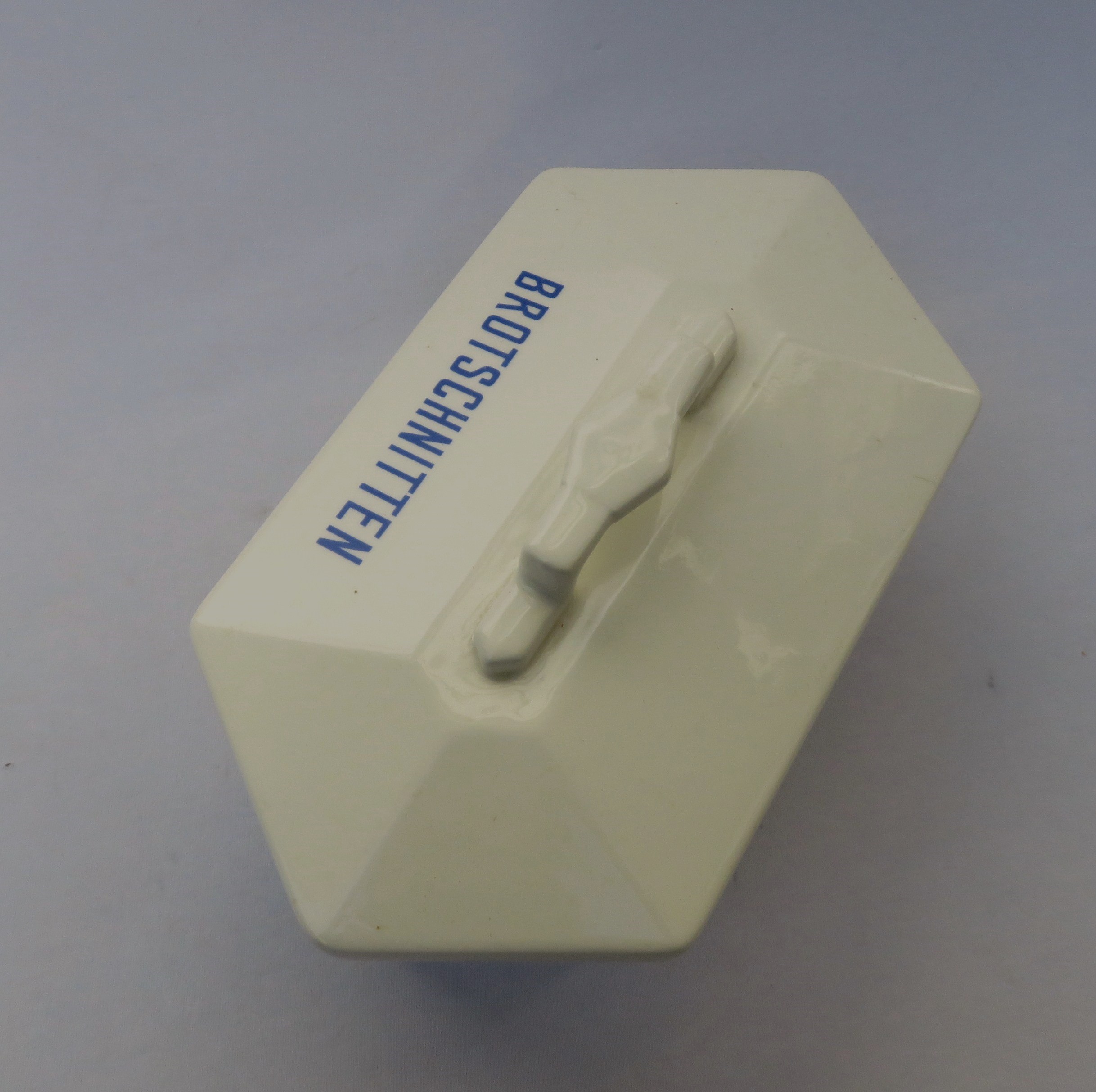 K16 – Dose Keramik BROTSCHNITTEN, bezeichnet unter dem Stand mit der Firmenmarke von Roesler
