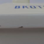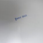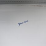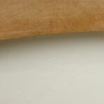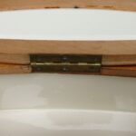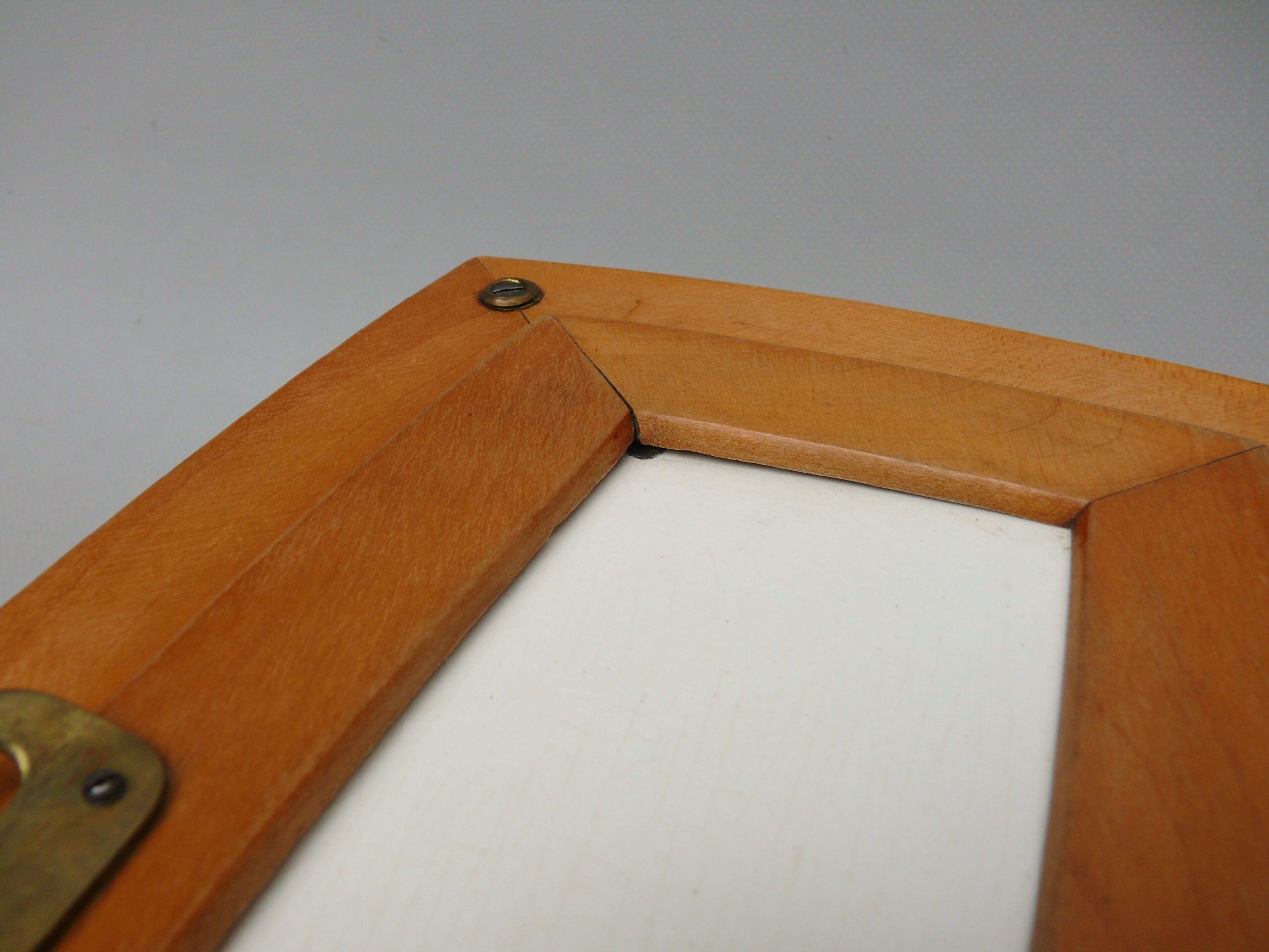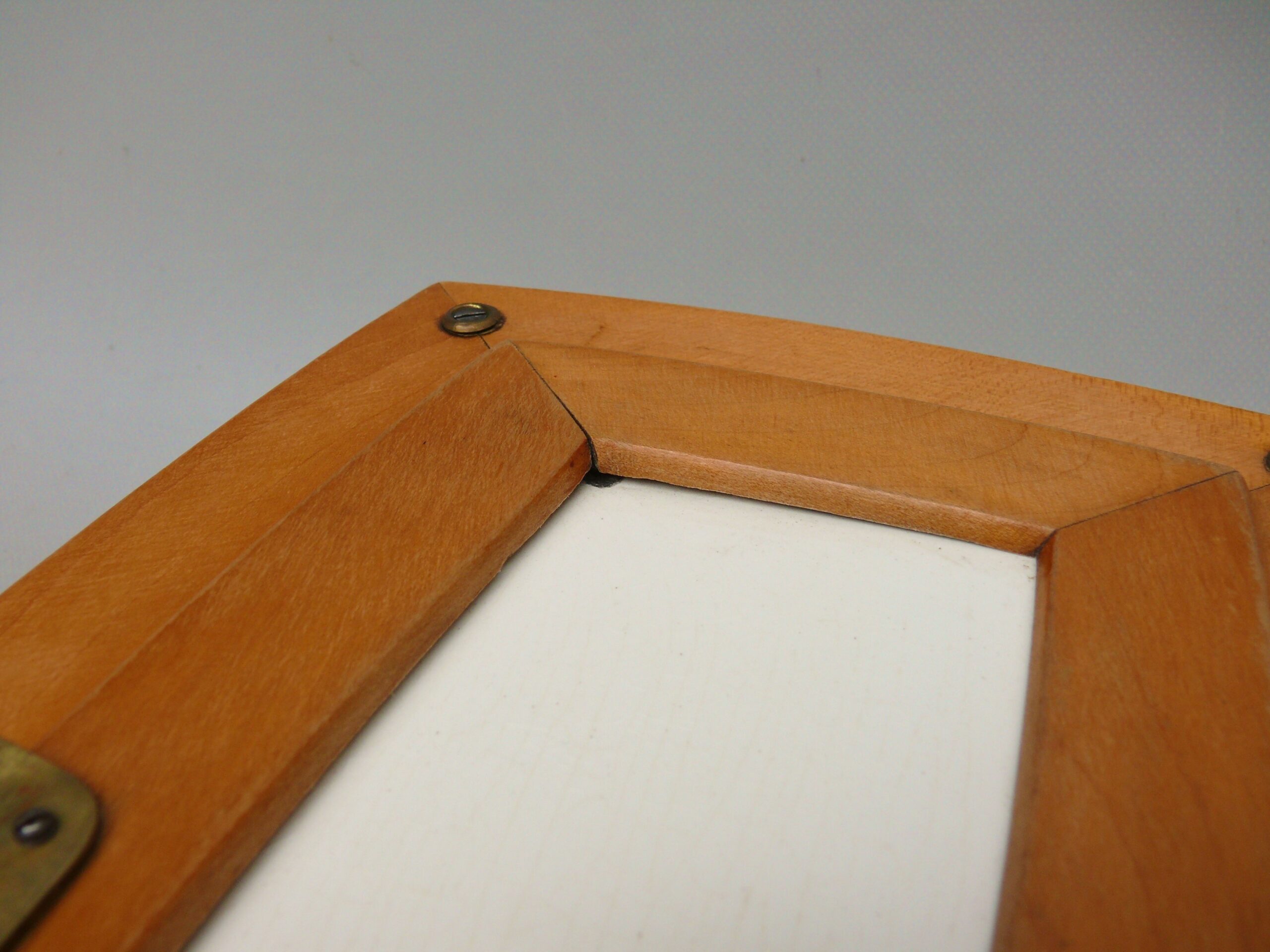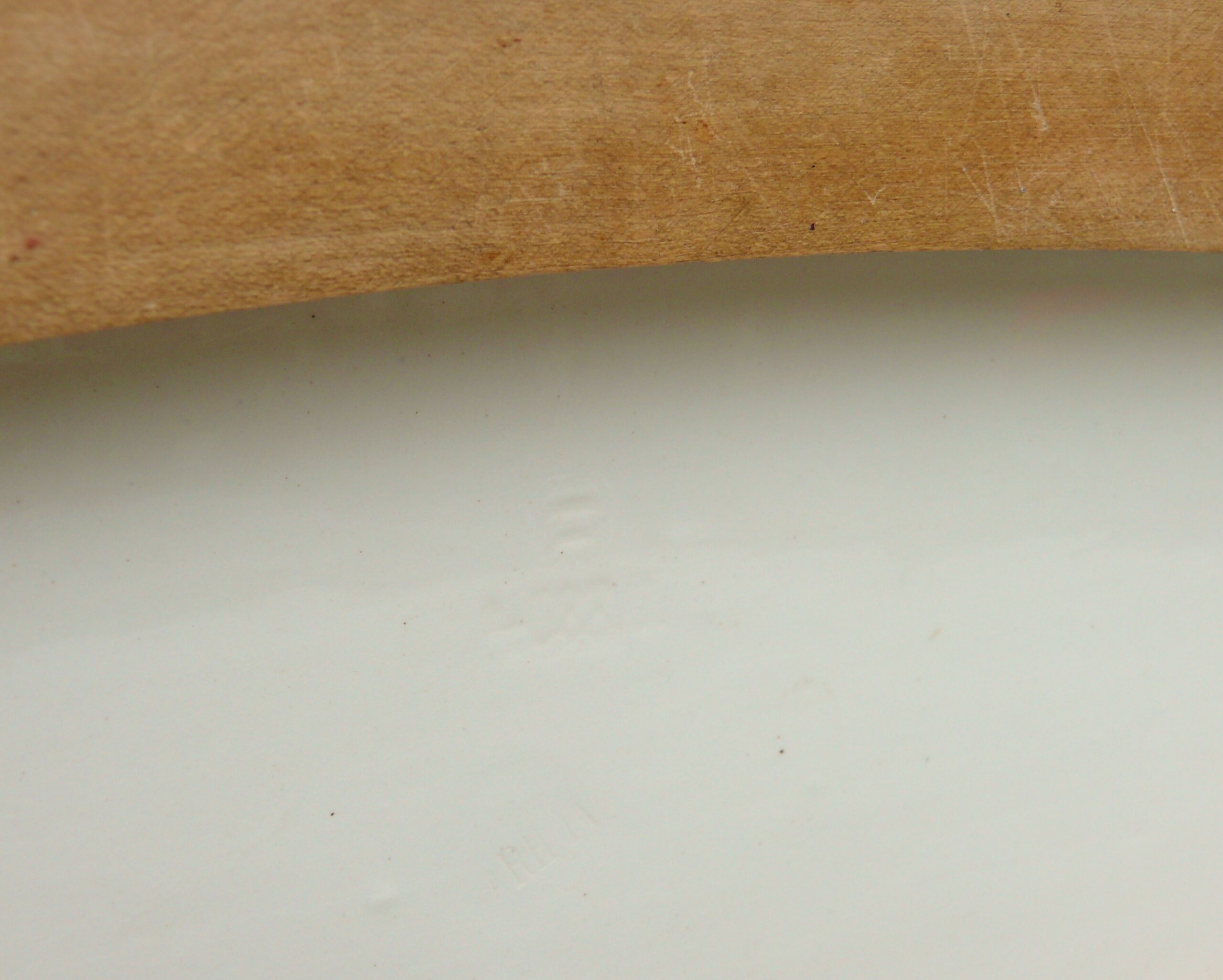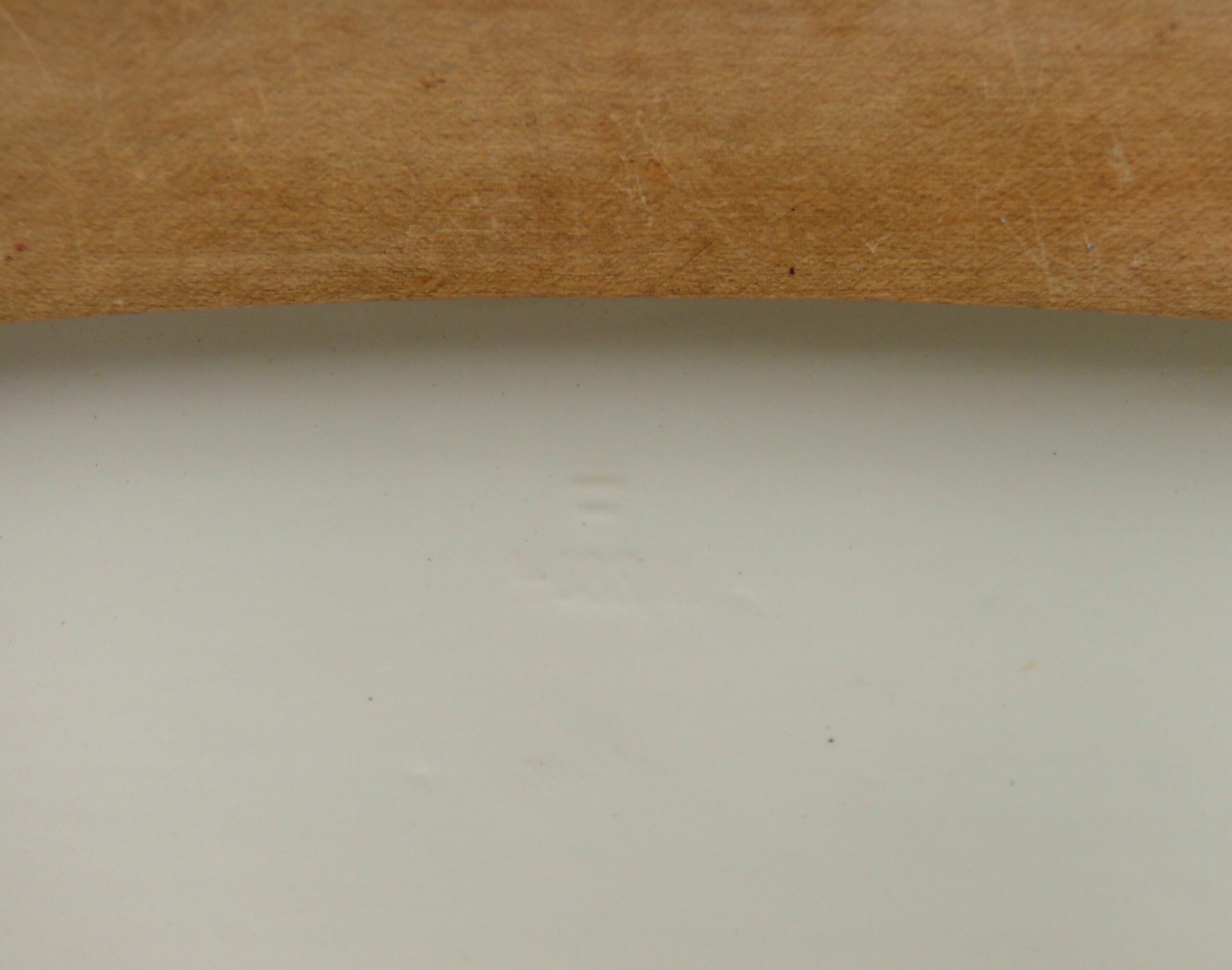 An der Deckelplatte ist an einer Ecke ein flacher Abschlag (vorne links), auf dem Foto als dunkle Stelle zu sehen- siehe Fotos. Er wird zum größten Teil durch den Holzrahmen abgedeckt.