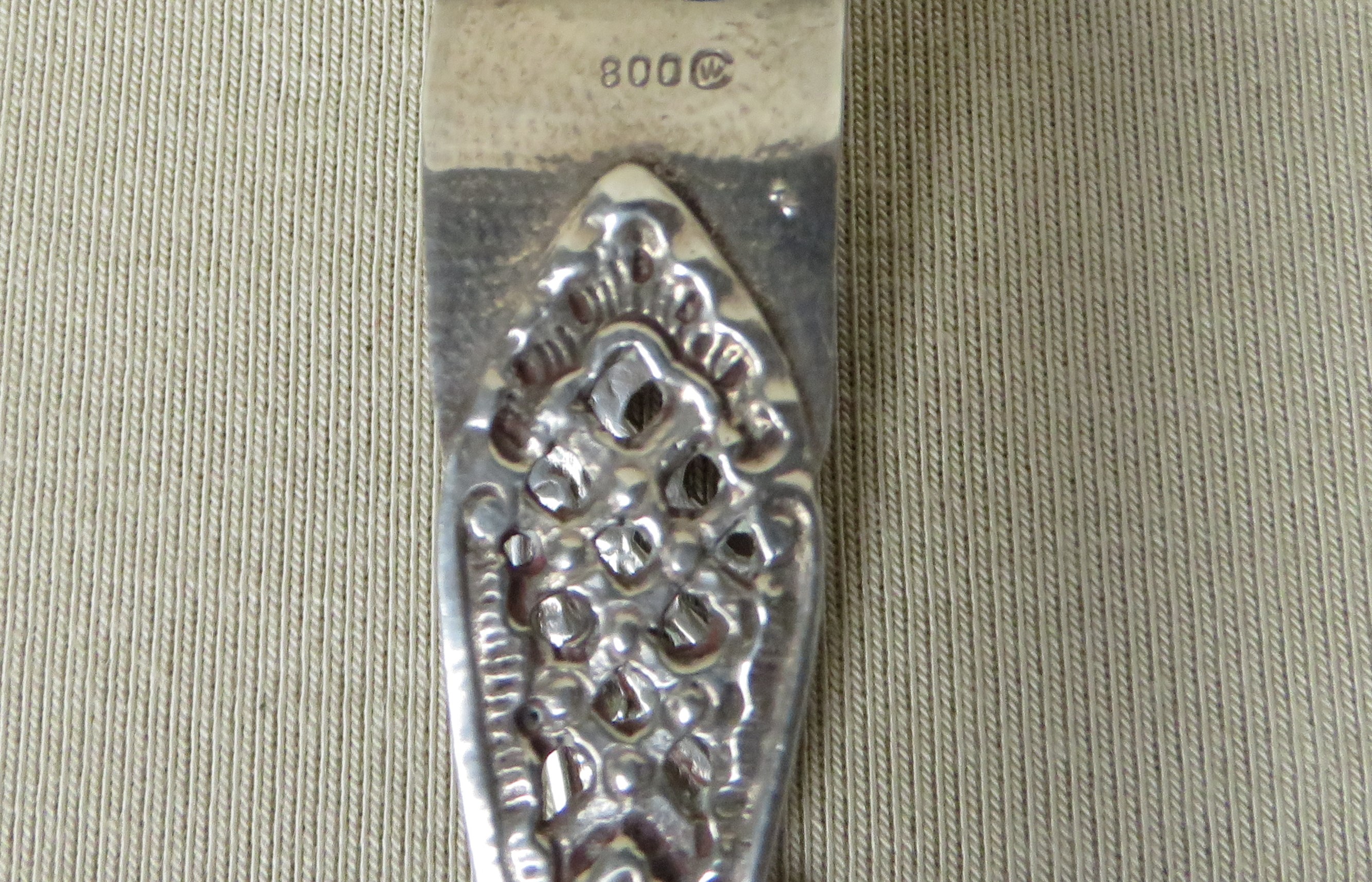 Es sind leichte Gebrauchsspuren an der Versilberung vorhanden, 1 Messerbänkchen unterseitig Kratzer (Gans).