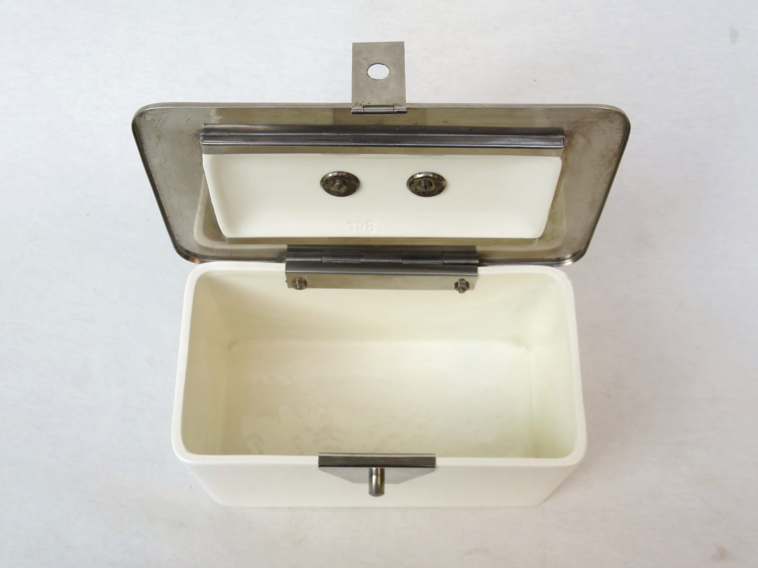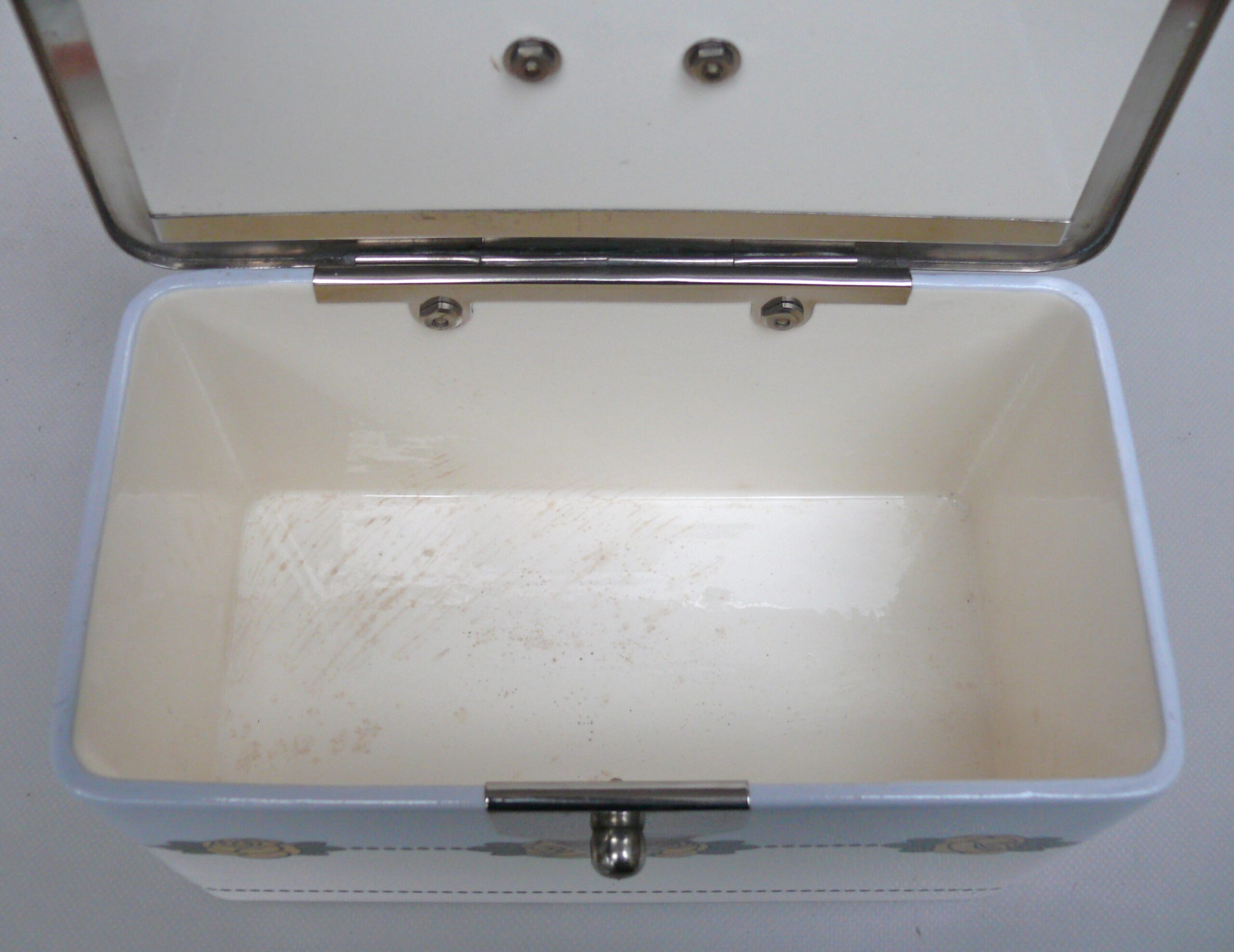Die Gebäckdose oder auch kleine Brotdose ist in einem schönen Zustand mit nur geringen Gebrauchsspuren.