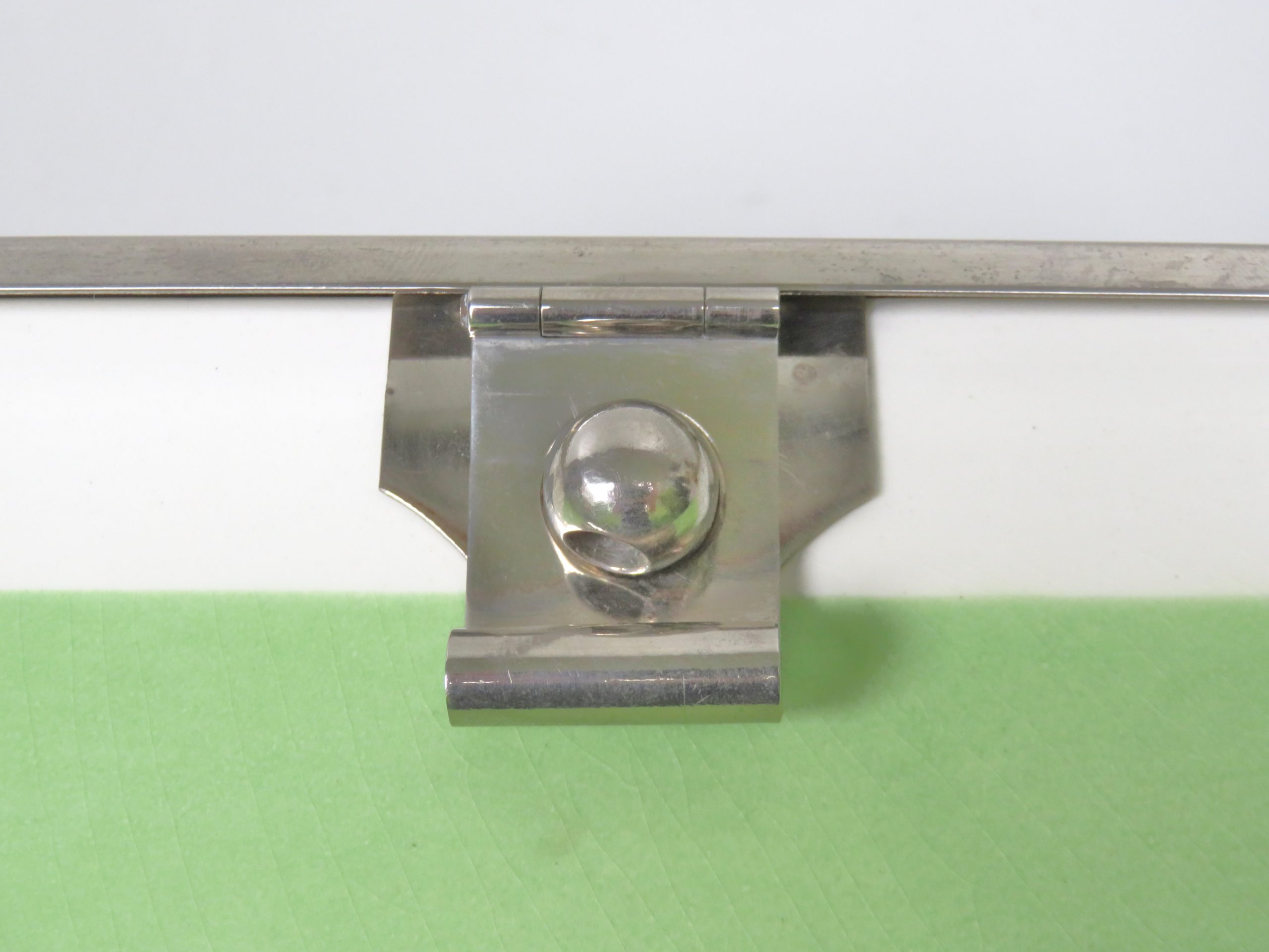 Der Chrom ist noch sehr schön erhalten, der rückseitig beige Originallack trägt Gebrauchsspuren. Das emaillierte Ziffernblatt weist keine Schäden auf.