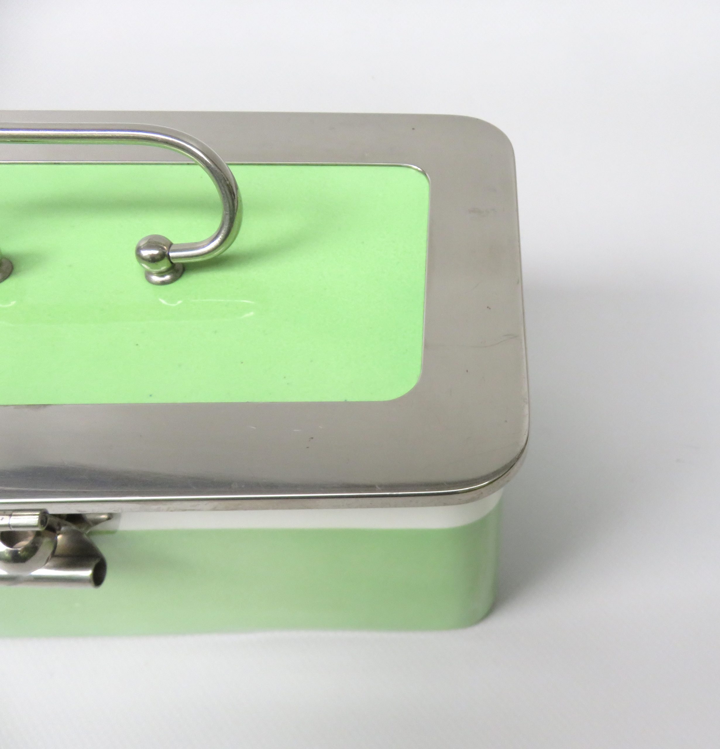 K17 – Gebäckdose, emailliert, mintgrün, innen weiß, 50er Jahre