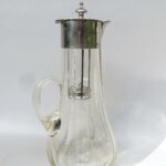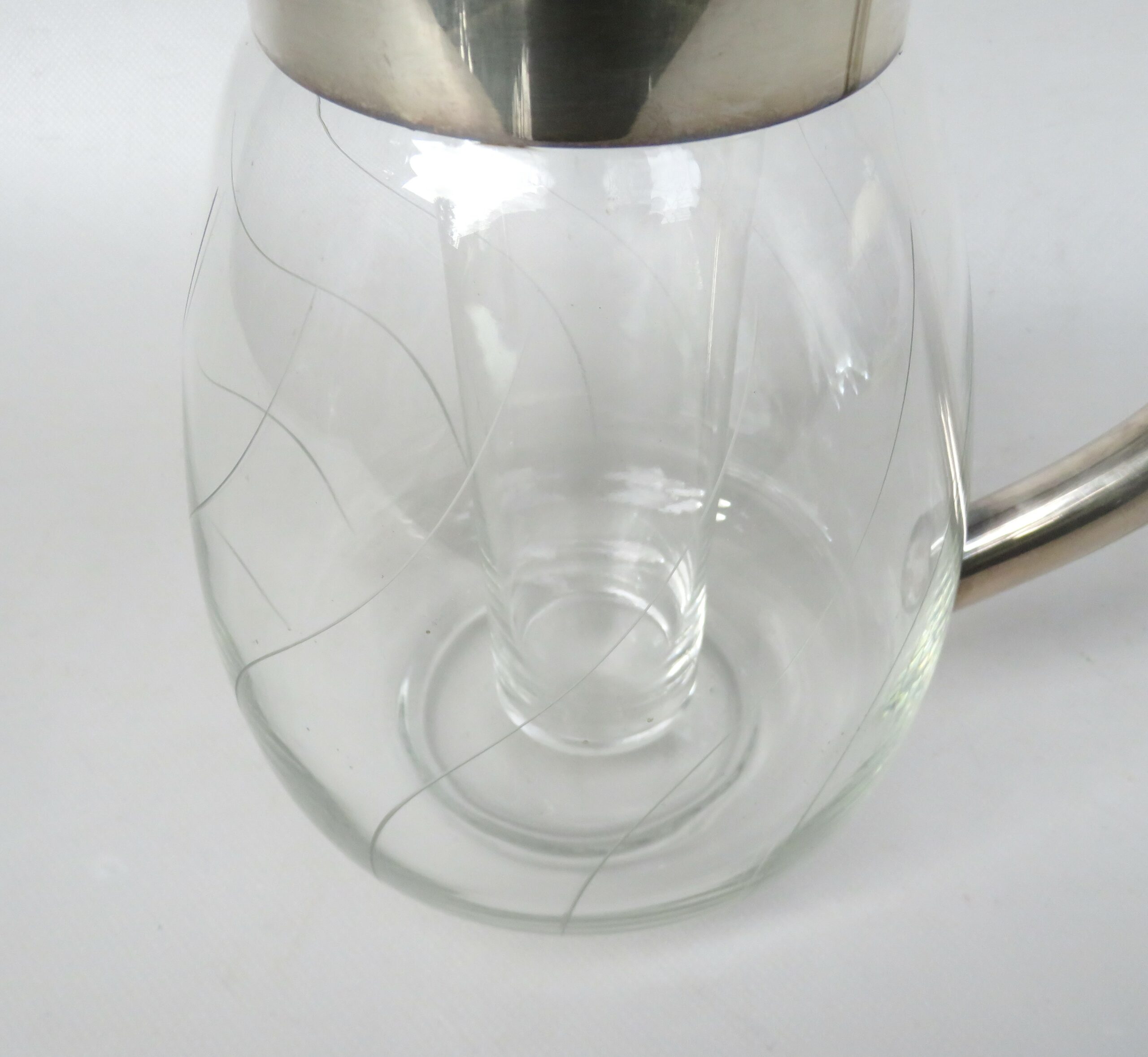 K68 – Karaffe mit Eisgefäß, 50er Jahre, WMF, versilbert, Glas mit Schliffdekor