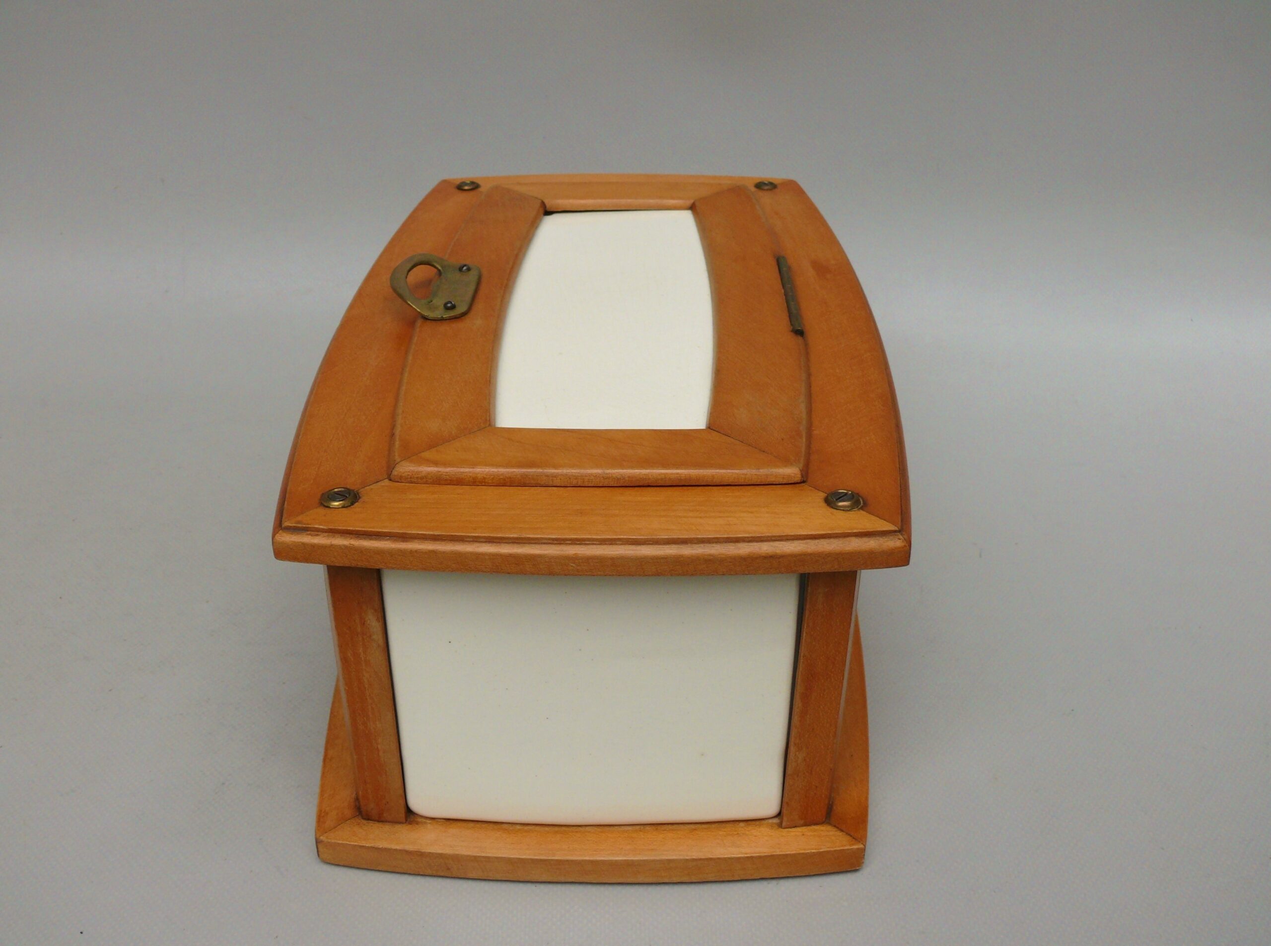 Rückseitig zeigt die Dose eine kleine Fehlstelle an der Oberfläche – Lasurfehler, ggf. produktionsbedingt.