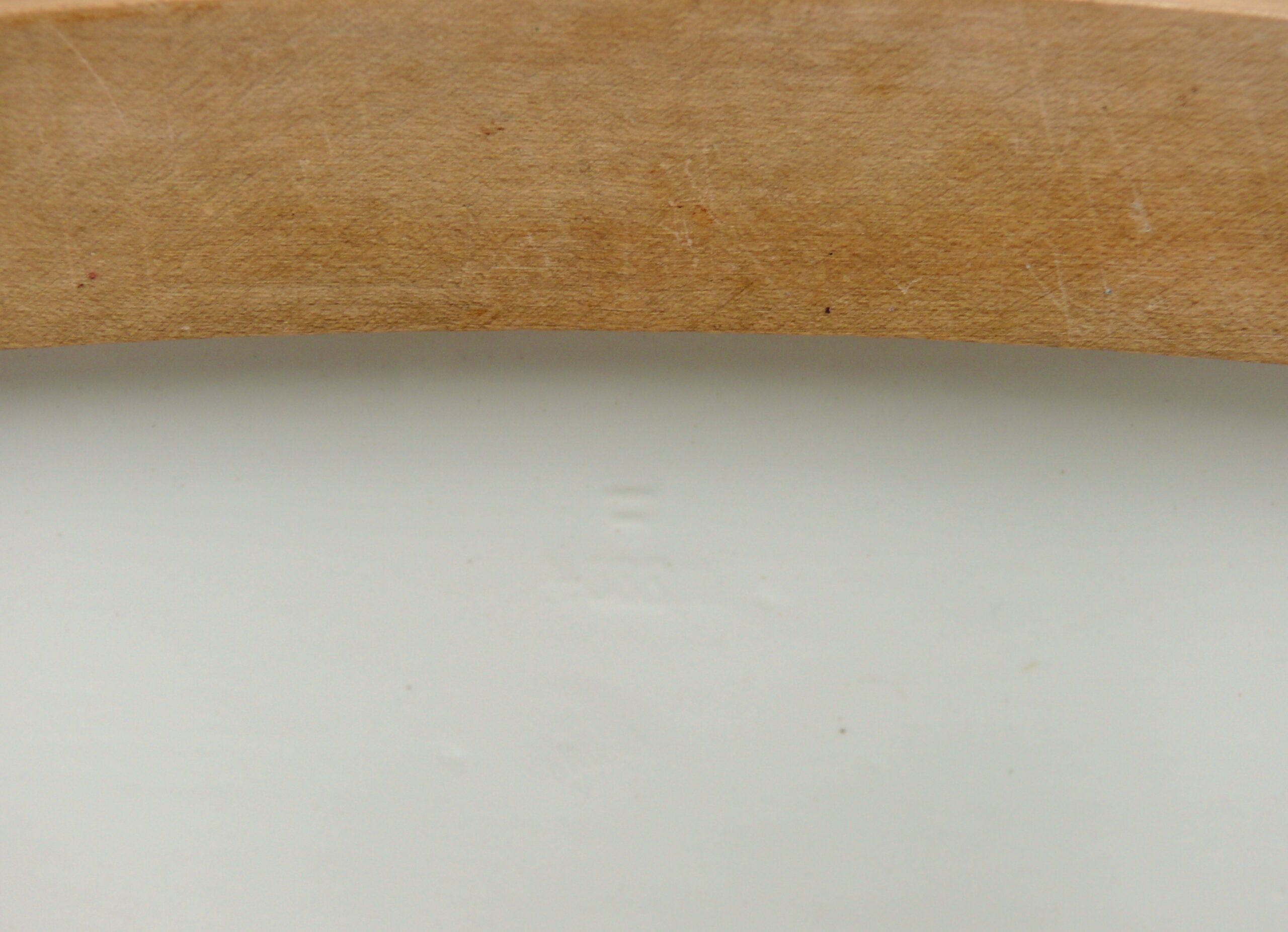 Lediglich auf der linken Seite unten ist die Lasur an einer kleinen Stelle berieben.