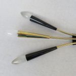 Die Wandhalterungen sind aus Metall schwarz lackiert, die Arme und Tüten Messing poliert.