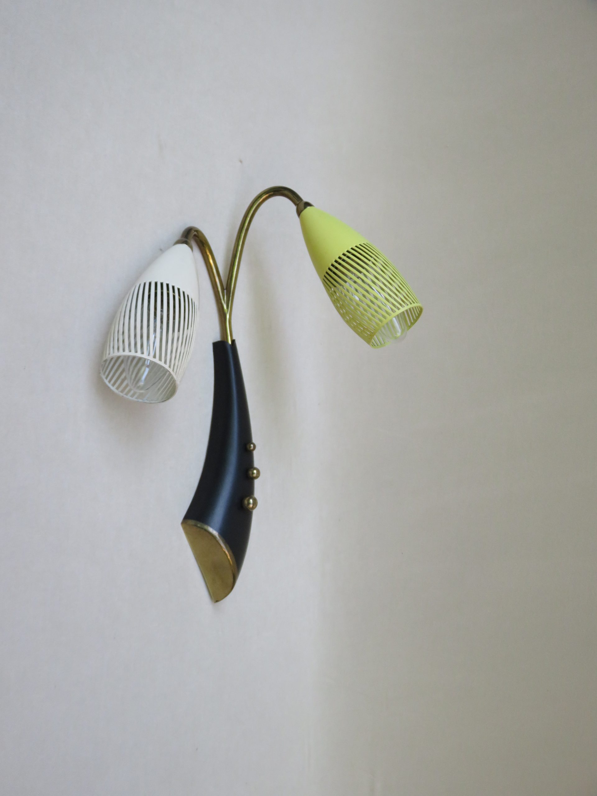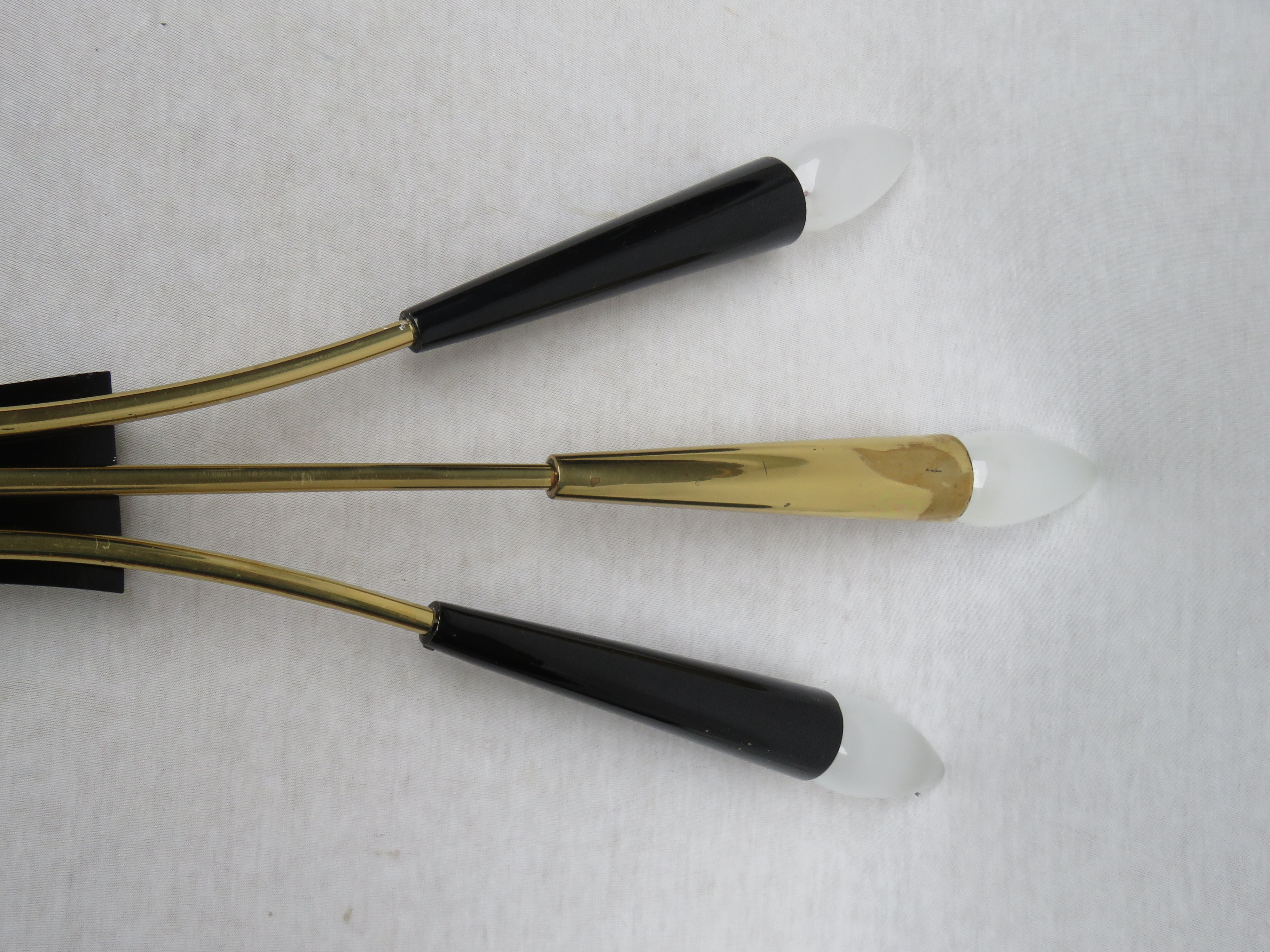 W30 – Wandleuchten 50er Jahre – 4 Stück vorhanden, Messing, schwarz lackiert
