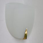Ein Paar elegante Wandleuchten aus den 50erJahren in der Kombination Messing und weißes Plexiglas.