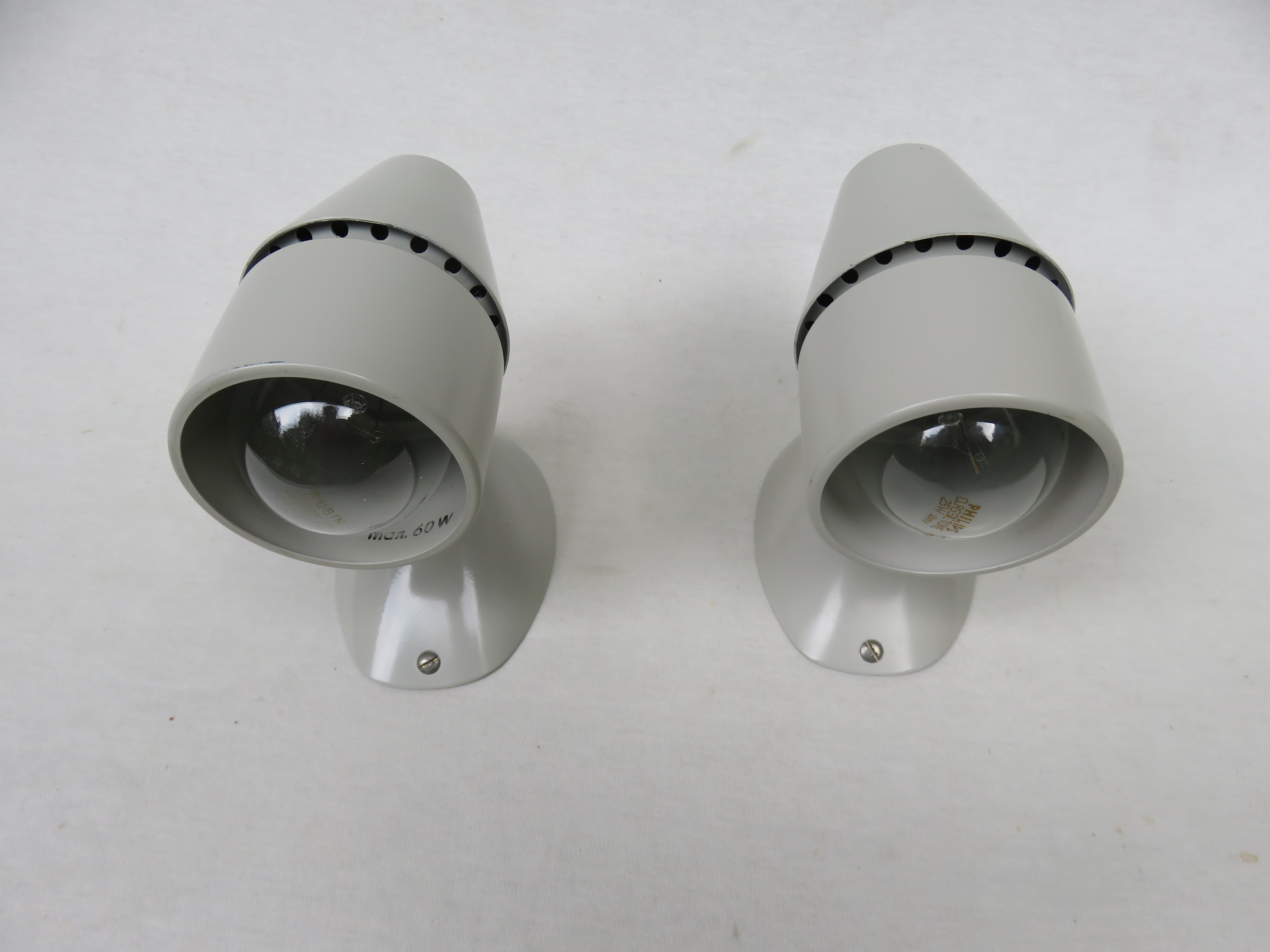 W9 – 1 Paar kleine Wandleuchten, 60er Jahre, Metall, schwarz lackiert, Aluminum-Reflektor