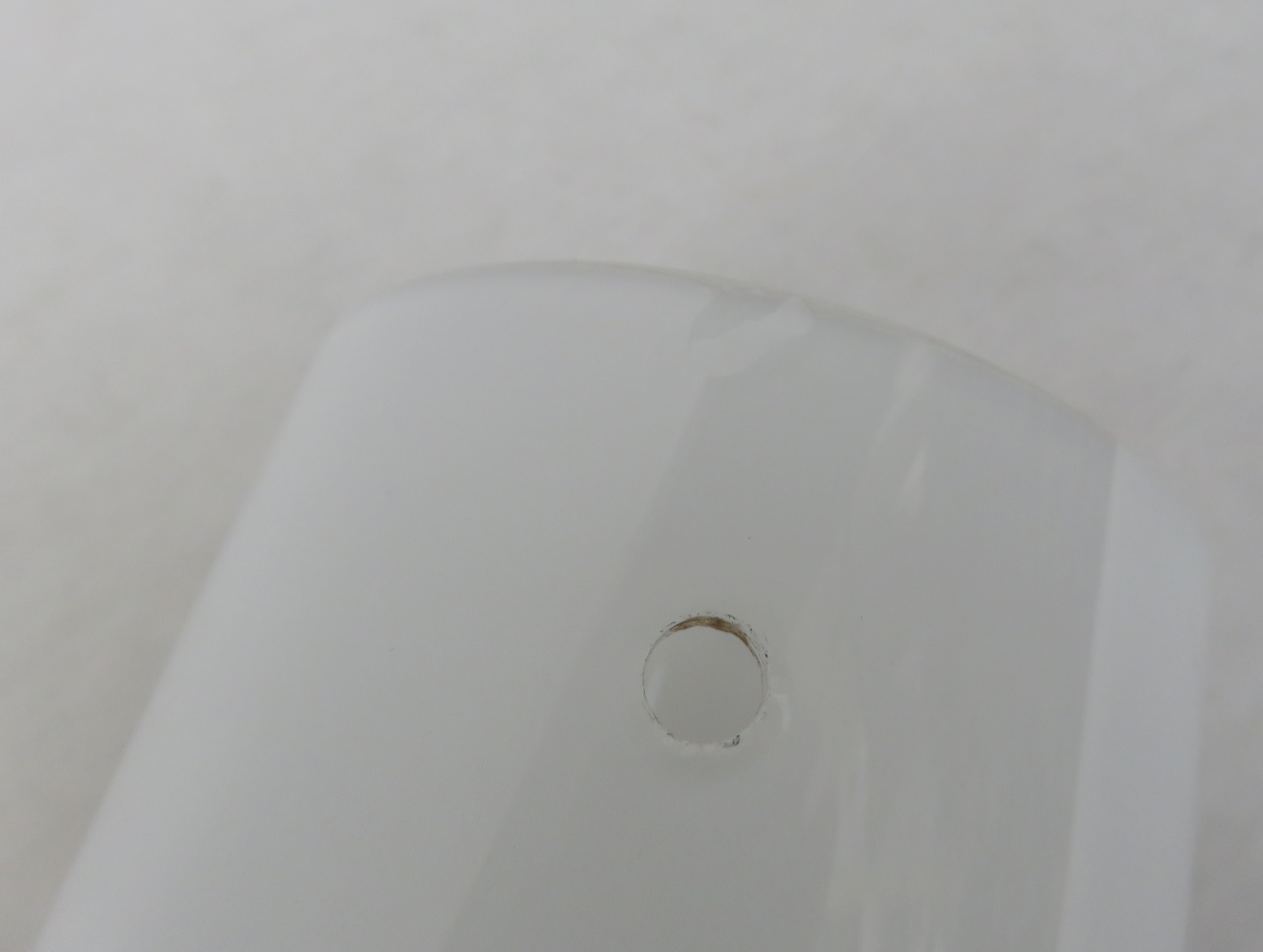 Ein Glas hat rückseitig an einer Kante eine rauhe Stelle.