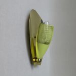 Der original Aufsteck-Lampenschirm ist aus gelbem Plissee. Von unten wird er mittels eines Kunststoffrings stabilisert, der in eine Nut eingesetzt wird.