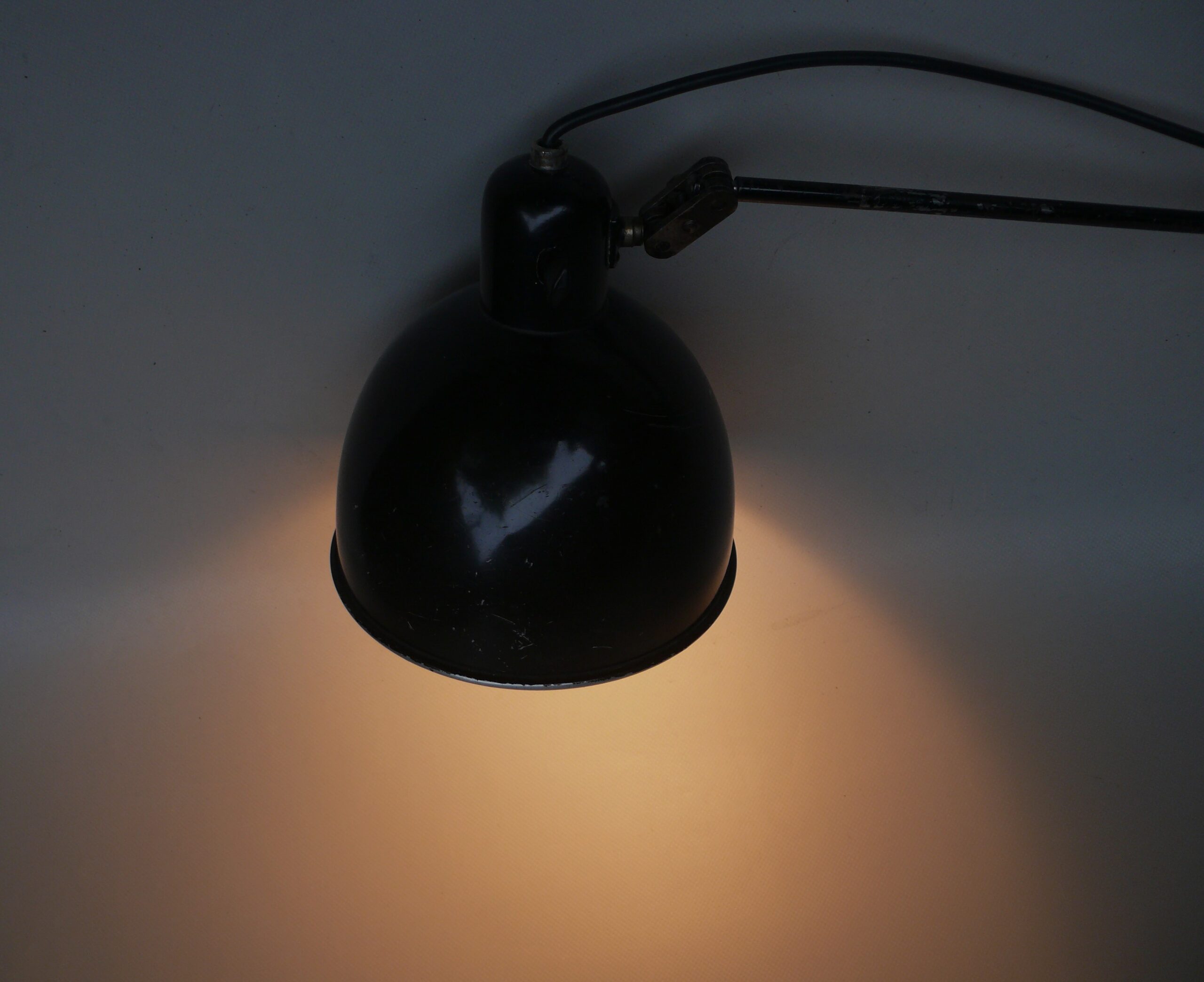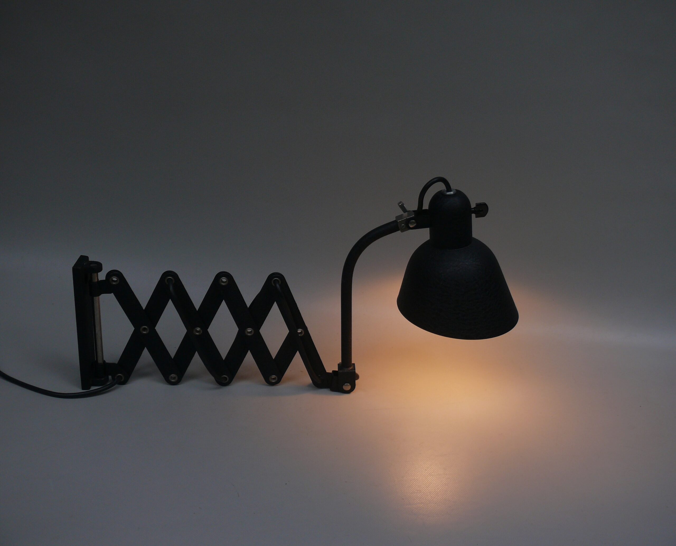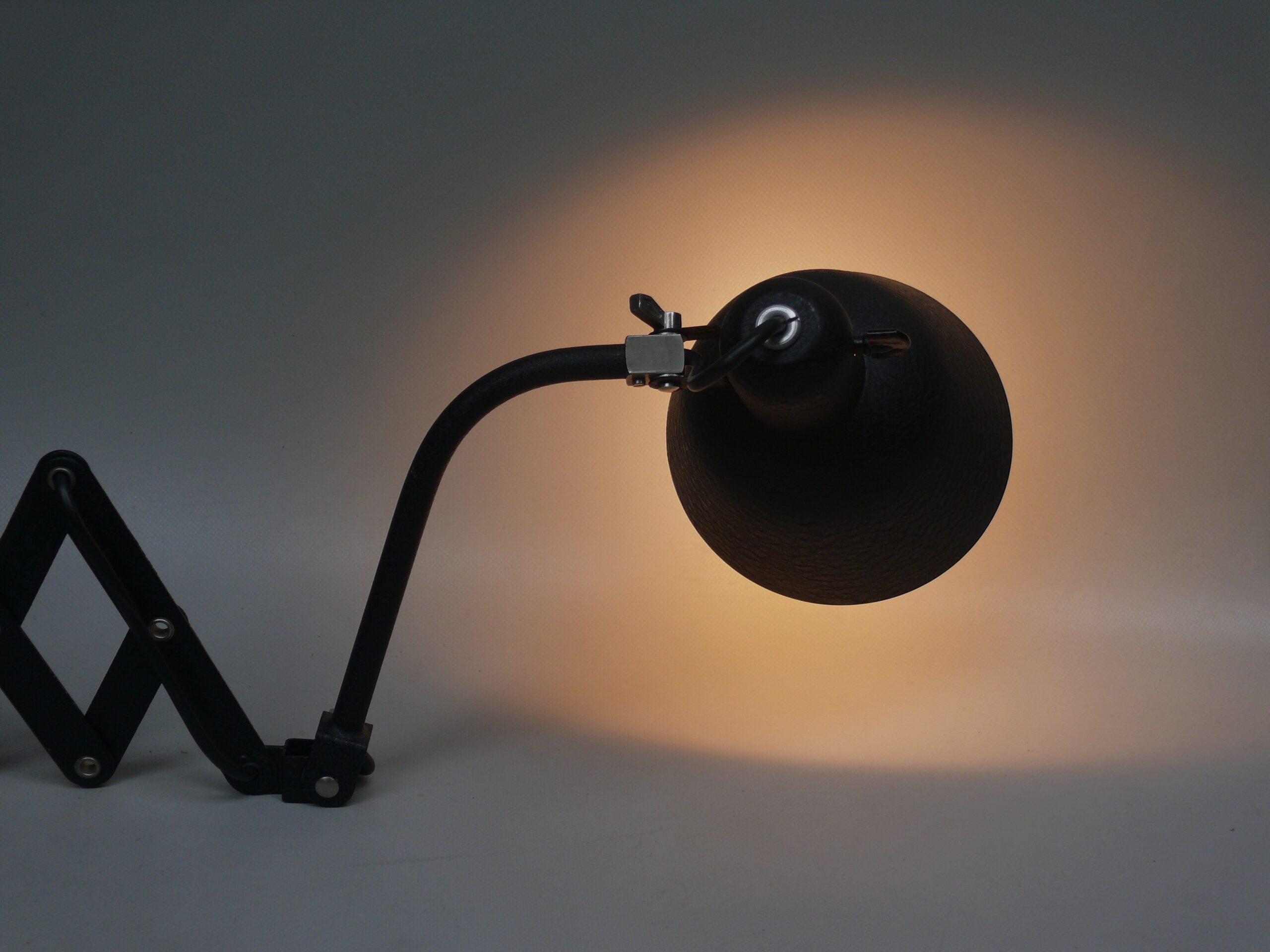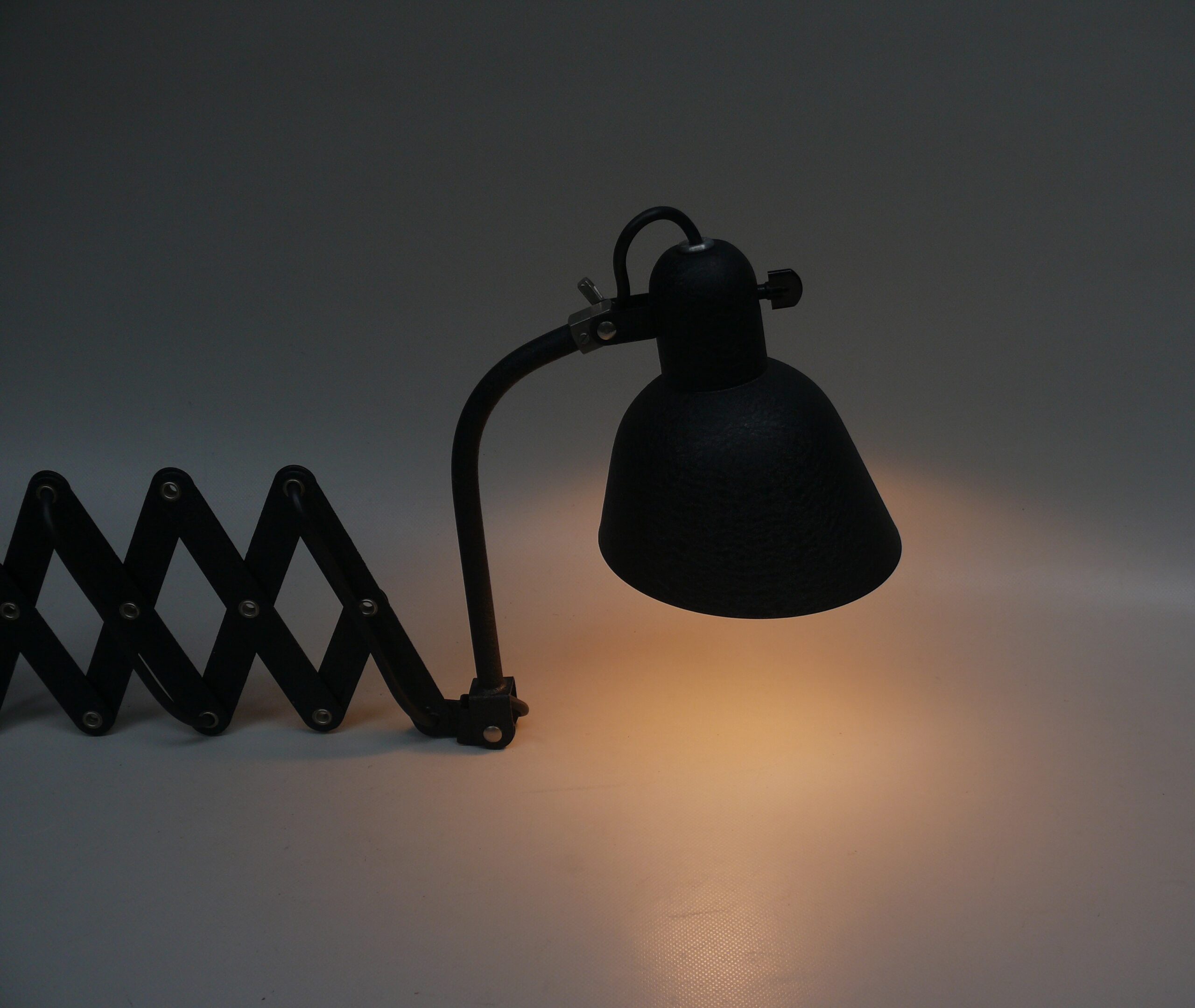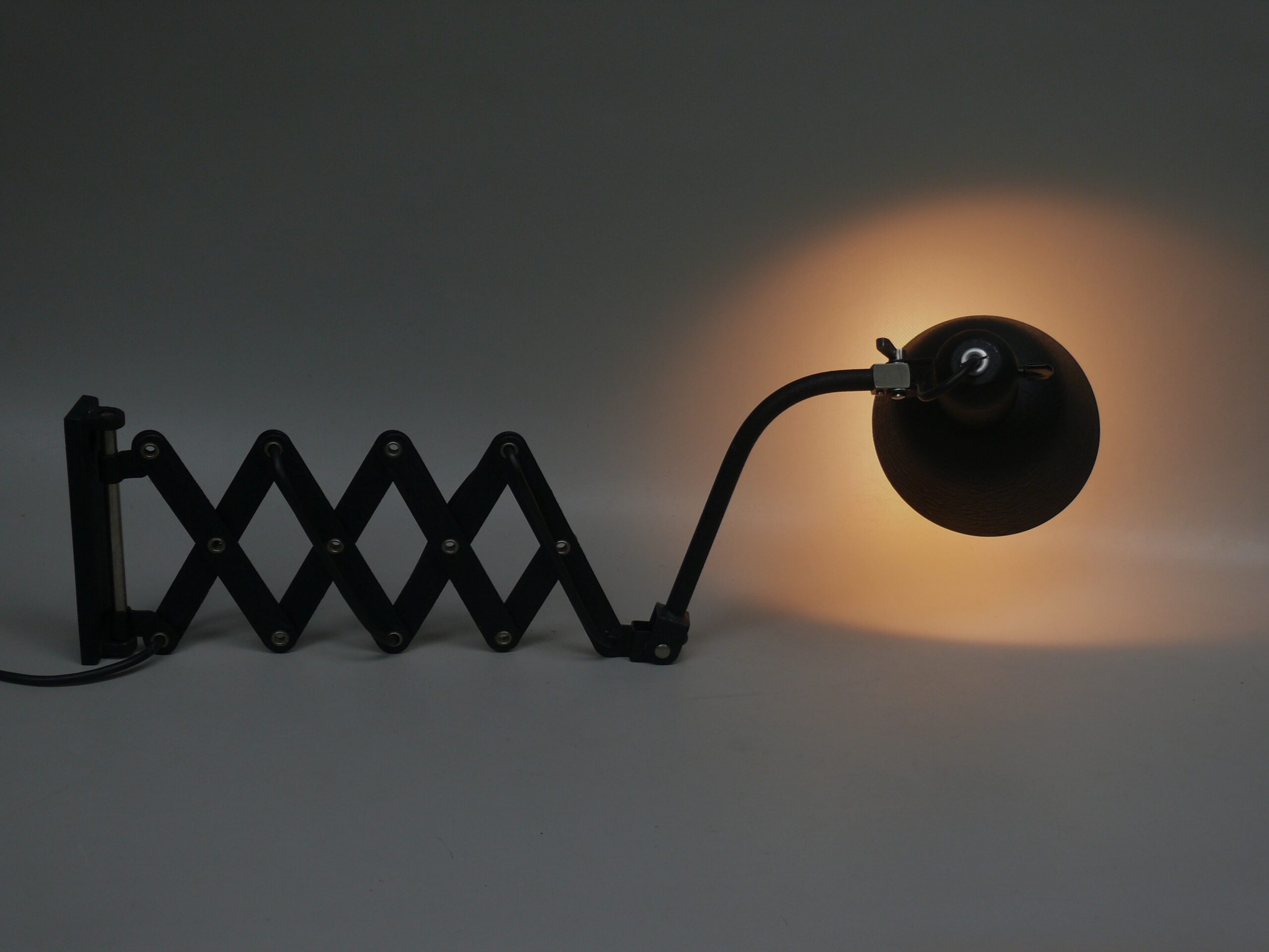 Eine große Scherenleuchte, Arbeitsleuchte aus den 30er Jahren in schwarzem Originallack, hergestellt in Deutschland.