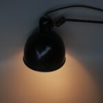 Die Leuchte zeigt eine authentische Patina an der schwarzen Orignallackierung sowie Spuren der Zeit an der weißen Innenlackierung des Lampenschirms.