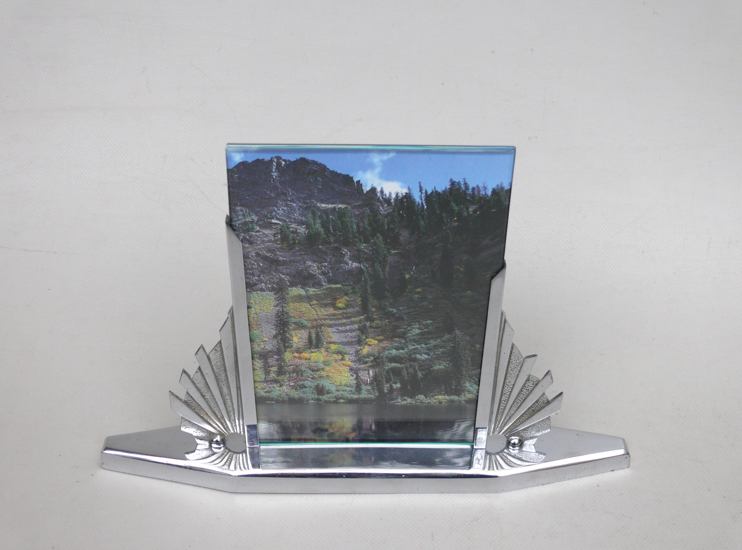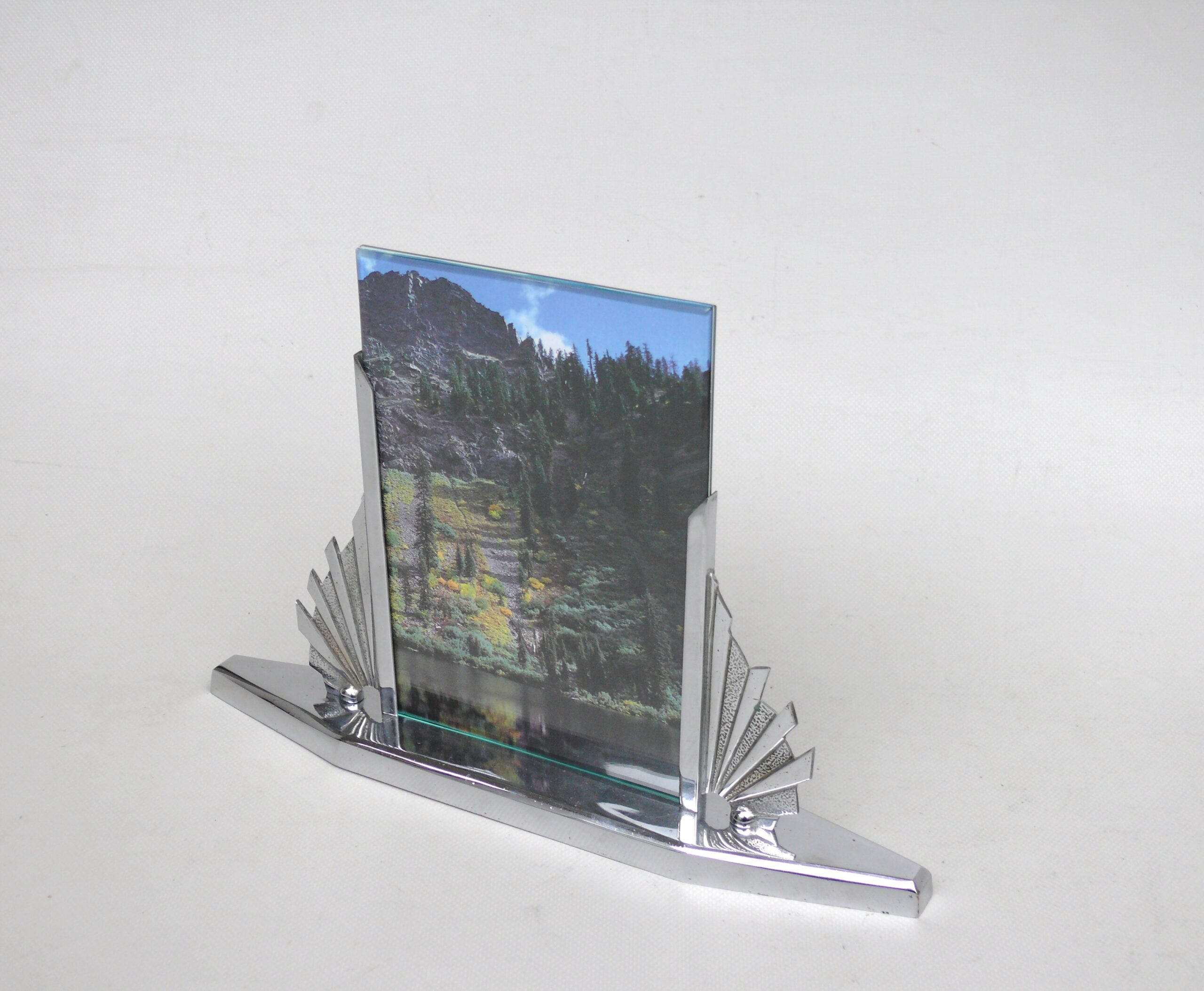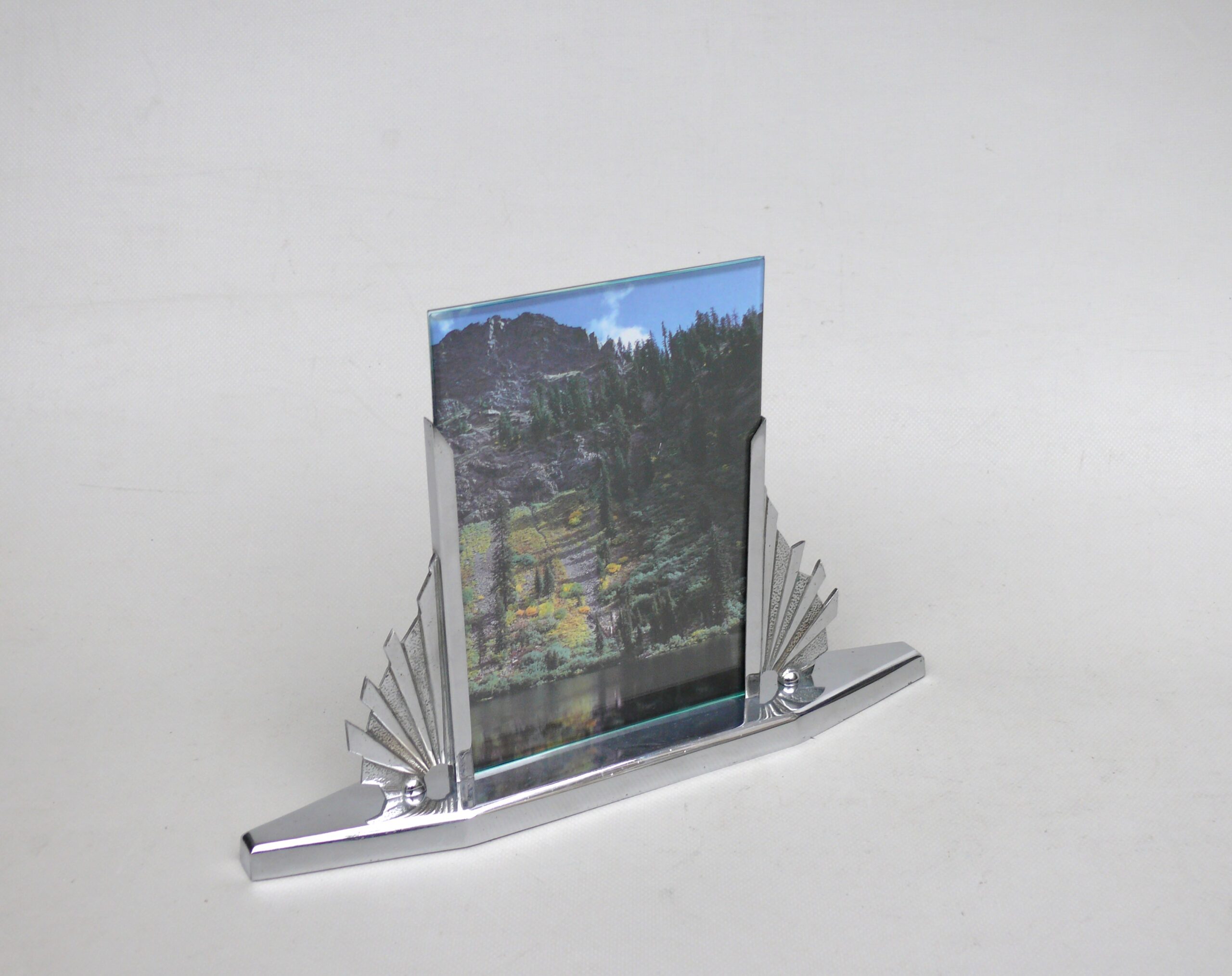 BR7 – Bilderrahmen Art Deco, verchromt, Holzsockel